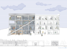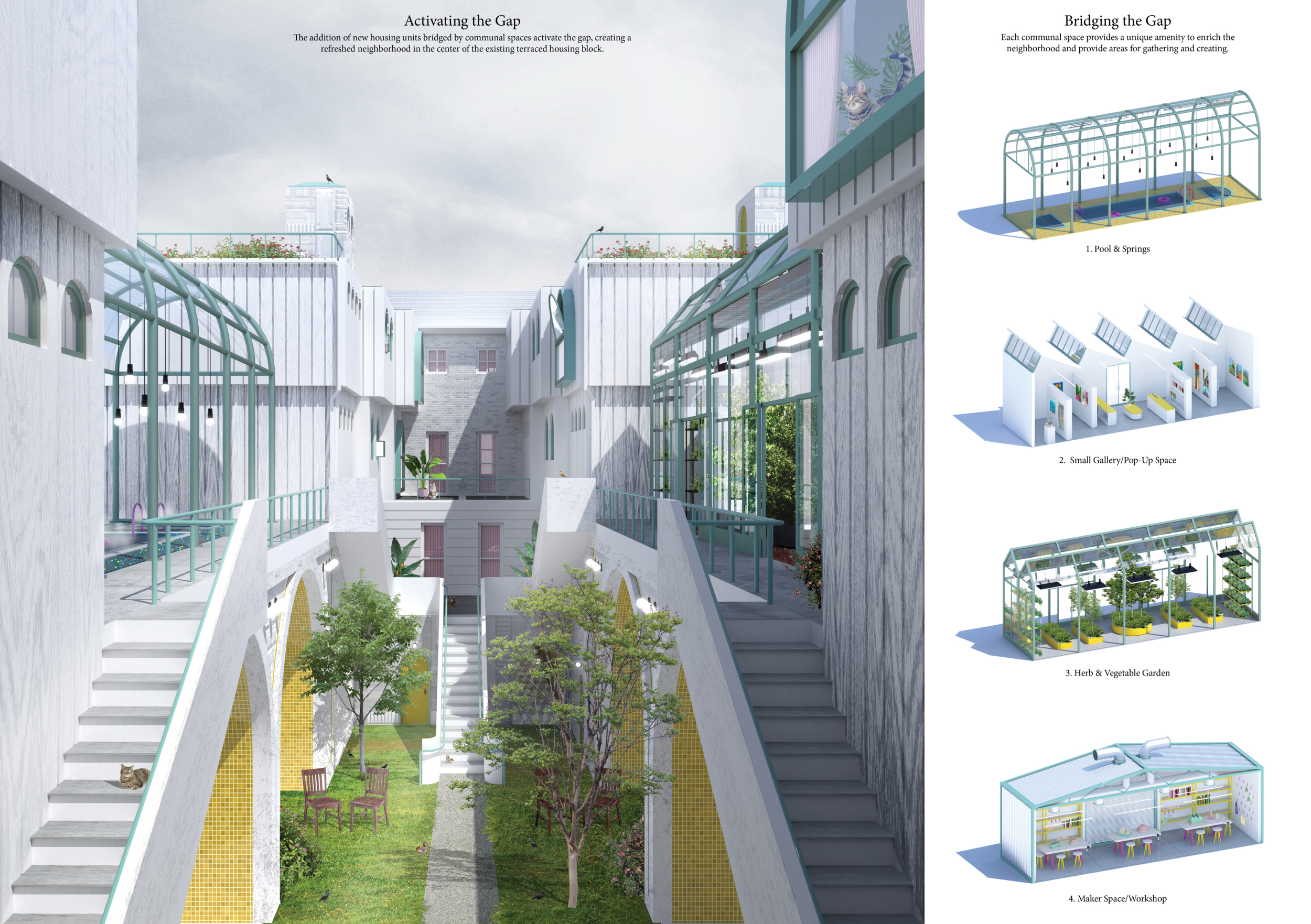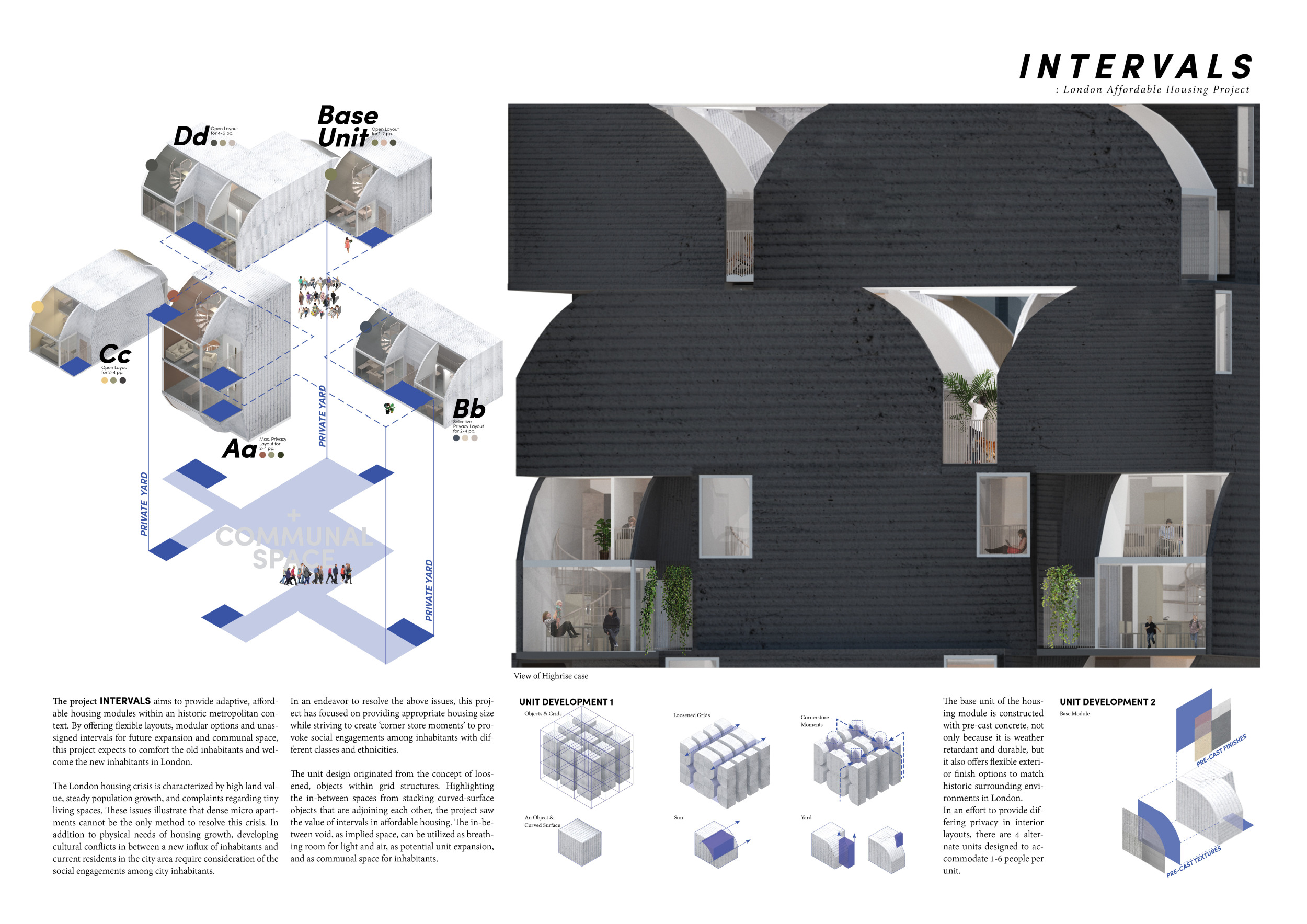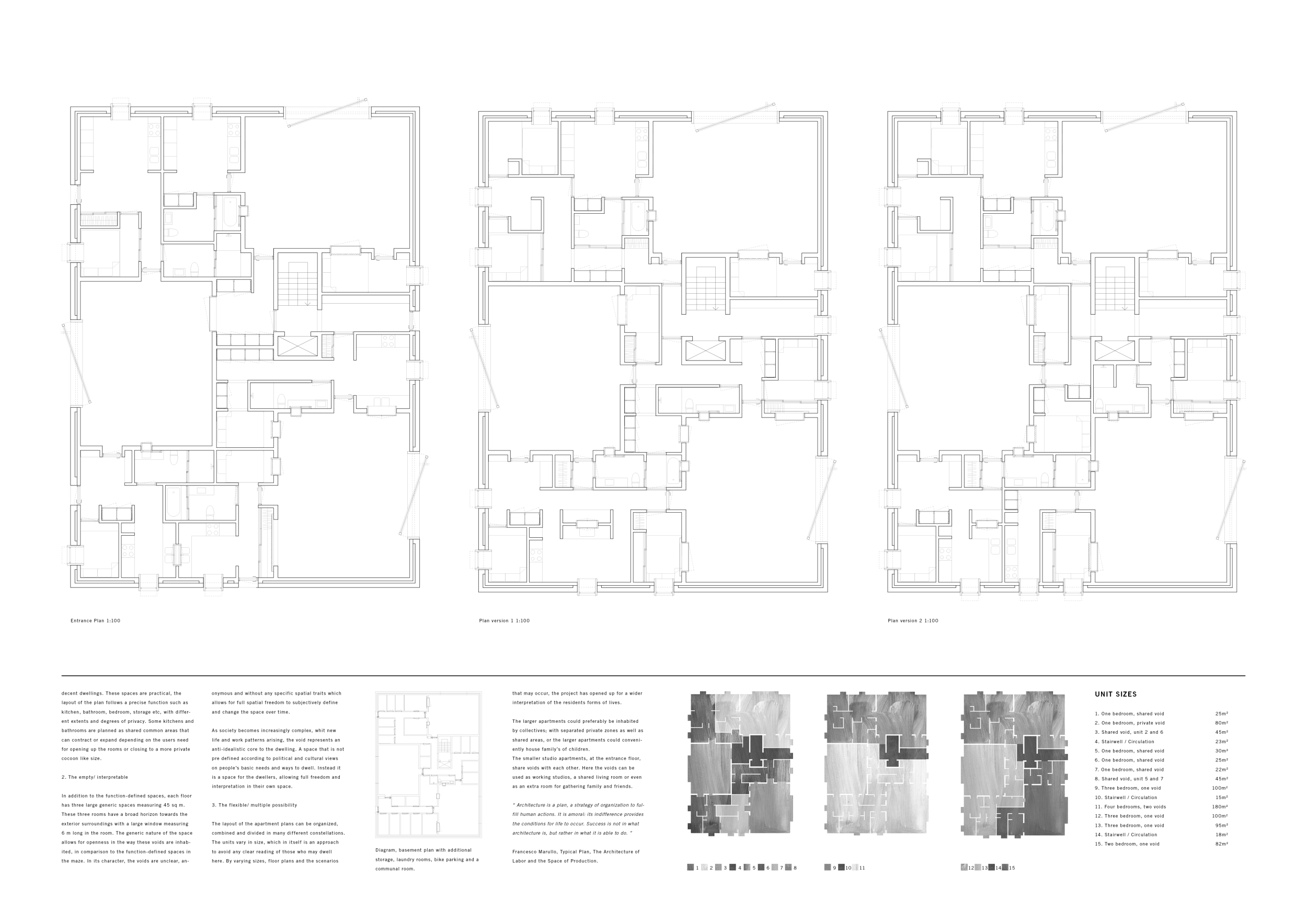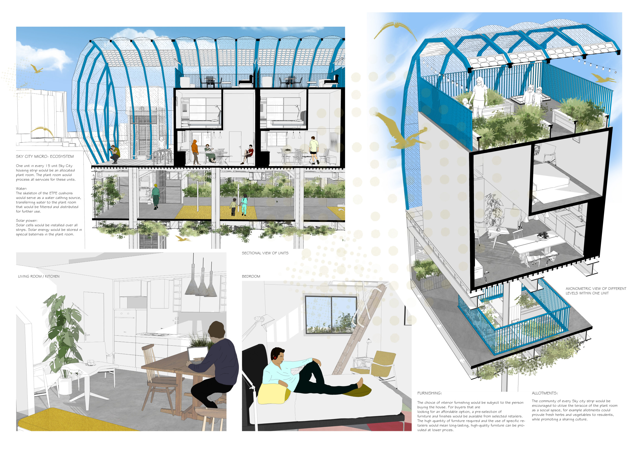 This project, titled Informal Intimacy, seeks to establish a new architecture for social housing using modernist principles. In its simplicity and austerity it offers flexibility, with a wide range of spatial combinations that relate to people’s wide-ranging identities. The submission states: “The project dismisses the idea of social housing being an architecture based on standardized minimums, a one size fits all, instead the architectus is established as a field of opportunities.