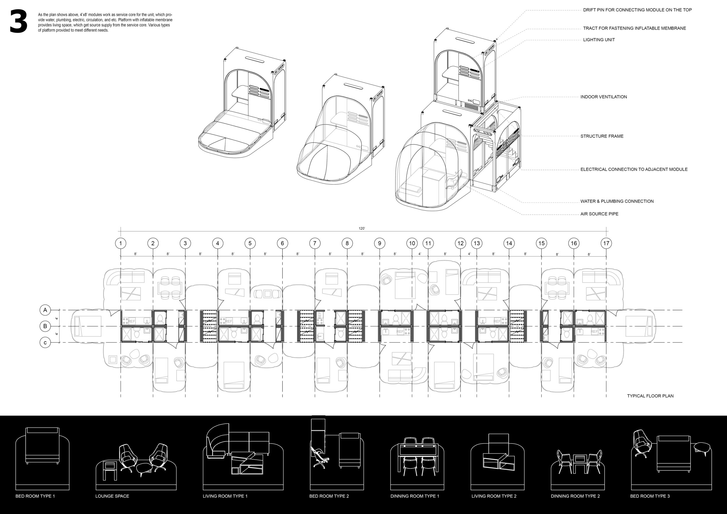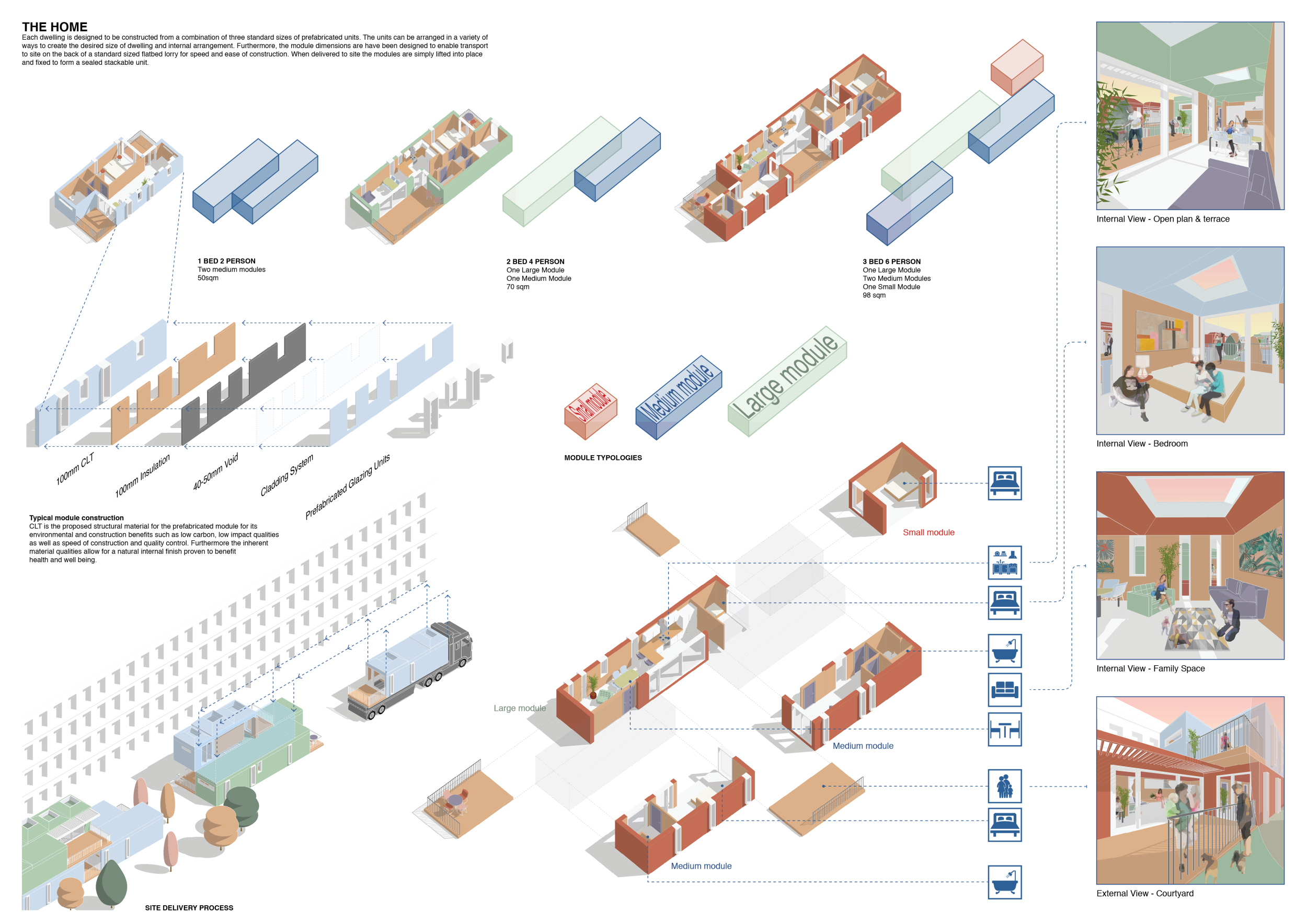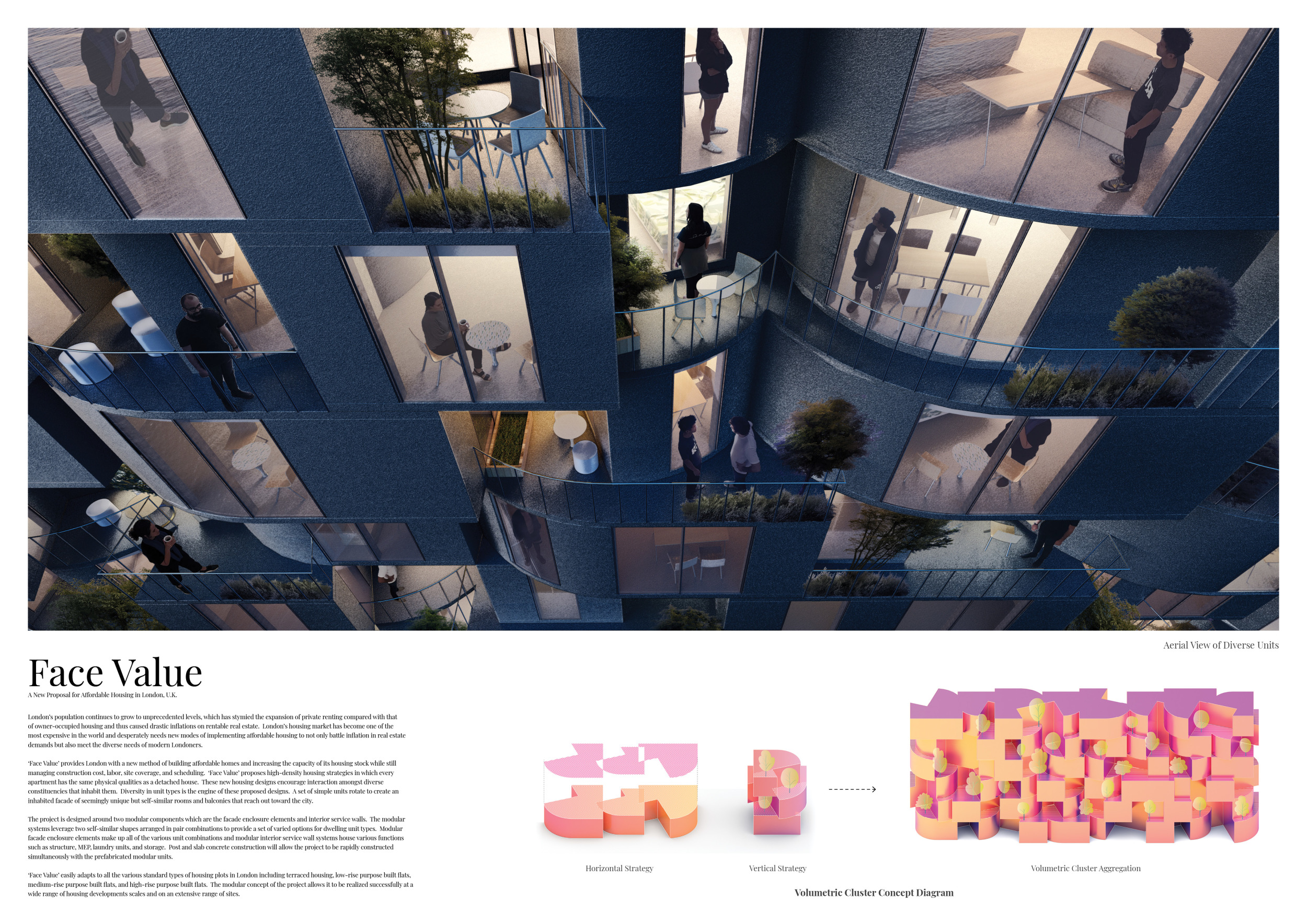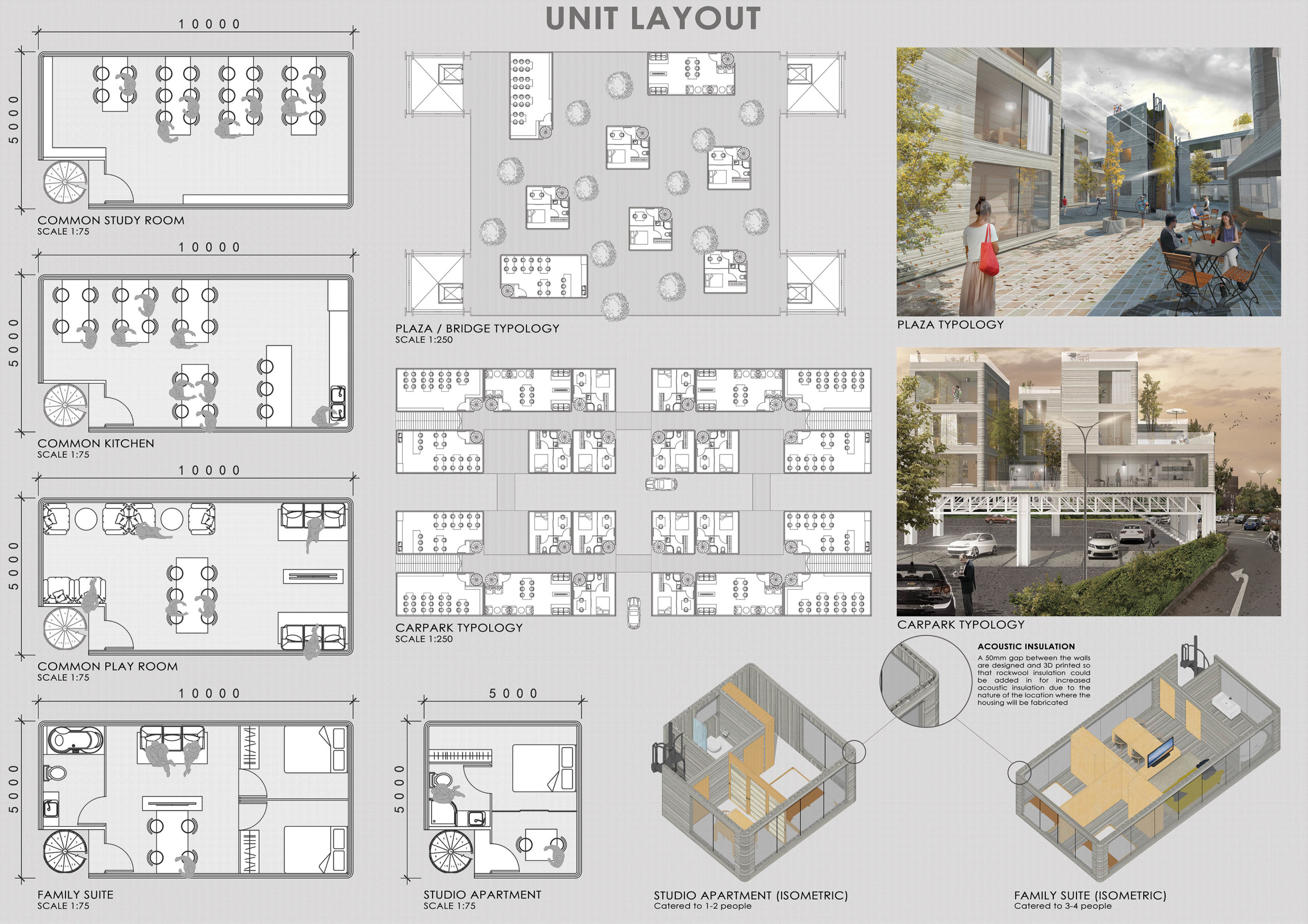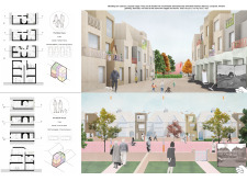This project, titled Informal Intimacy, seeks to establish a new architecture for social housing using modernist principles. In its simplicity and austerity it offers flexibility, with a wide range of spatial combinations that relate to people’s wide-ranging identities. The submission states: “The project dismisses the idea of social housing being an architecture based on standardized minimums, a one size fits all, instead the architectus is established as a field of opportunities.