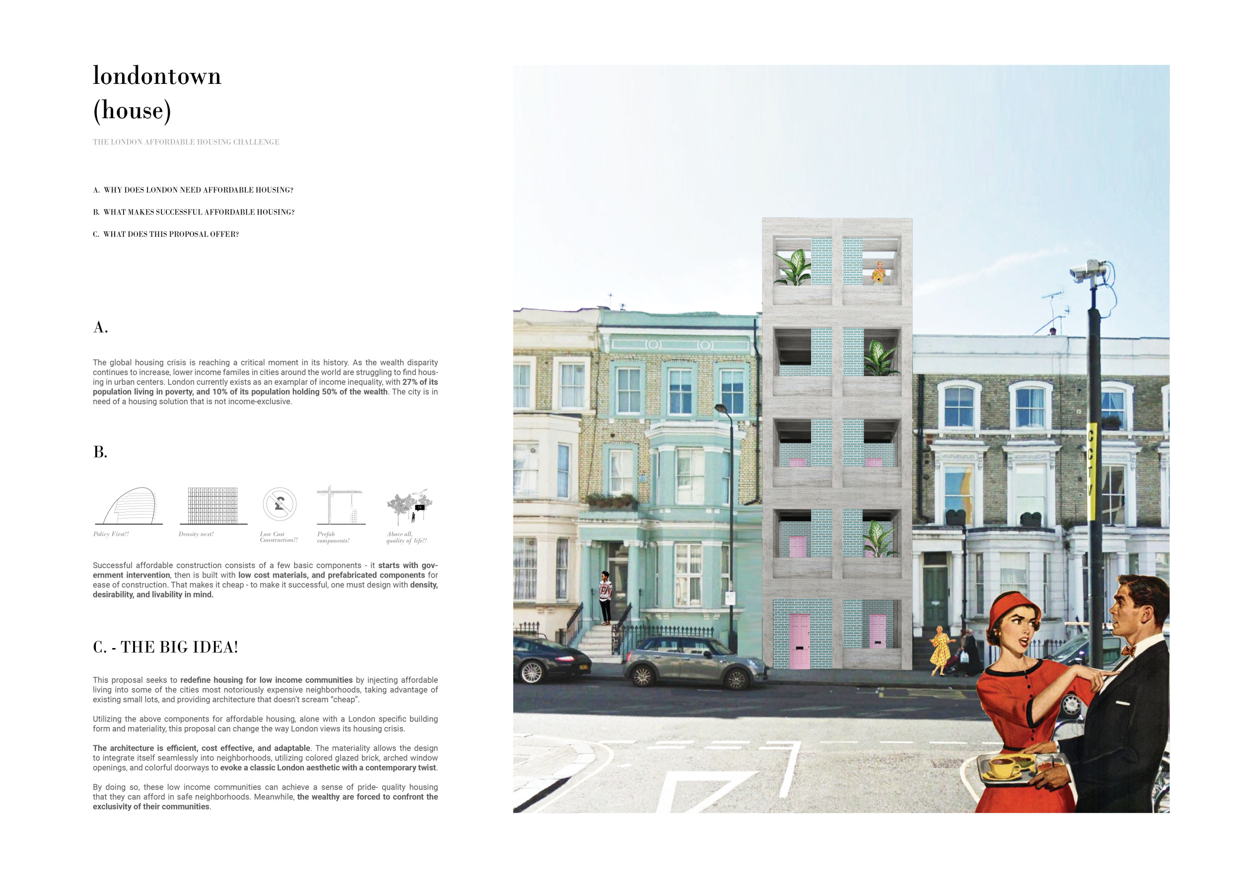 Low- and median- income individuals and families cannot meet the financial demands of the city’s skyrocketing housing prices. This makes living close to one’s place of work in London a privilege: the UK’s Office of National Statistics estimates the average commute time at one hour. Families in the low- and middle-income bracket, young professionals, creatives, and key workers in industries critical for London to function - like teachers or police - tend to live far outside London’s city center.