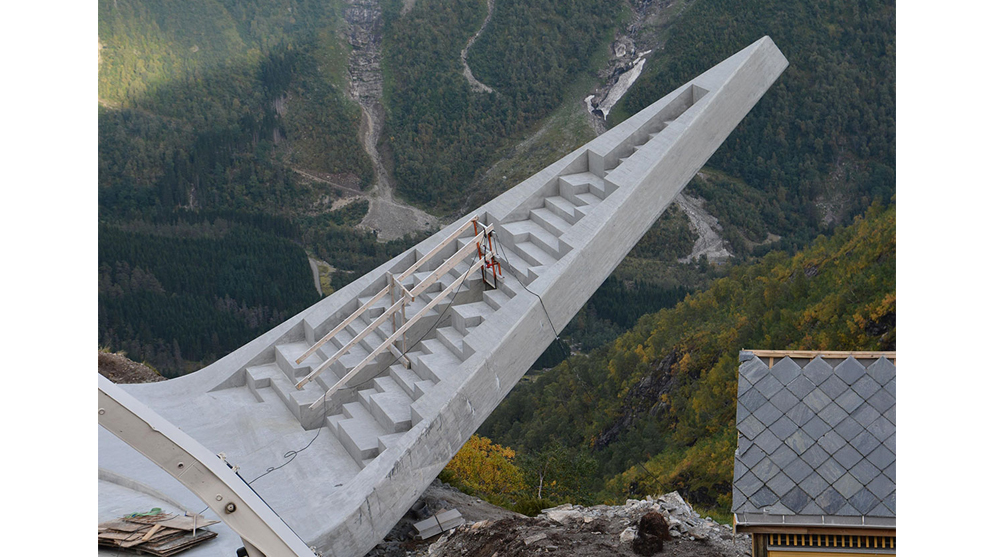 The geometry of the Utsikten lookout point may grow out of the mountainside, but has been arranged quite precisely. Because of the natural vegetation, the lookout will increasingly fit into the surrounding landscape over time.