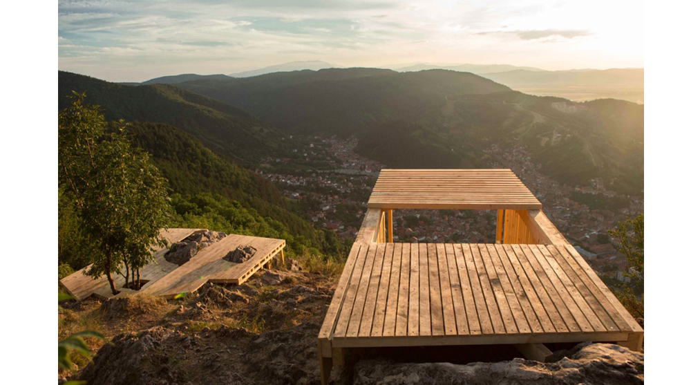 Camposaz is a woodwork construction workshop based in italy who designed and built the Tampa observatory in Romania. The wooden landing is situated on an outcrop overlooking the city of Brasov, and was chosen for its potential to provide stability, beauty, and spiritual rejuvenation in an otherwise physically taxing landscape.