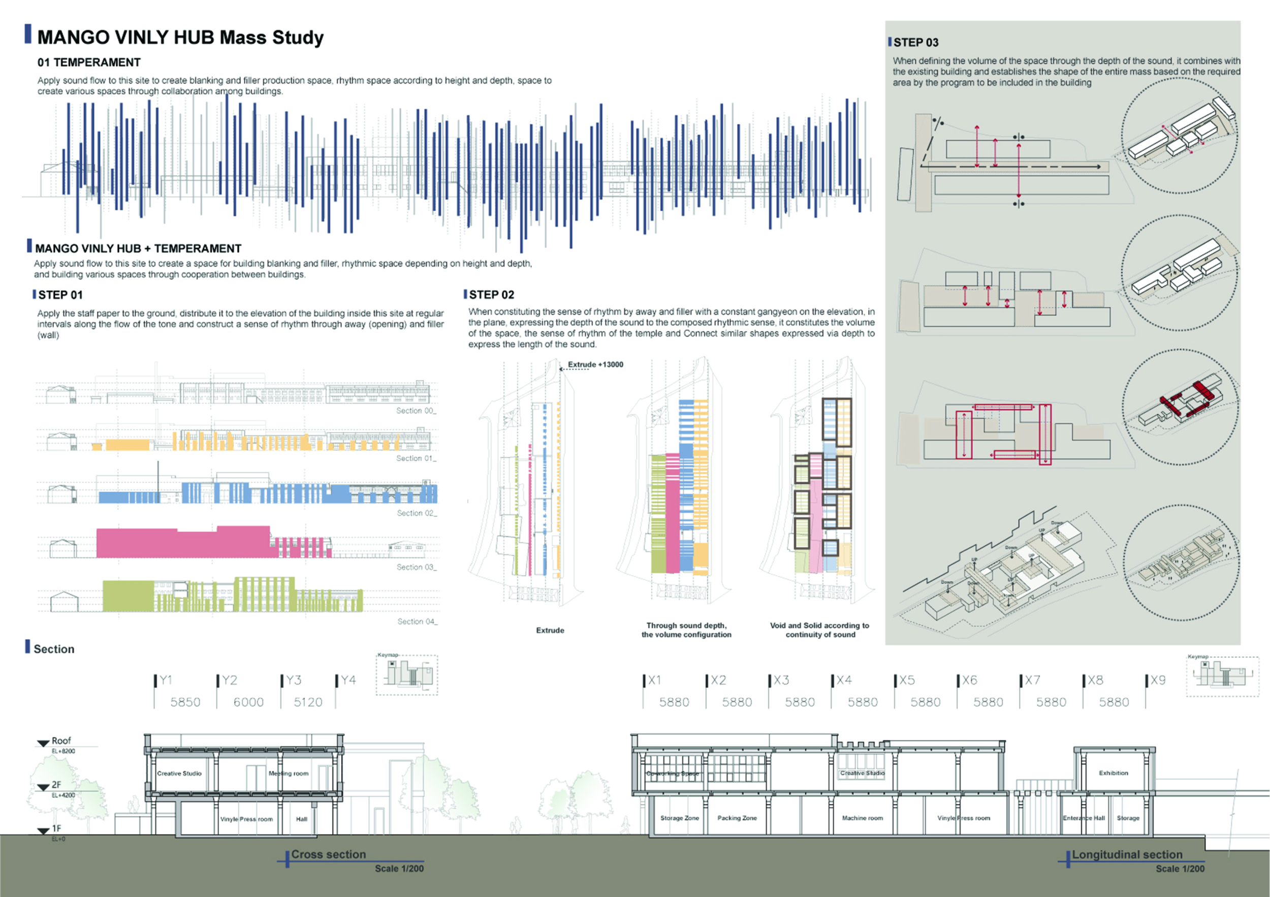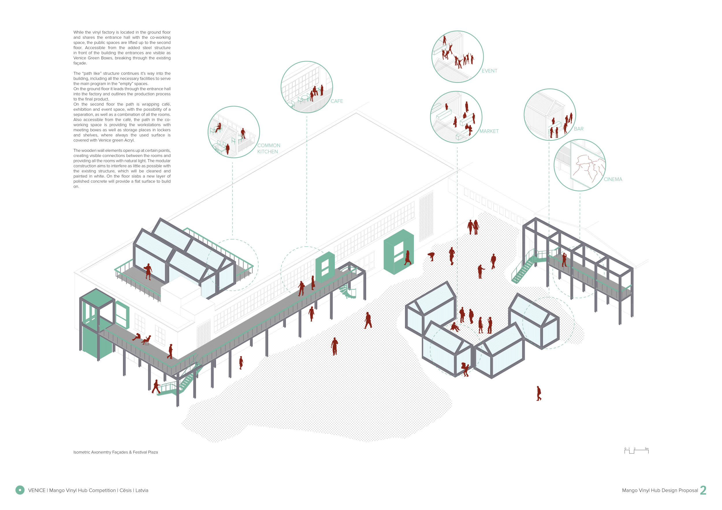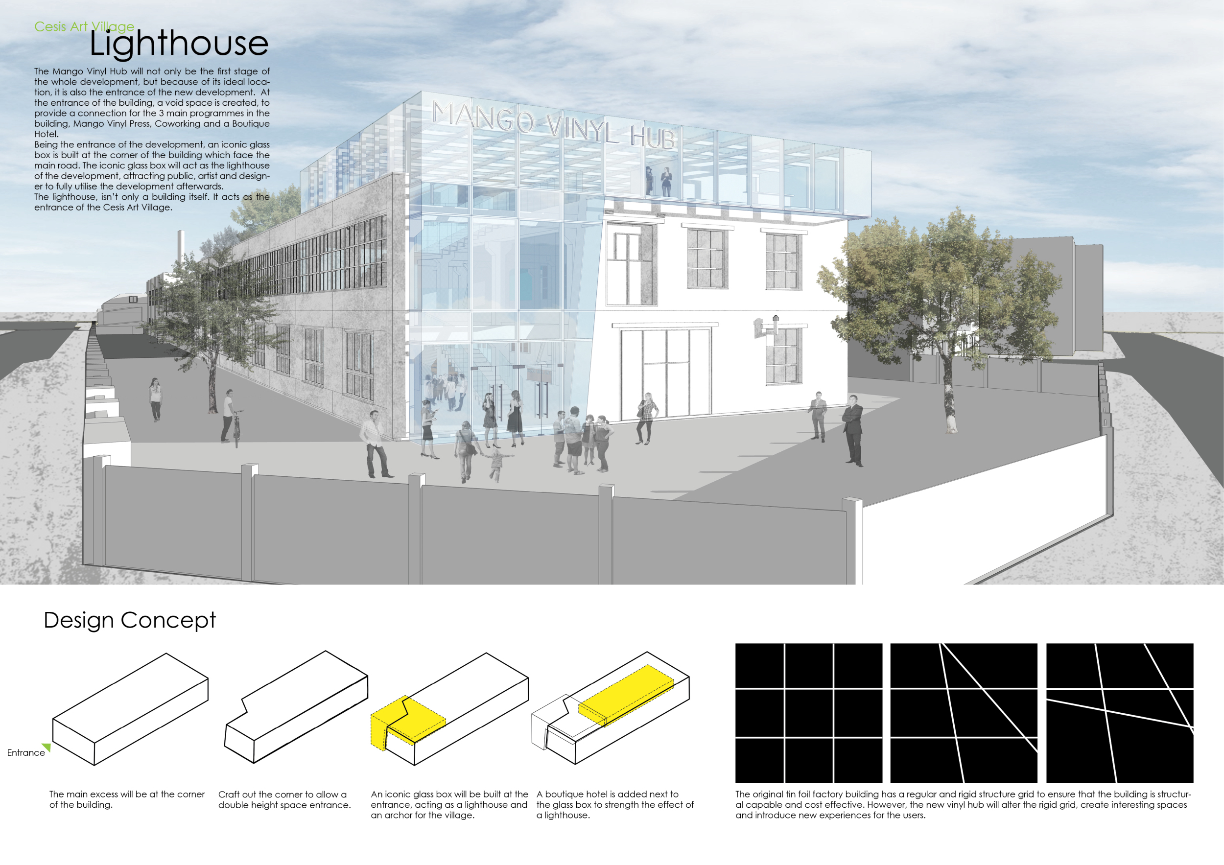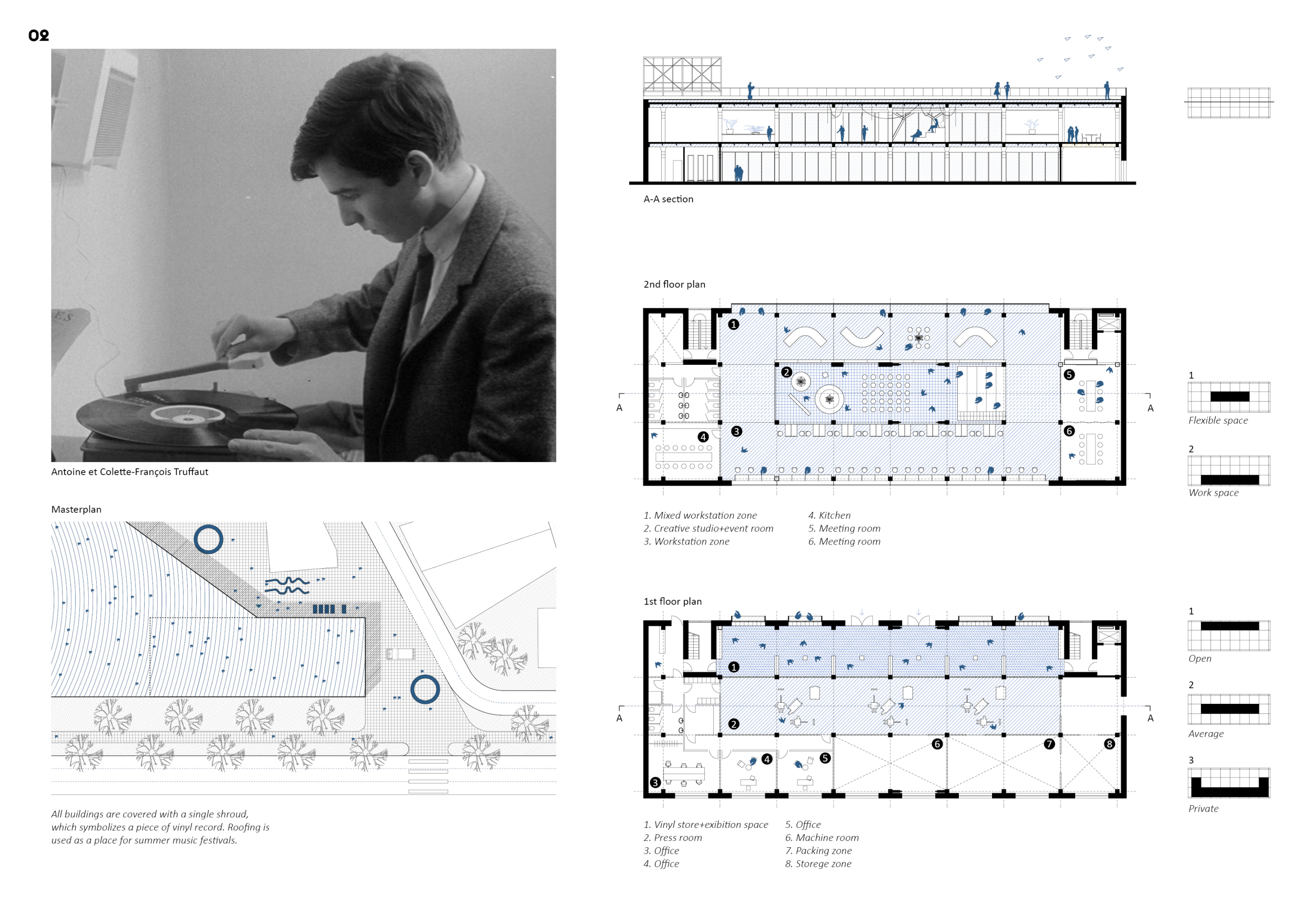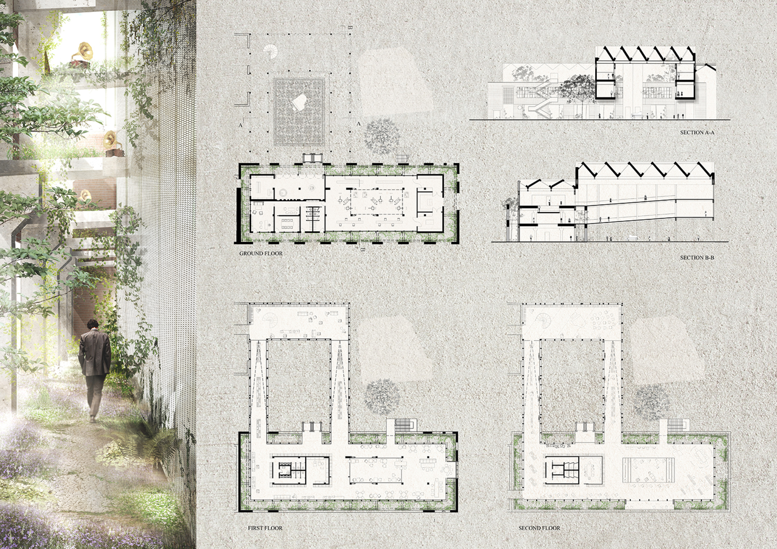 The success of the second place proposal for the Mango Vinyl Hub lies in its delineation and layering of new borders and boundaries within the structure of the existing tin foil factory to radically expose the extant industrial fabric while reviving its spaces and textures for the creative production of the emerging vinyl industry.