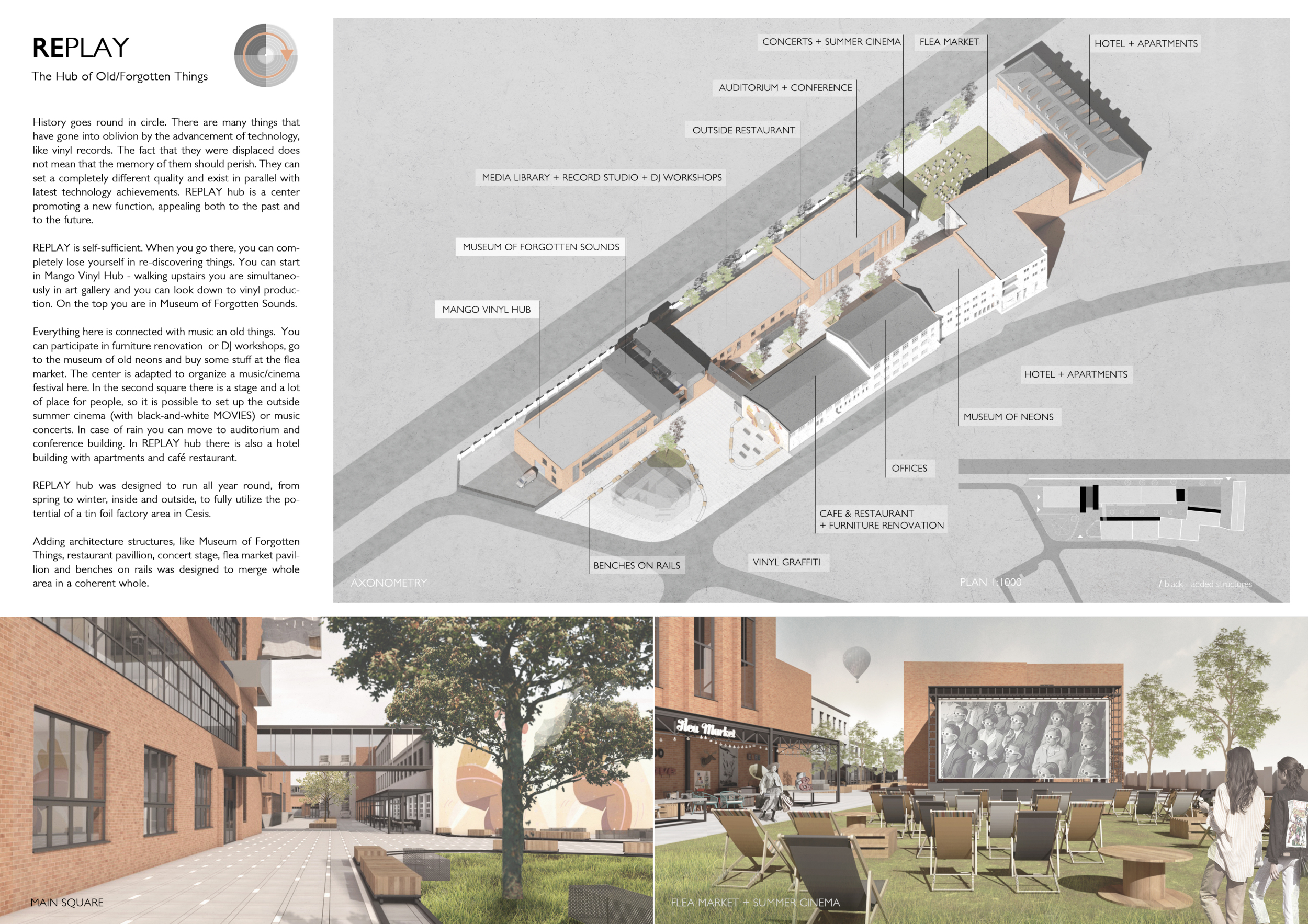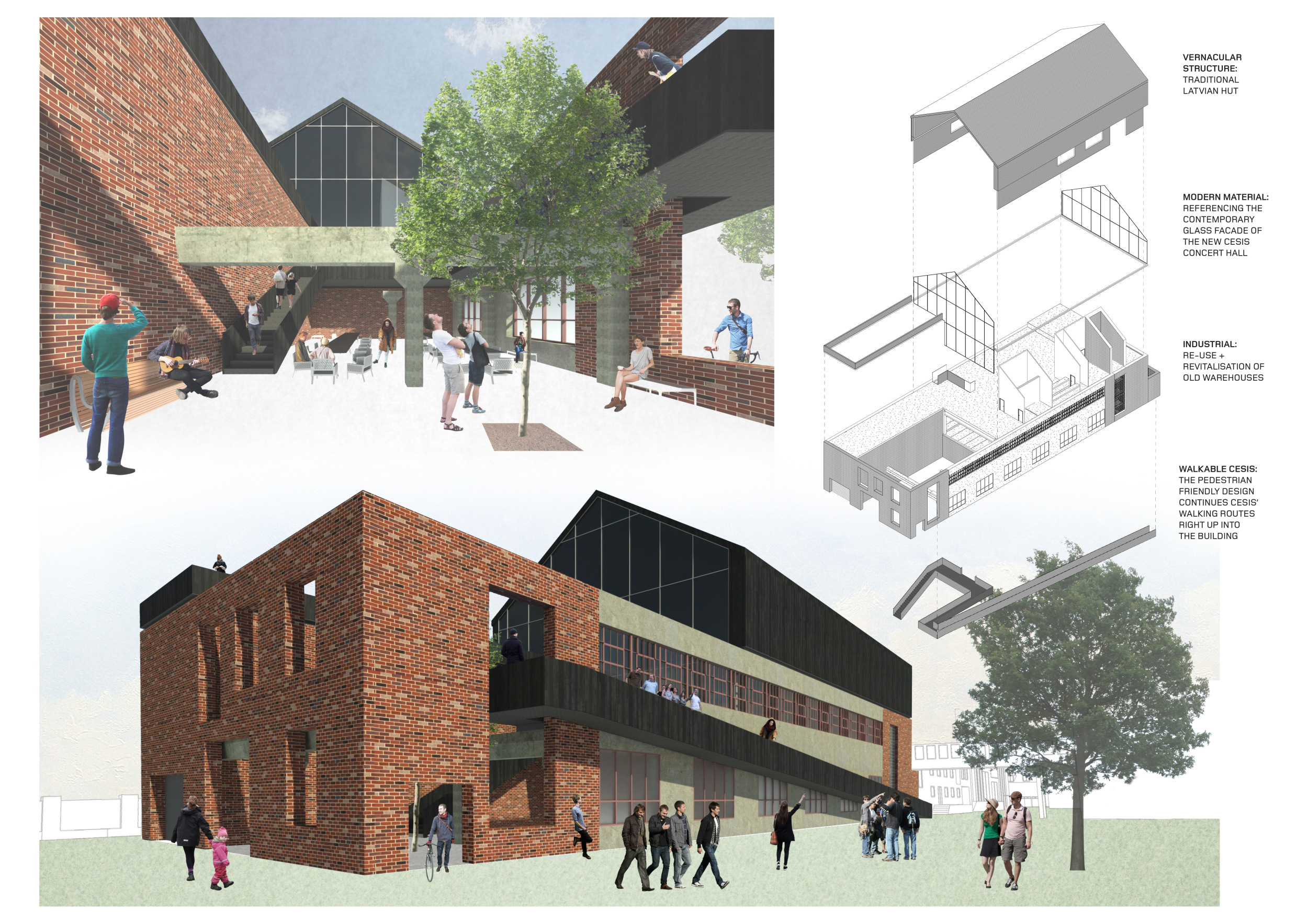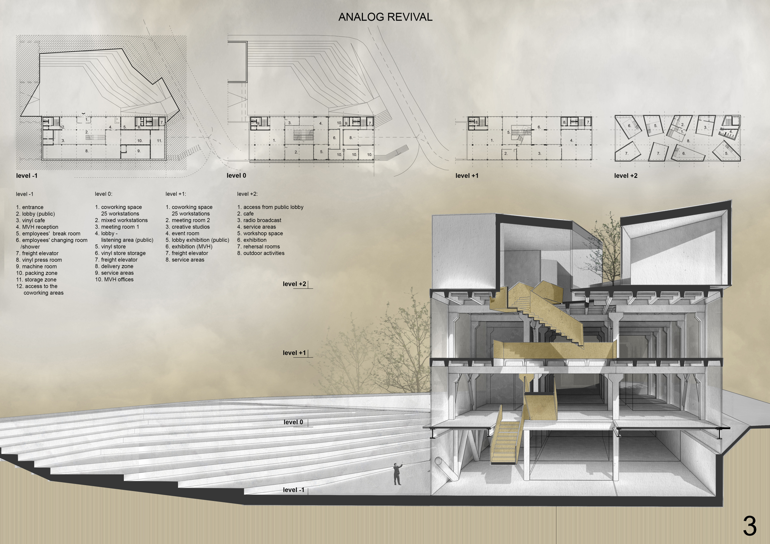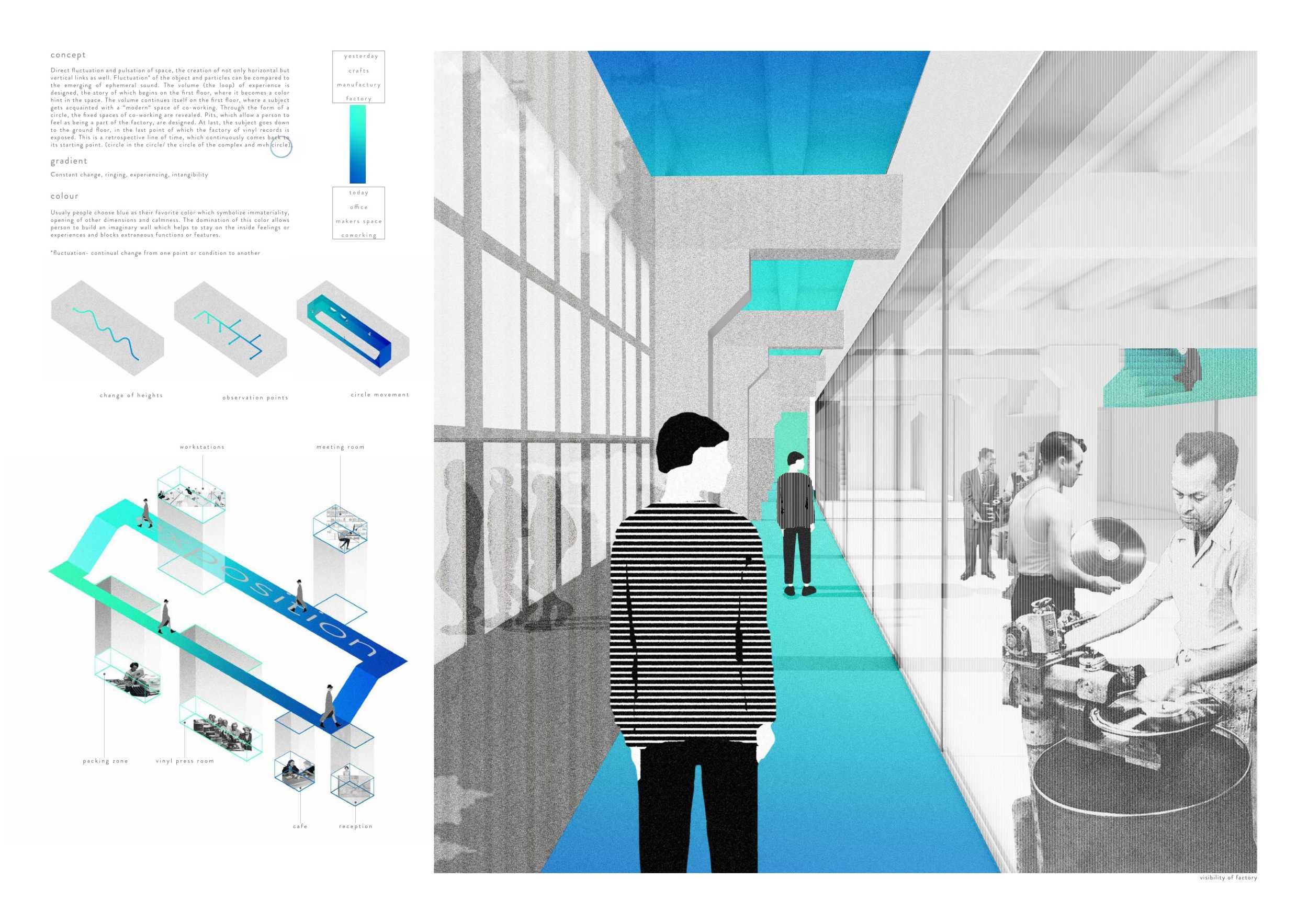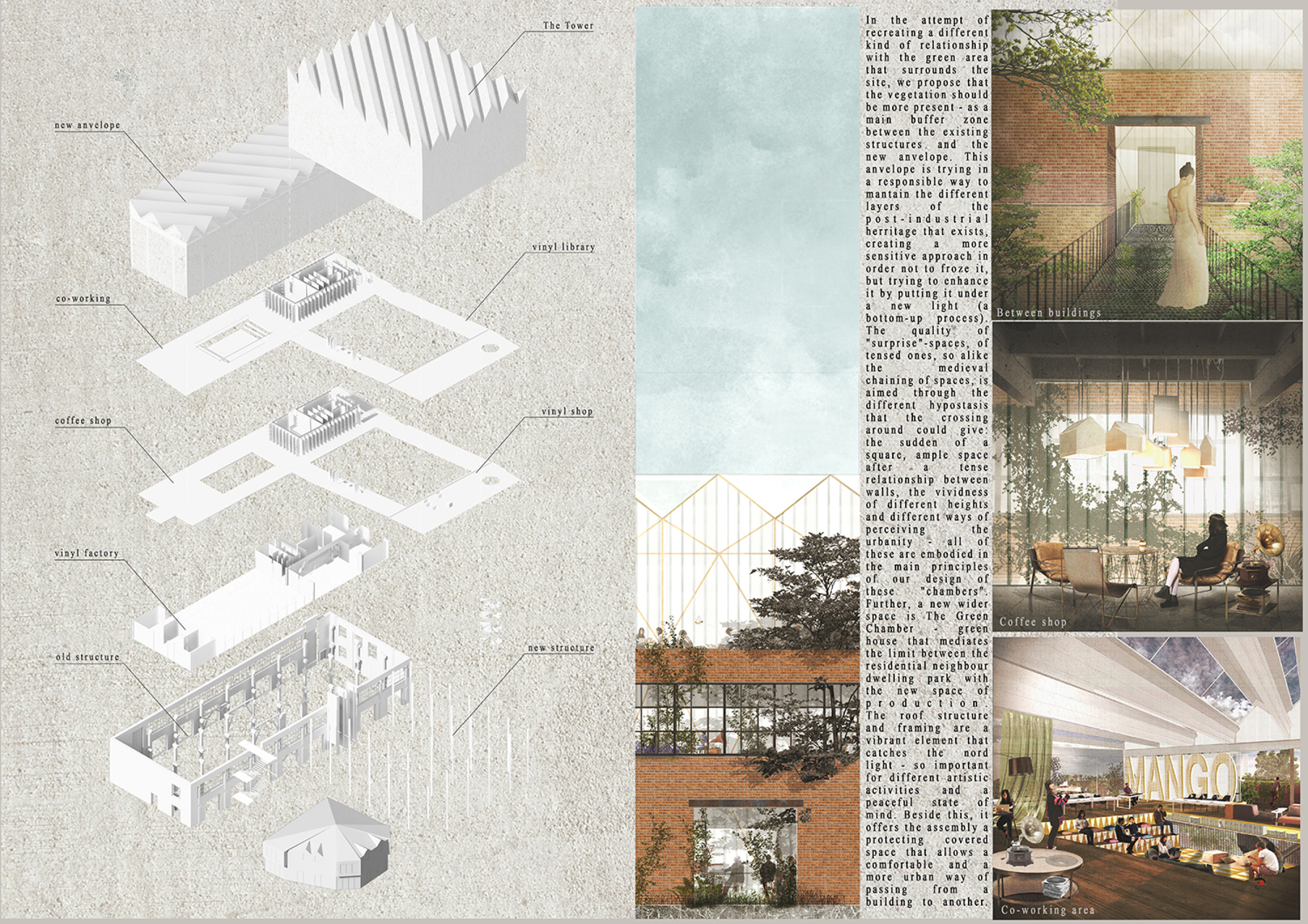 The Mango Vinyl Hub competition solicits consideration of a familiar circumstance characteristic of the contemporary regional condition. Located in Cesis, a historic and provincial city in the Vidzeme region of Latvia, the project calls into question possible and imagined futures of recent historic and artifactual culture — of architecture, music, industry, and design. Participating in the materializing creative industry of Cesis, the project invites designers to consider the adaptive reuse of an abandoned tin foil factory in promotion of a resurgent interest in the vinyl record industry. The project aptly repurposes an architecture arising from the exigency of early industrial production in support of a programmatic celebration of contemporaneous technology. In so doing, the context provokes reflection on the value of cultural patrimony and artifact, particularly the tenuousness of obsolescence and the concurrent squander or flotsam of technological disruption. As a re-appropriation of a previous structure, the competition requires attention to programming and circulation, as well as concerns of spatiality, interiority, and public-private relation. Successful projects temper the impulse of retrojecting nostalgic hallmark or tradition, through revitalization of purpose of an artifact and history of a bygone era.