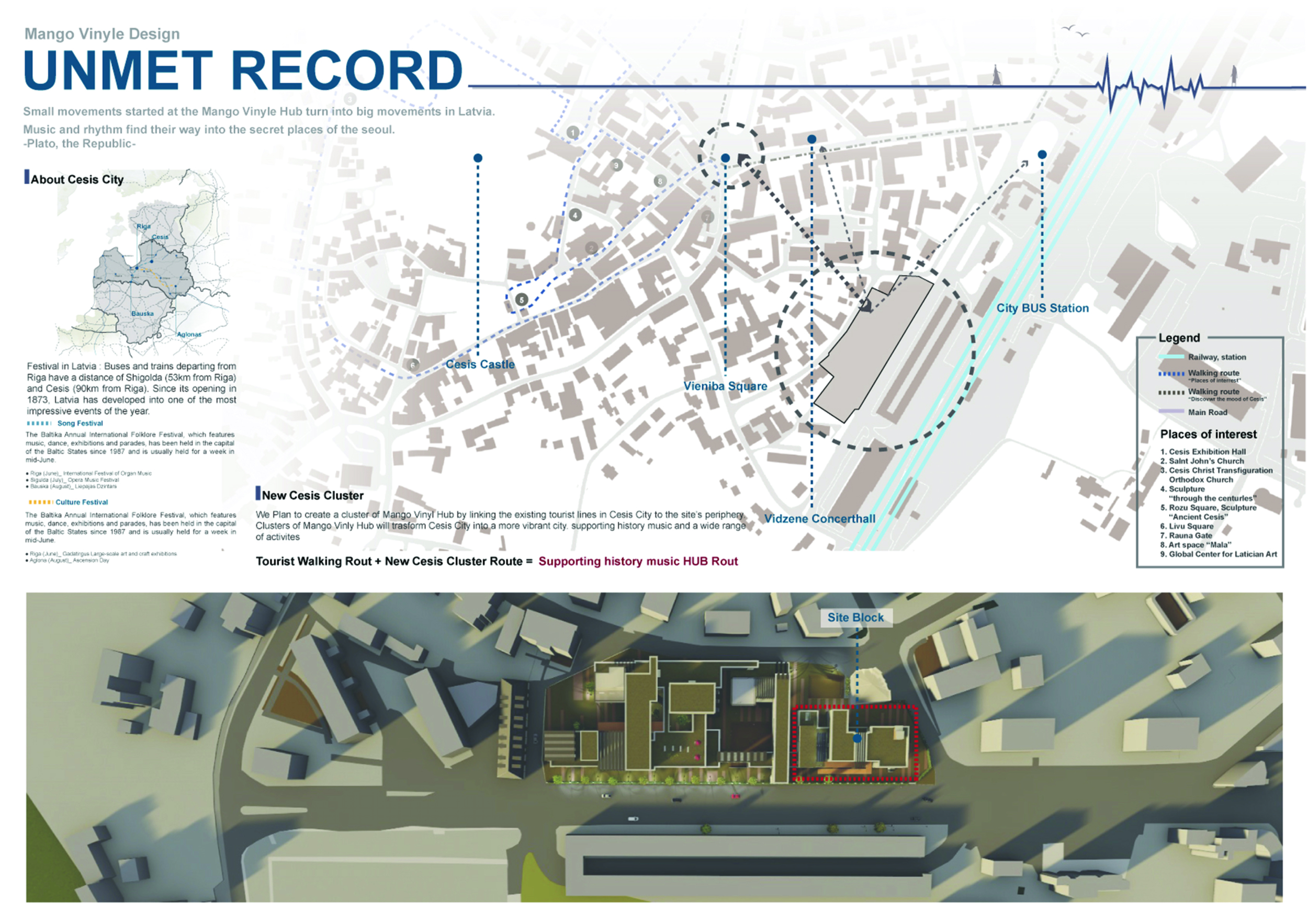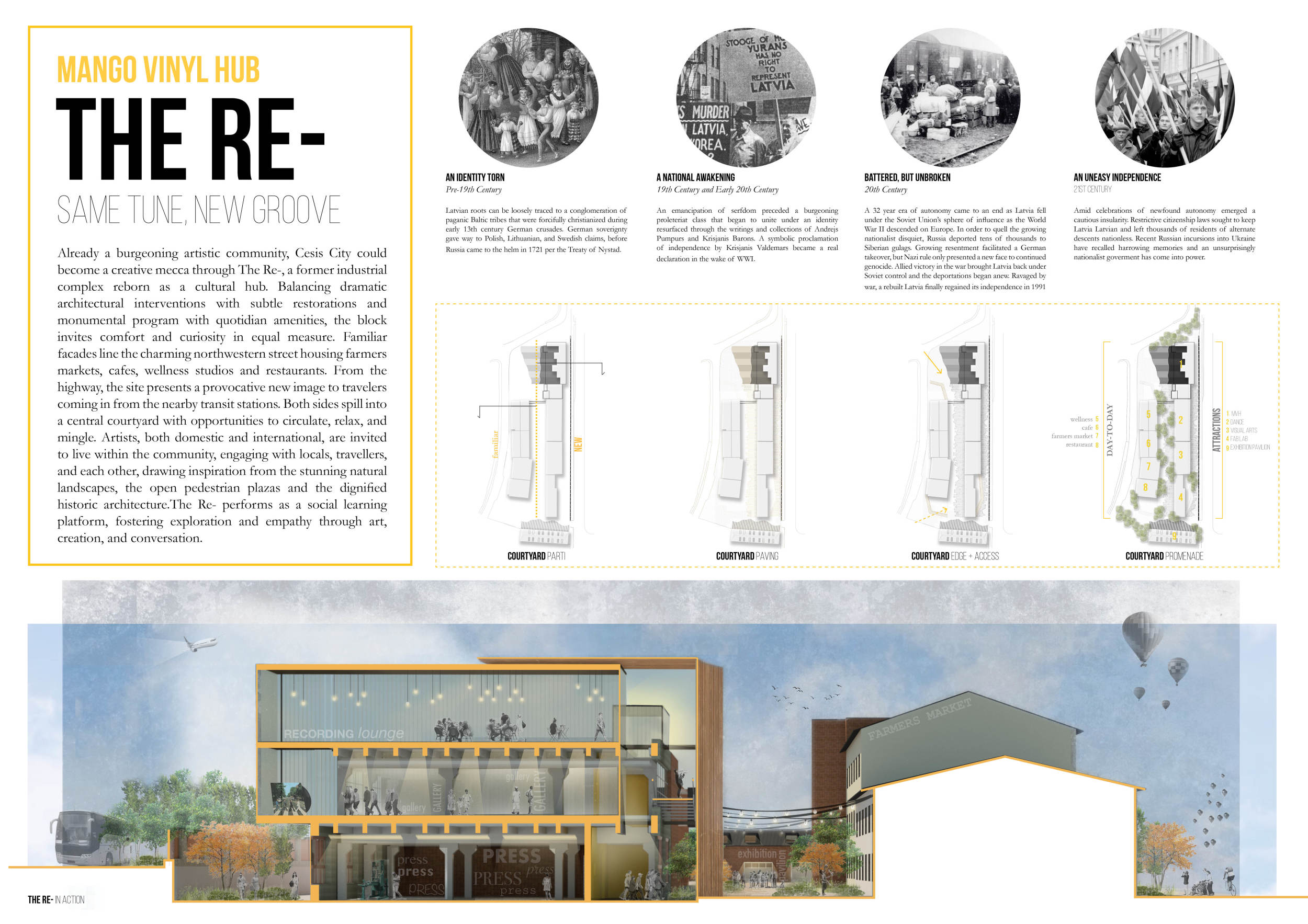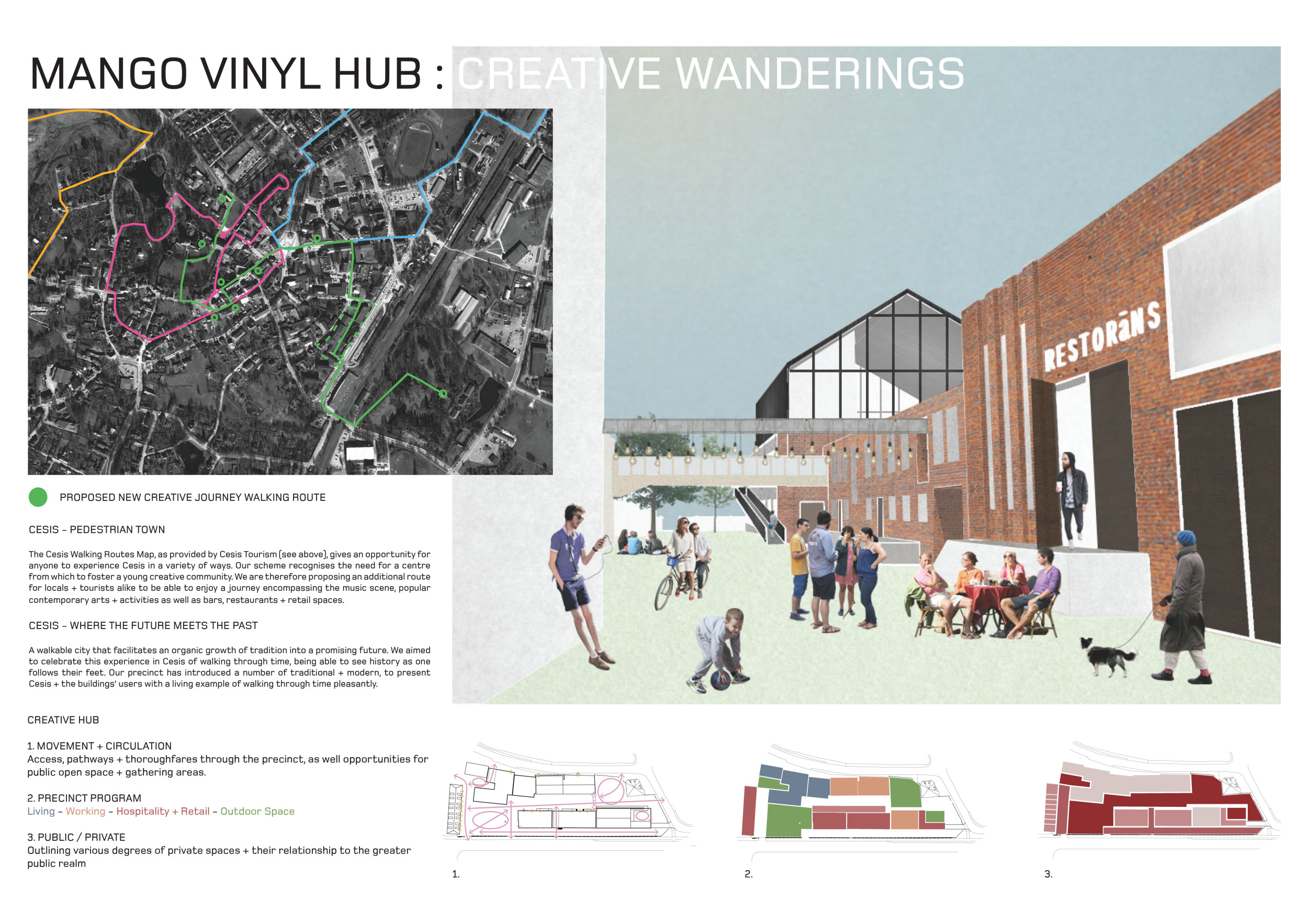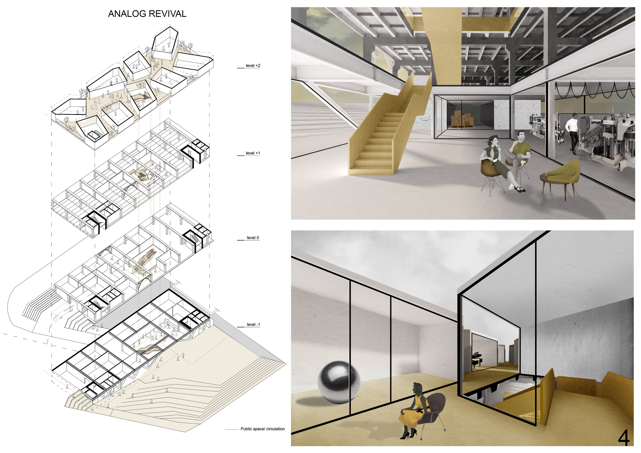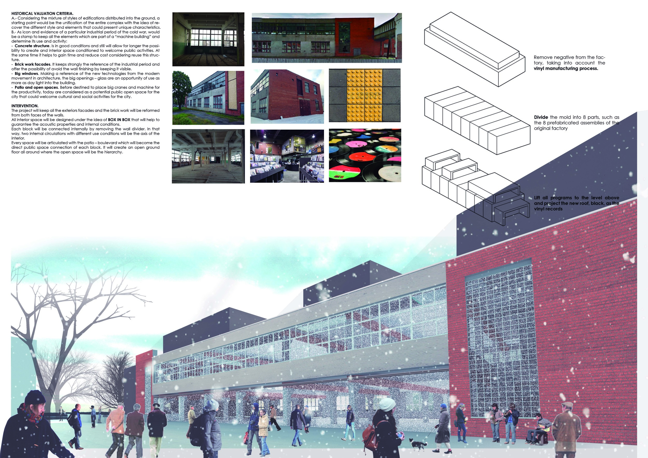The Mango Vinyl Hub competition solicits consideration of a familiar circumstance characteristic of the contemporary regional condition. Located in Cesis, a historic and provincial city in the Vidzeme region of Latvia, the project calls into question possible and imagined futures of recent historic and artifactual culture — of architecture, music, industry, and design. Participating in the materializing creative industry of Cesis, the project invites designers to consider the adaptive reuse of an abandoned tin foil factory in promotion of a resurgent interest in the vinyl record industry. The project aptly repurposes an architecture arising from the exigency of early industrial production in support of a programmatic celebration of contemporaneous technology. In so doing, the context provokes reflection on the value of cultural patrimony and artifact, particularly the tenuousness of obsolescence and the concurrent squander or flotsam of technological disruption. As a re-appropriation of a previous structure, the competition requires attention to programming and circulation, as well as concerns of spatiality, interiority, and public-private relation. Successful projects temper the impulse of retrojecting nostalgic hallmark or tradition, through revitalization of purpose of an artifact and history of a bygone era.