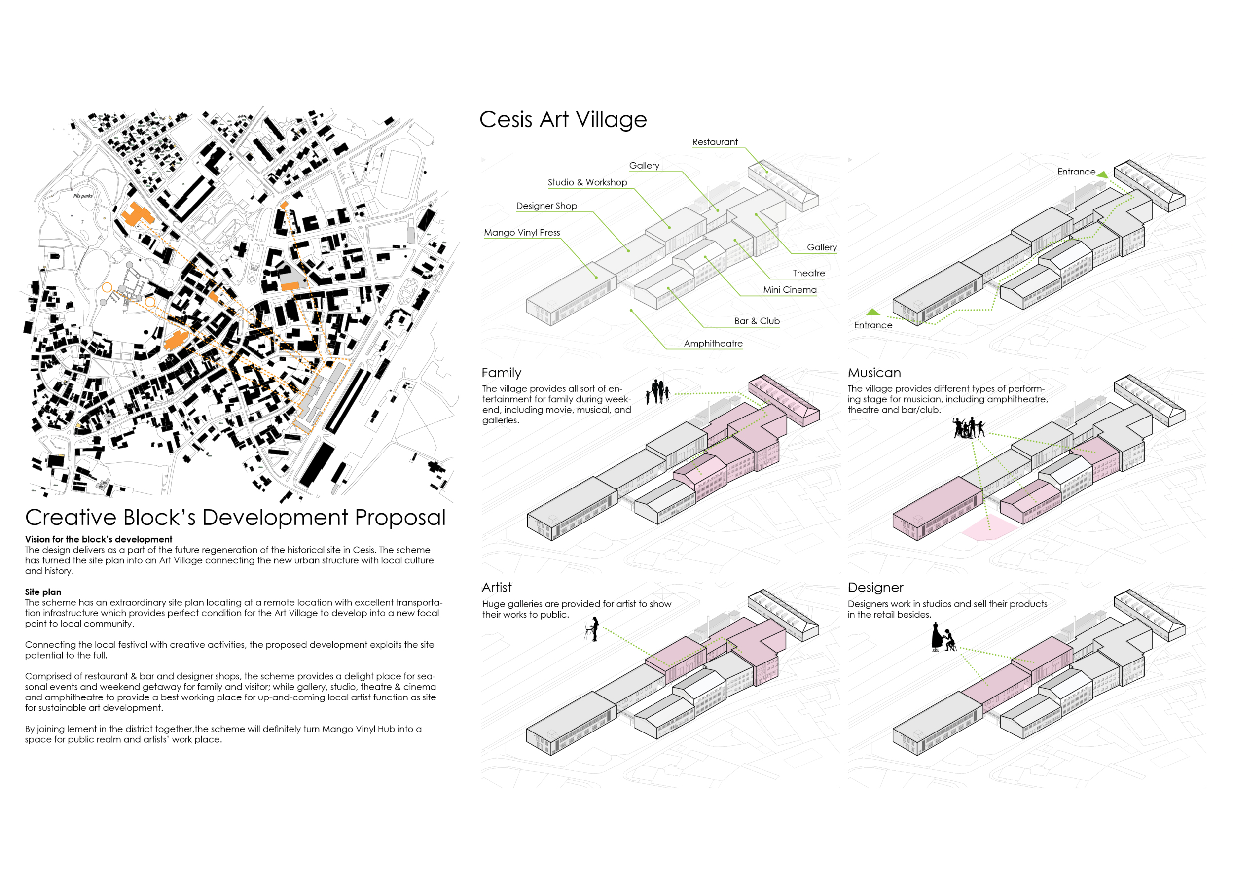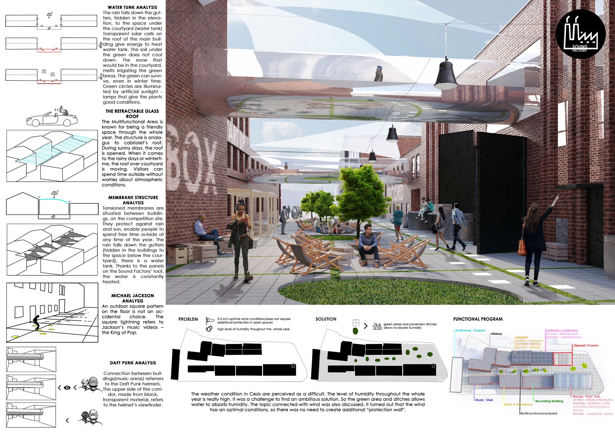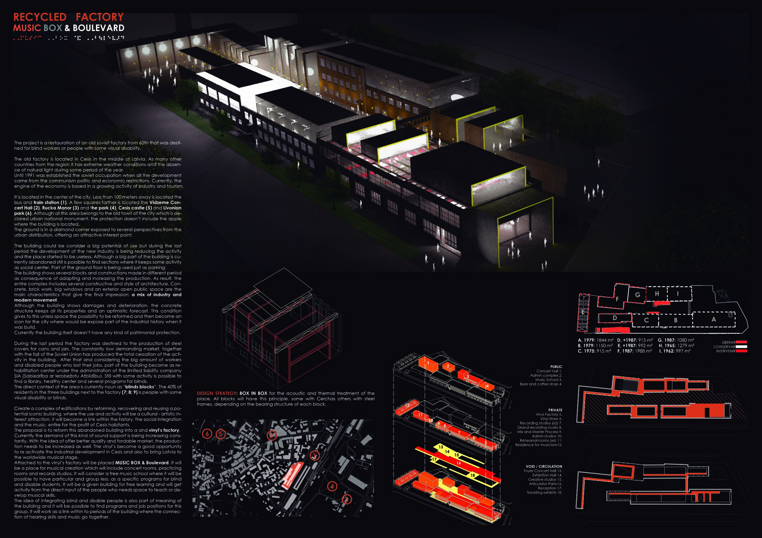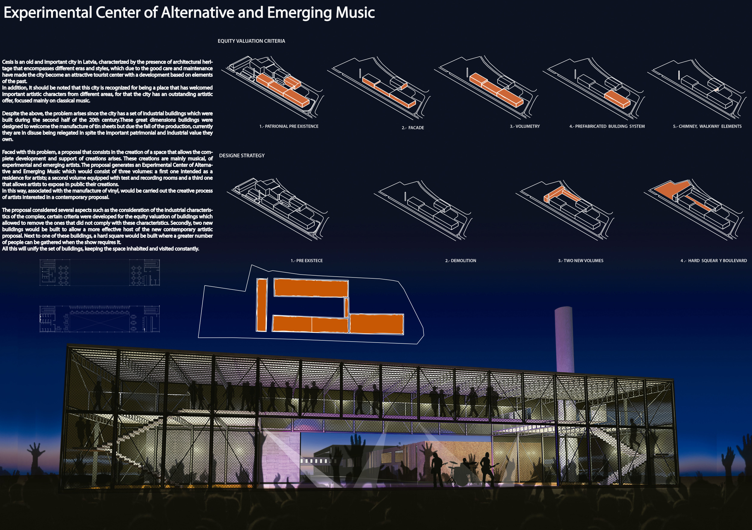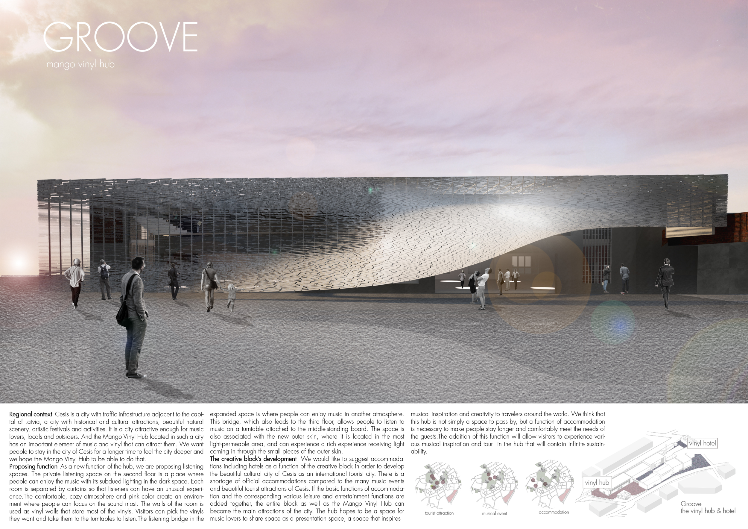 The Mango Vinyl Hub competition solicits consideration of a familiar circumstance characteristic of the contemporary regional condition. Located in Cesis, a historic and provincial city in the Vidzeme region of Latvia, the project calls into question possible and imagined futures of recent historic and artifactual culture — of architecture, music, industry, and design. Participating in the materializing creative industry of Cesis, the project invites designers to consider the adaptive reuse of an abandoned tin foil factory in promotion of a resurgent interest in the vinyl record industry. The project aptly repurposes an architecture arising from the exigency of early industrial production in support of a programmatic celebration of contemporaneous technology. In so doing, the context provokes reflection on the value of cultural patrimony and artifact, particularly the tenuousness of obsolescence and the concurrent squander or flotsam of technological disruption. As a re-appropriation of a previous structure, the competition requires attention to programming and circulation, as well as concerns of spatiality, interiority, and public-private relation. Successful projects temper the impulse of retrojecting nostalgic hallmark or tradition, through revitalization of purpose of an artifact and history of a bygone era.