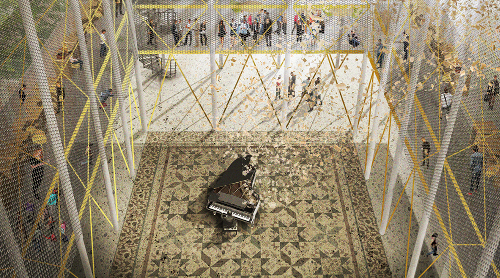 The winning team of Lucia Filippini, Elisa Dellarossa, and Tuana Yıldız from Italy set themselves apart by developing a restoratively sensitive architectural critique of the industrial work culture. In their designs they transformed the abandoned factory into a new co-working campus, incorporating a system of colourful, almost cartoonish, transit tubes to facilitate connection and communication.