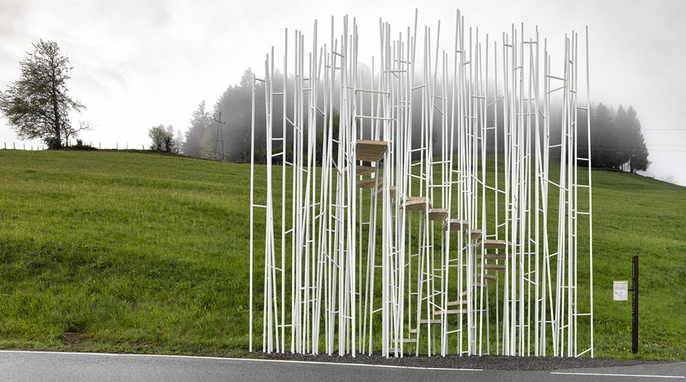 Sou Fujimoto created a bus stop that resembled a forest of thin steel rods supporting a winding staircase.