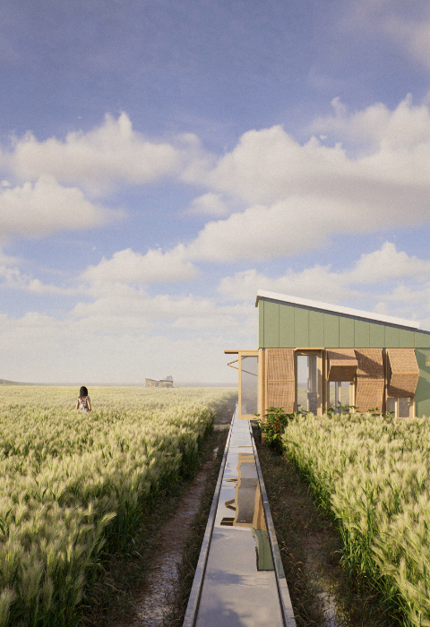 Living on Groundwater is a 25 m² microhome designed as part of a broader hydrological system rather than as an isolated dwelling. Set within the agricultural fields of Punjab, India, one of the regions most affected by severe groundwater depletion, the project proposes a low-footprint, hydro-positive housing model in which residents become active agents in groundwater recharge.