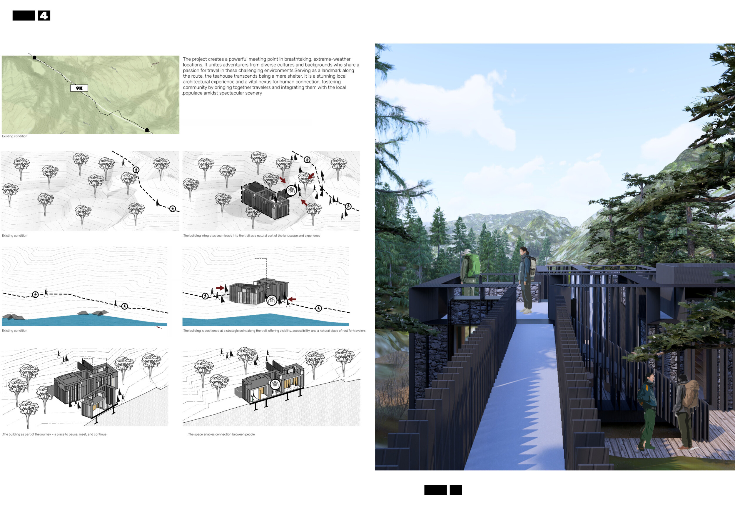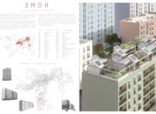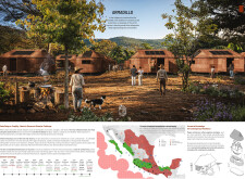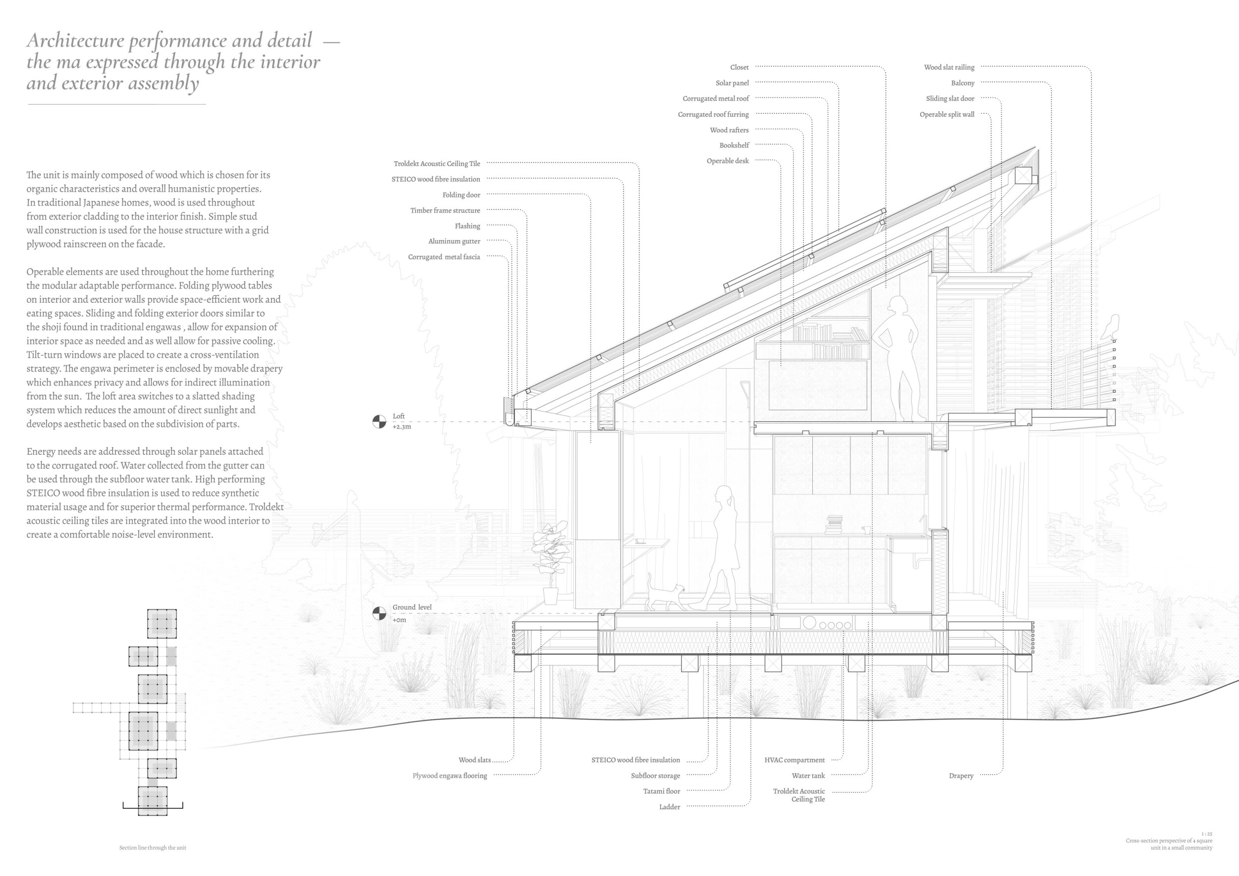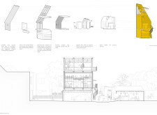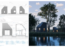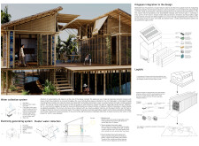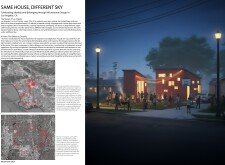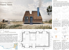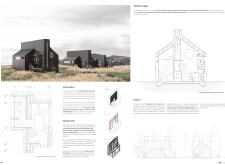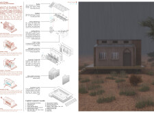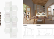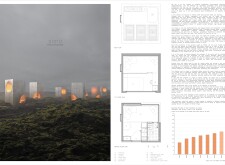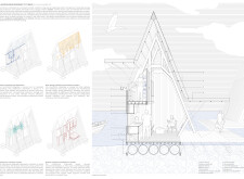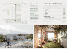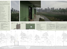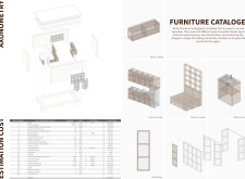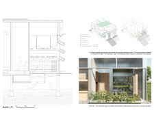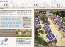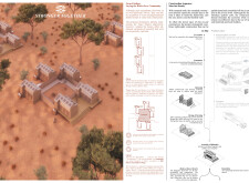 The presentation is strong and carefully composed, with clean linework and well-lit interior renderings that communicate warmth and inhabitation. The layout is coherent, yet some panels carry dense paragraph blocks whose visual weight competes with the drawings. Hierarchy could be sharpened by reducing text size or spacing to allow diagrams—particularly the multifunction joinery sequences—to register more immediately. Read more The axonometrics are clear but lightly rendered, and a slightly bolder line hierarchy would strengthen legibility at small scale. Colour balance is soft and consistent, though the uniformly warm palette of the renderings compresses tonal variety across the boards. Overall, the submission effectively communicates the architectural intent and spatial logic, with room for refinement in visual hierarchy and diagram clarity.