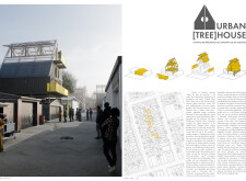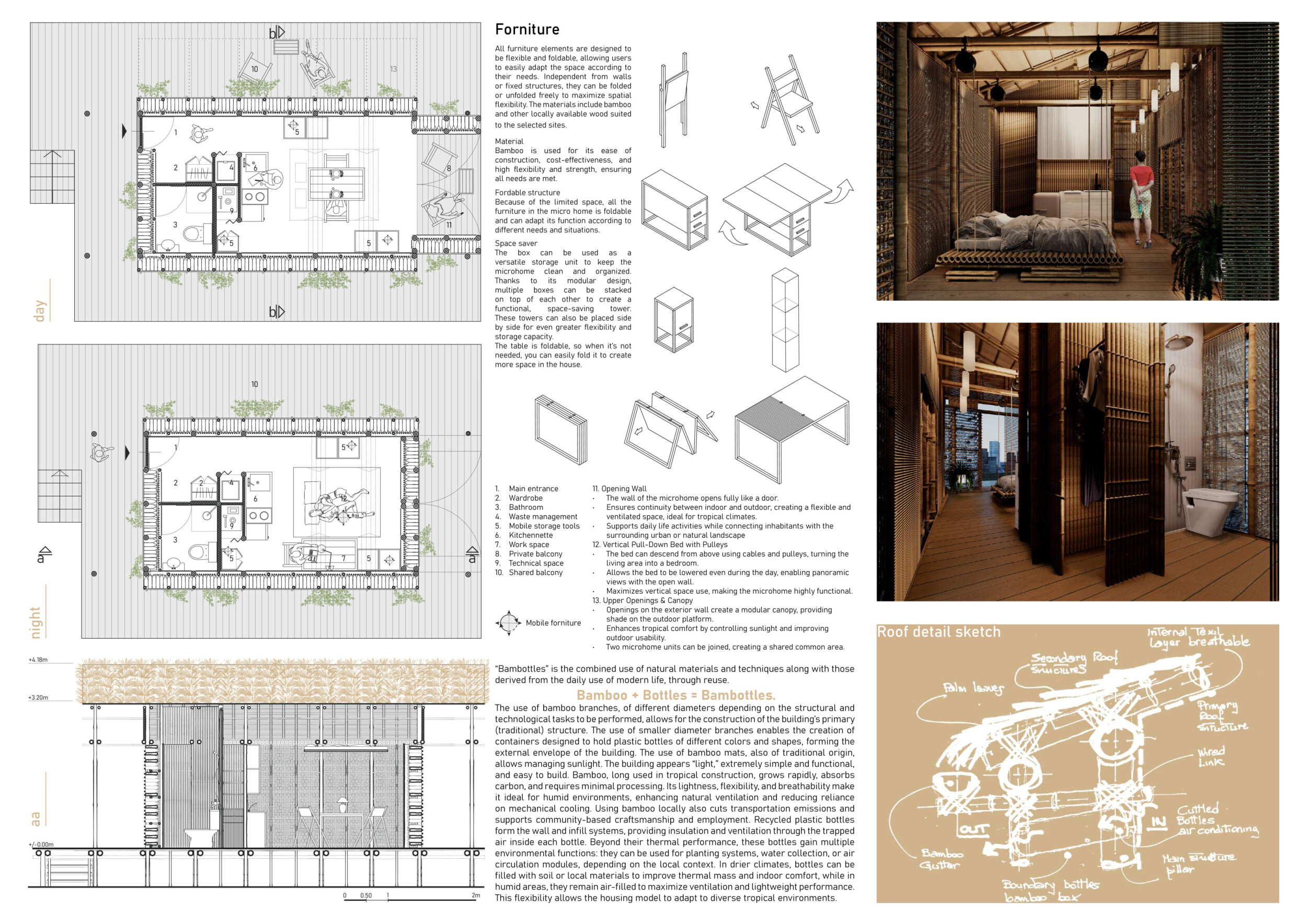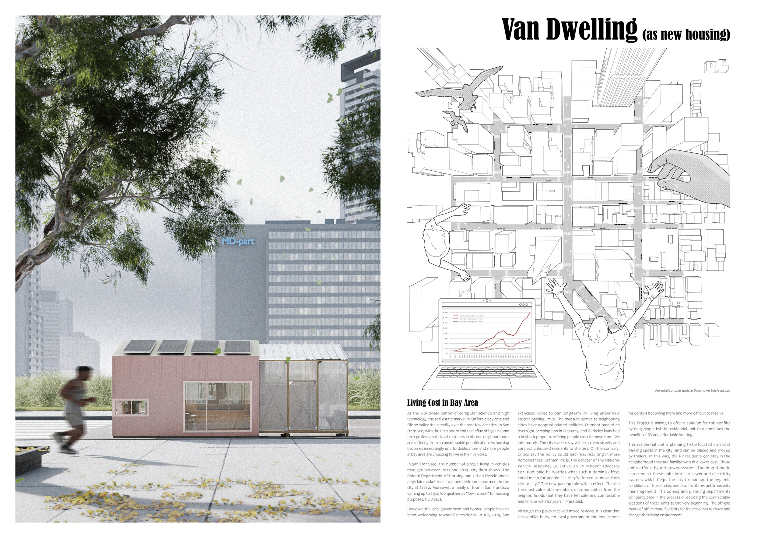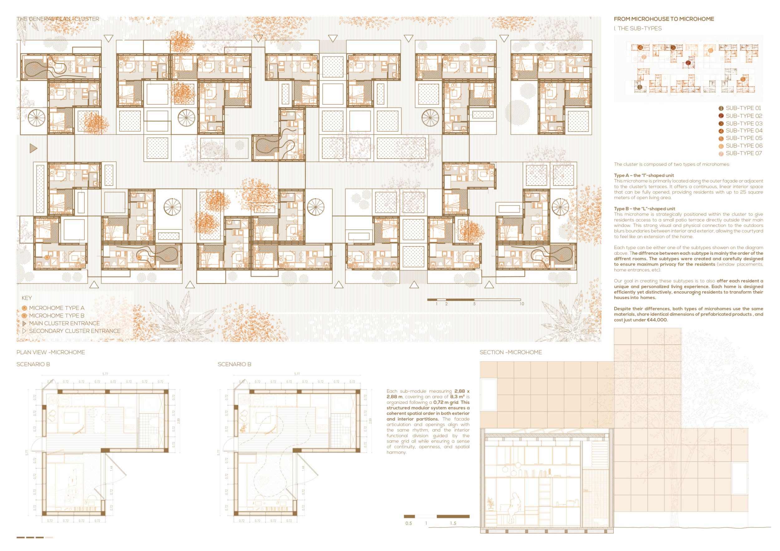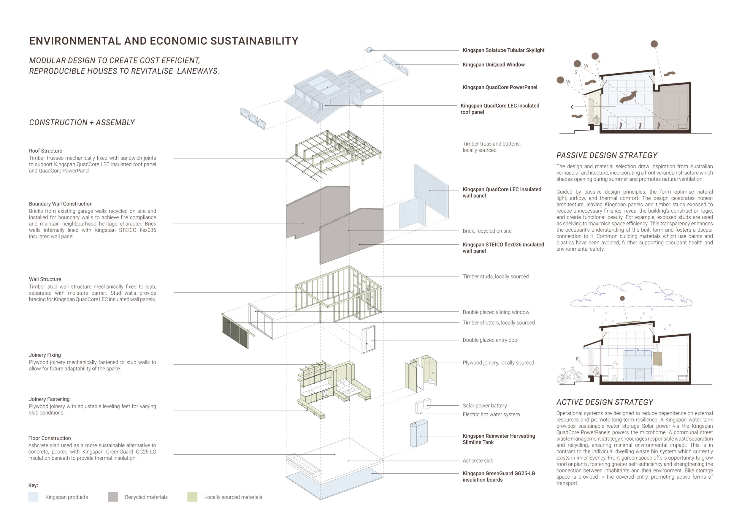This proposal reimagines Sydney’s laneway garages as compact, socially responsive microhomes that maximise a constrained footprint through flexible interiors, material simplicity, and a clear urban narrative. The plan separates the 22 m² unit into two functional zones: a front living-and-cooking area opening directly to the laneway, and a rear zone dedicated to sleeping, bathing, and work, moderated by a curtain partition for adjustable privacy.