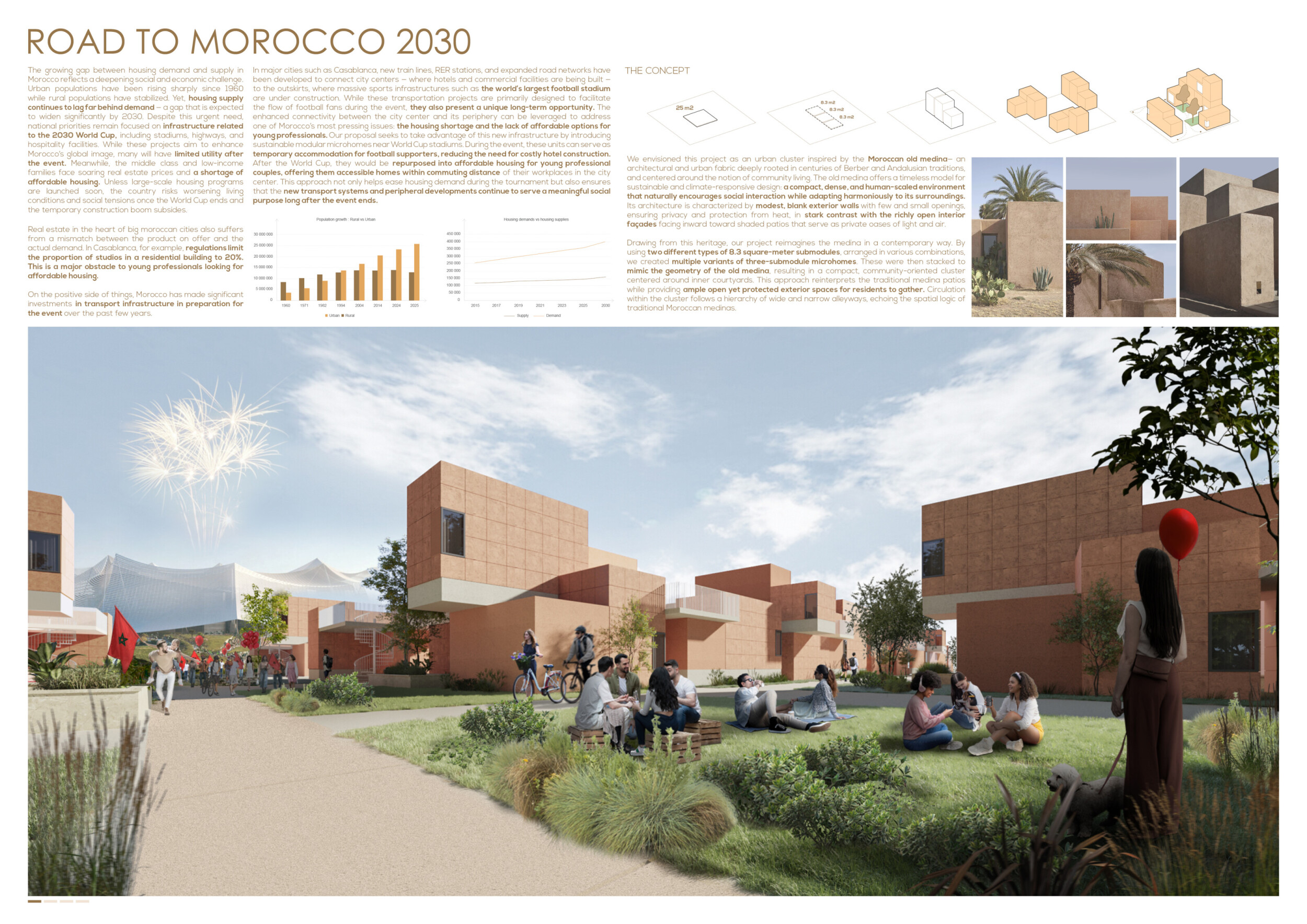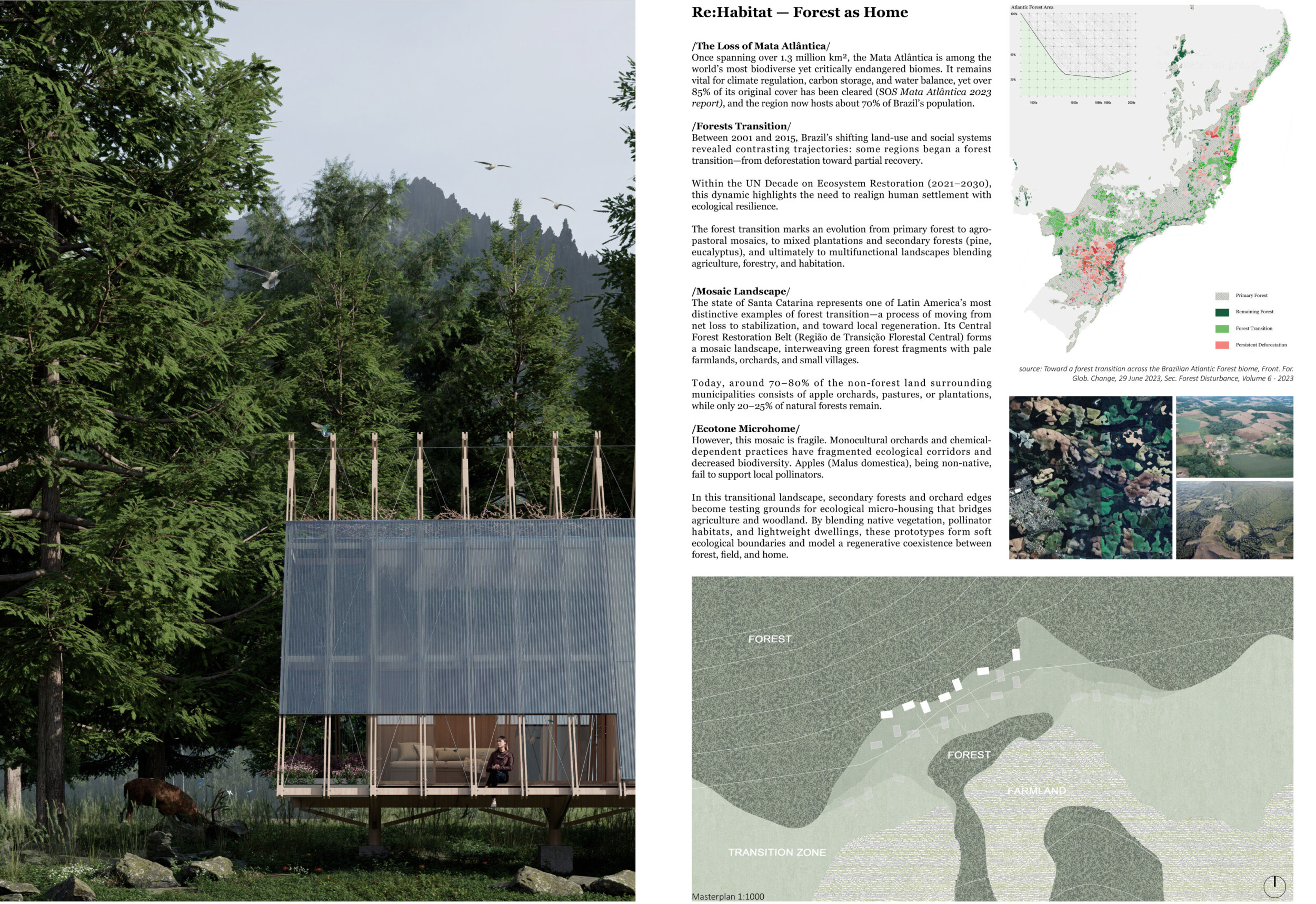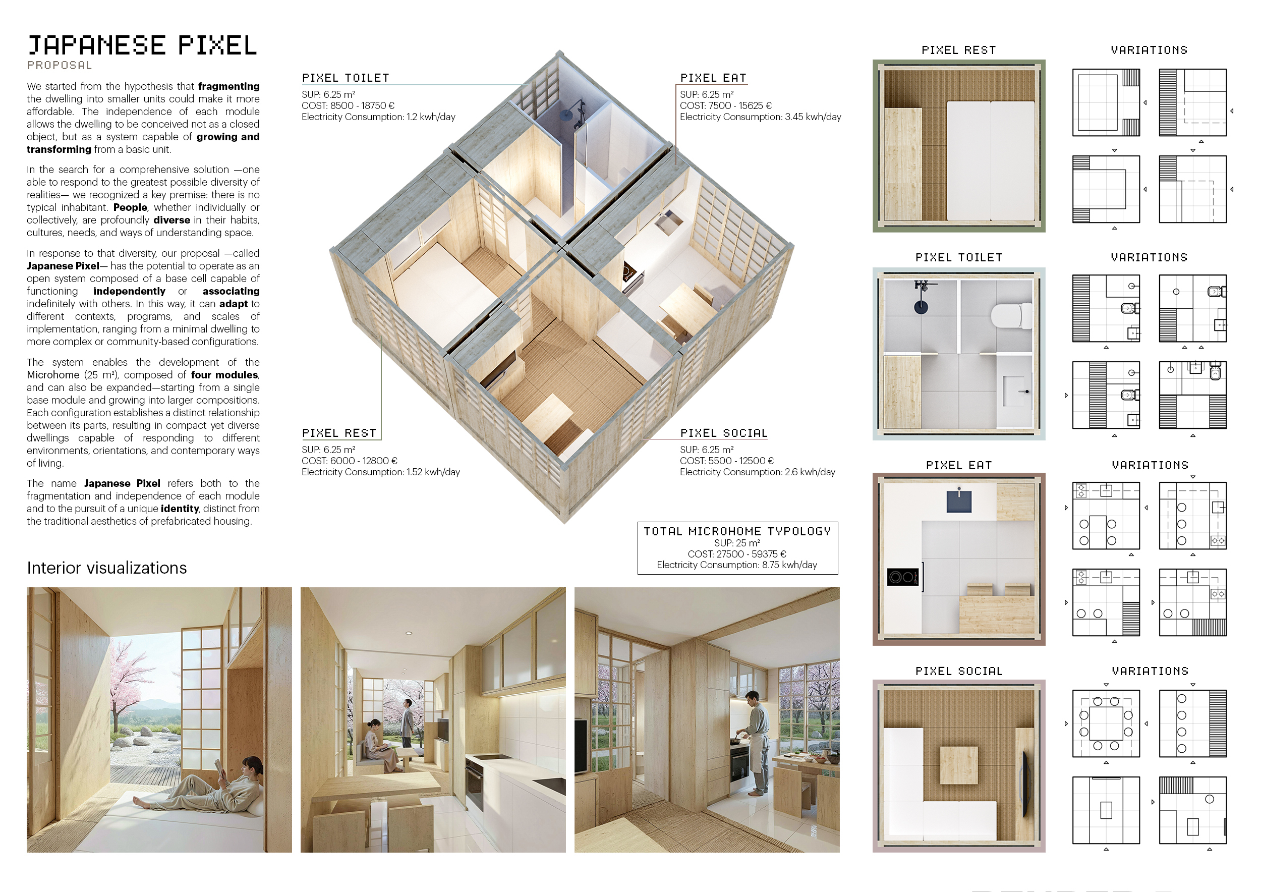 SumakWasi proposes a modular microhome system designed to meet Ecuador’s diverse climates and social conditions through a single adaptable housing model. The project responds to urgent housing deficits by offering a compact 25 m² base unit enhanced by a 7.4 m² extension that supports long term growth. The design uses a simple structural grid, efficient panelized construction, and clear zoning to create flexible interiors that adjust to changing family needs.