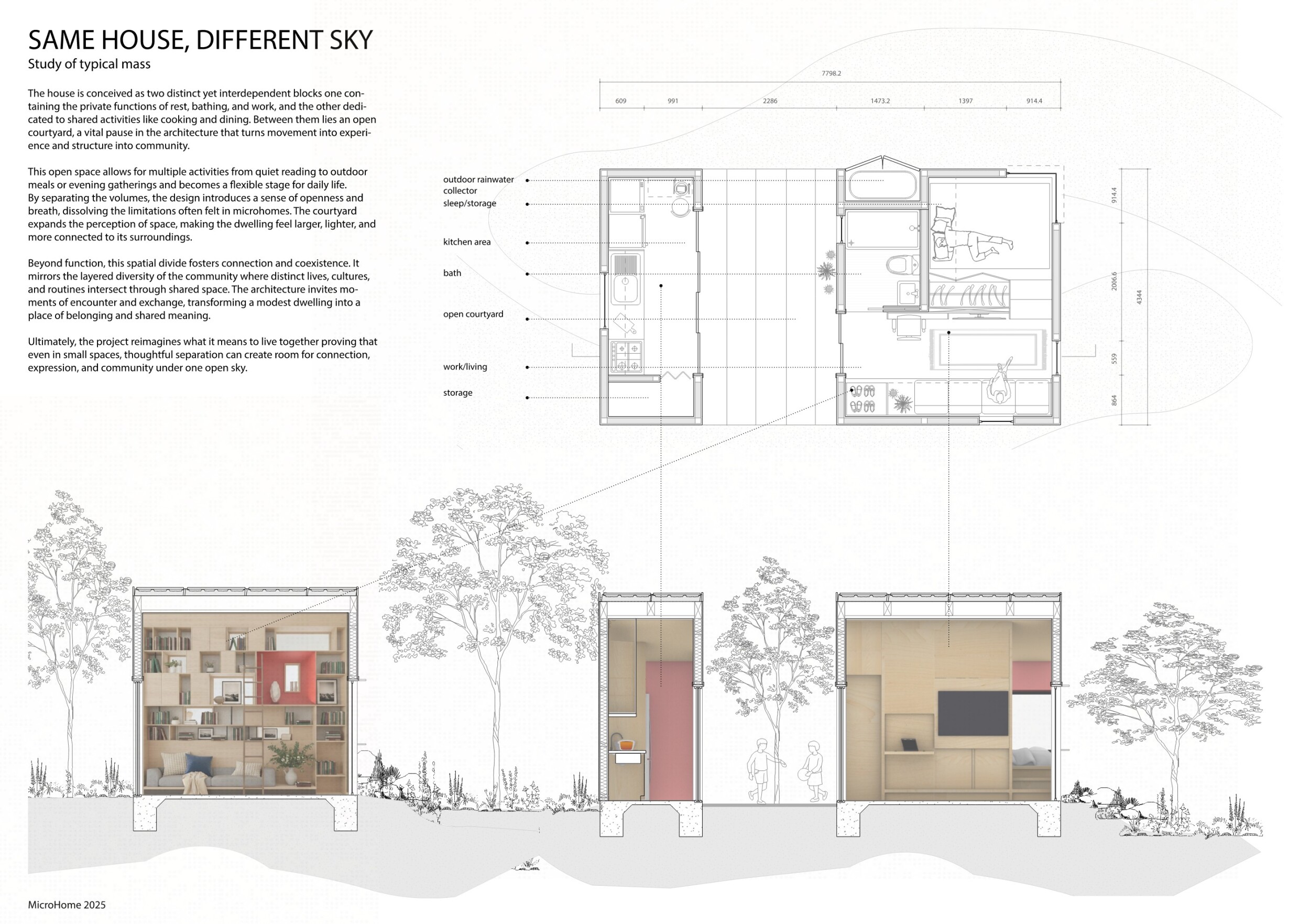 As global housing pressures intensify—driven by climate instability, rising construction costs, and growing demographic needs—the call for compact, resilient, and culturally responsive dwellings has never been more urgent. Microhomes continue to offer a powerful testing ground for architects to explore new construction systems, low-carbon materials, and adaptable spatial strategies that can respond to diverse environmental and social contexts. This year’s submissions demonstrated remarkable breadth, ranging from amphibious housing systems for flood-prone regions to climate-specific modular designs for extreme cold, dense urban infill solutions, and highly flexible models capable of evolving with families and communities over time.