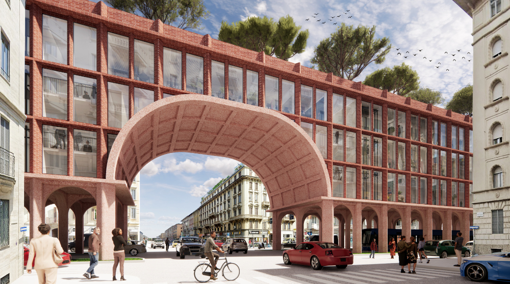 Chang Yuan Max Hsu from the United States secured the Second Prize for the proposal, "No(n)-Stop City." This innovative concept suggests a continuous ring of housing infrastructure encircling central Milan, integrating mass transit routes, residential levels, and a rooftop public park. The design promotes seamless connectivity and provides green public amenities for the surrounding neighborhoods.