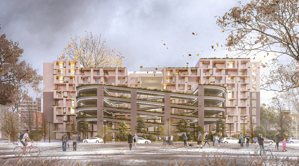 Ahmed Elkhateb, Mohammed Elkhateb, Omar Adel Elgebely, and Ahmed Negm from Consultant Engineer Bureau in Egypt were honored with the Third Prize for their concept, "Re-Park." This ingenious proposal repurposes existing parking structures in central Milan into affordable housing units. By employing robotic lifts and stacking techniques, the design optimizes land utilization, retains parking functionality, and increases housing density in the city center.