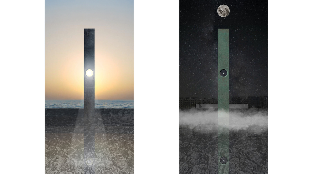At the Abu Hadriyah Road site, first prize was awarded to American designer Felix Bartolome Blanch for Hoist, a striking sequence of corten steel frames inspired by oil pump jacks that symbolize both heritage and progress. Second prize went to Polish architect Mirosław Zbigniew Nizio for The Gateway of Civilization and Progress, a monumental pair of rammed earth structures representing natural resources as foundations of growth.