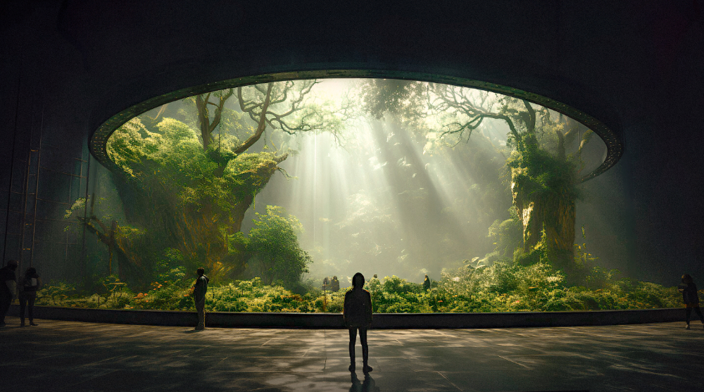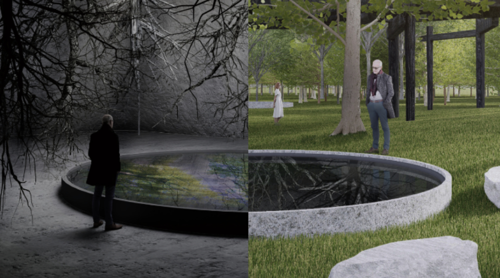 The first prize, along with the Student and Sustainability awards, was bestowed upon Jiaxun Song, Xinyue Dong, and Zehong Zhang, students from China's South China University of Technology. Their winning proposal, "Inversions," featured mirrored versions of a forested world: one alive and green, the other dead and black.