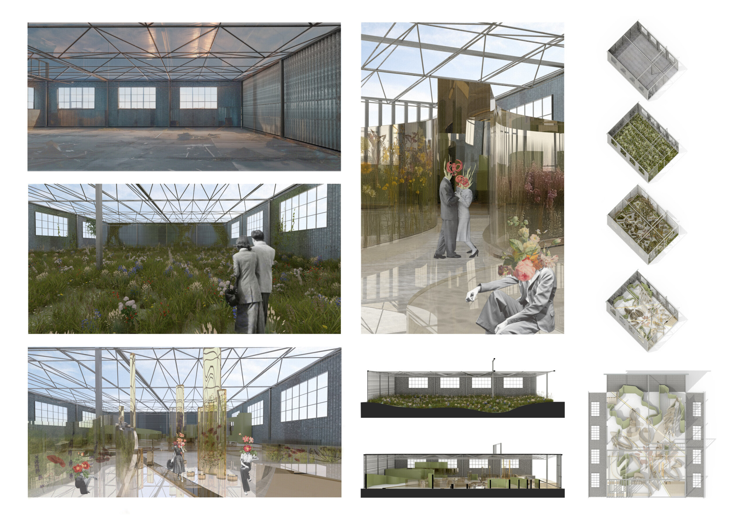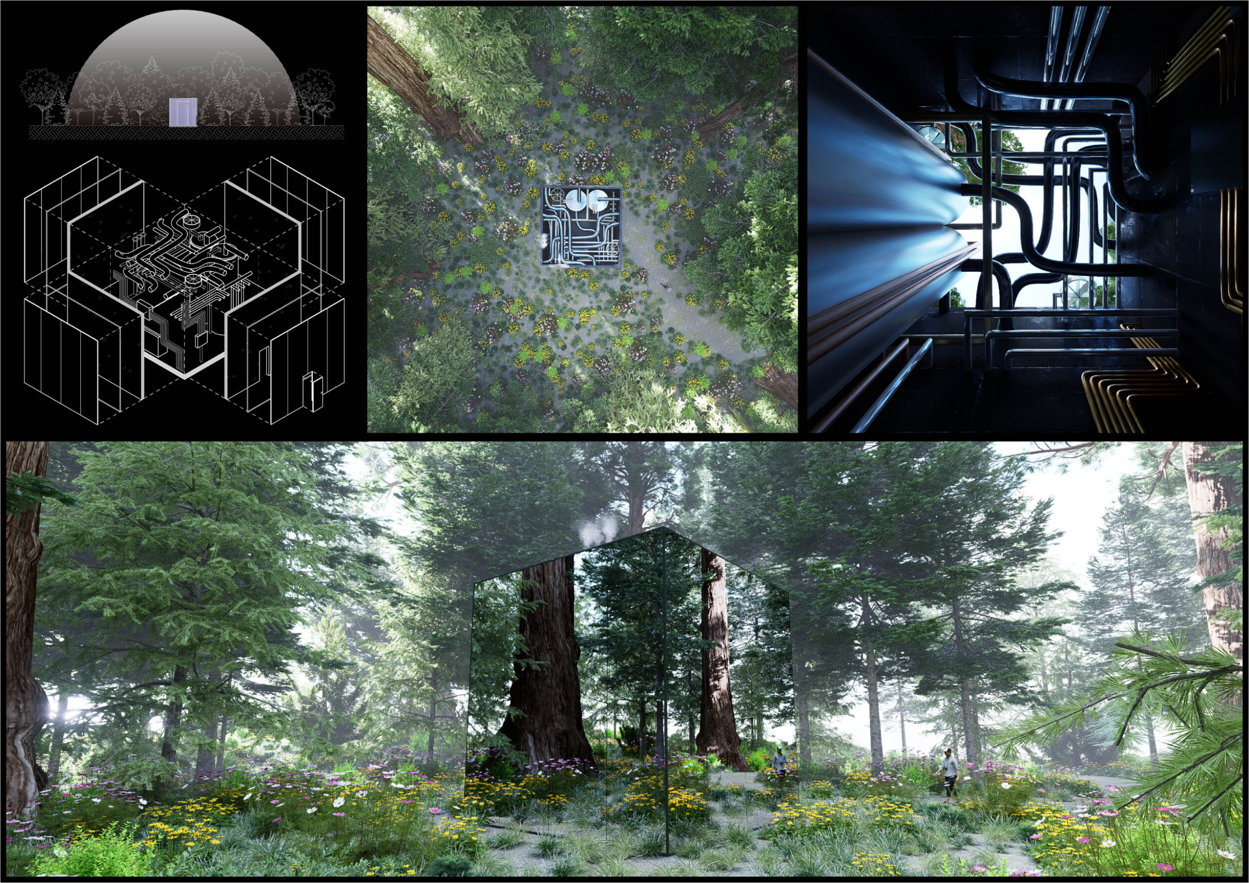 This project contrasts two very different environments to explore the relationship between architecture, nature, and human experience. The exterior blends with the surrounding landscape, featuring a floral envelope that changes with the seasons, emphasizing time and connection to nature. In contrast, the interior is dark, static, and introspective, creating a stark spatial and emotional divide. Read more By integrating plant life into the structure, the project exposes hidden ecological systems and challenges conventional architectural boundaries. Using minimal materials and natural light, it balances openness and seclusion, offering a reflective space while addressing sustainability and the integration of natural elements in design.