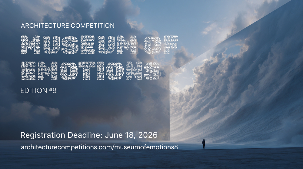 The Museum of Emotions / Edition #8 competition is open to submissions until July 20, 2026, with winners of the 10,000€ prize fund to be announced on September 29, 2026. Visit architecturecompetitions.com/museumofemotions8/ for more details.