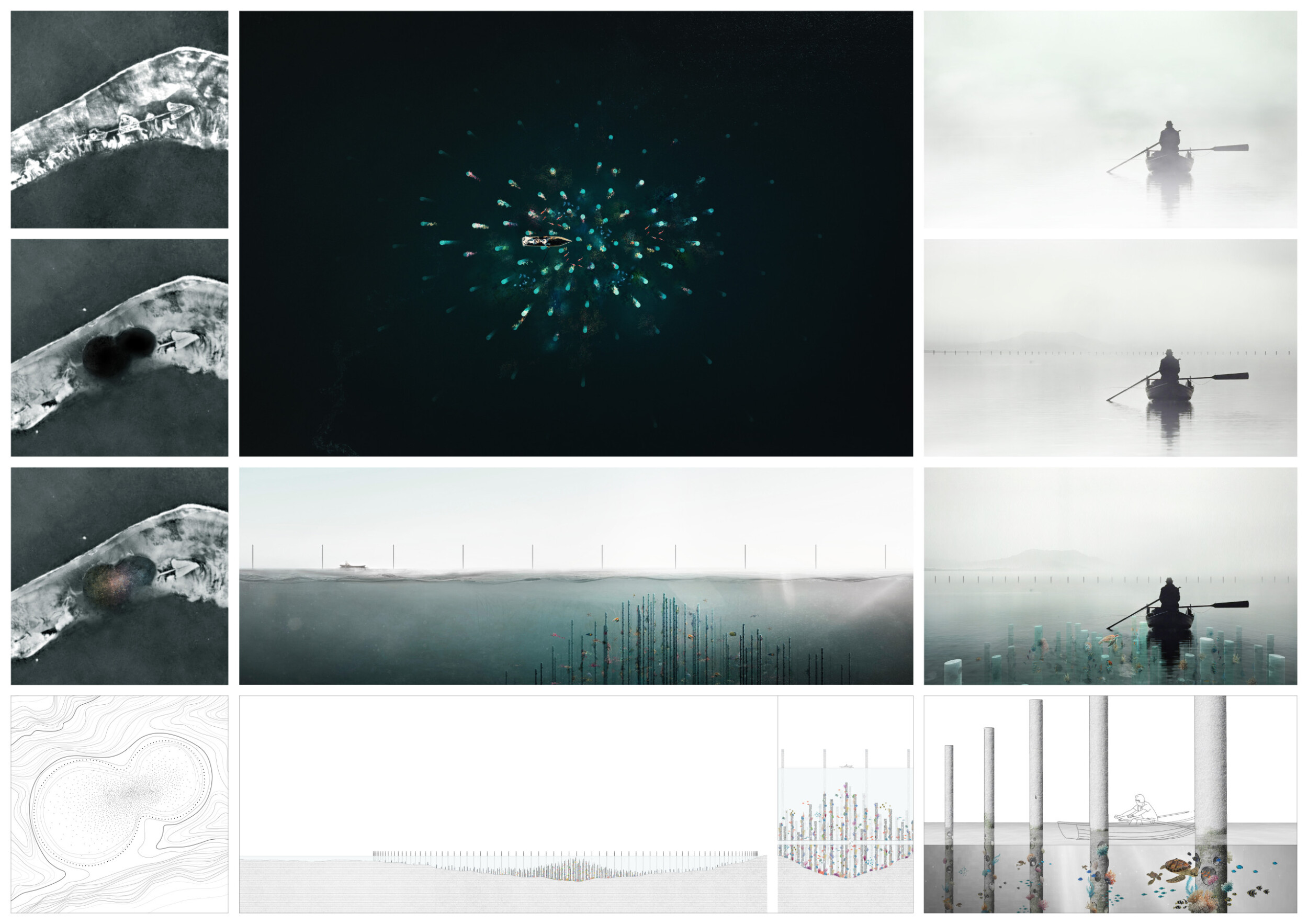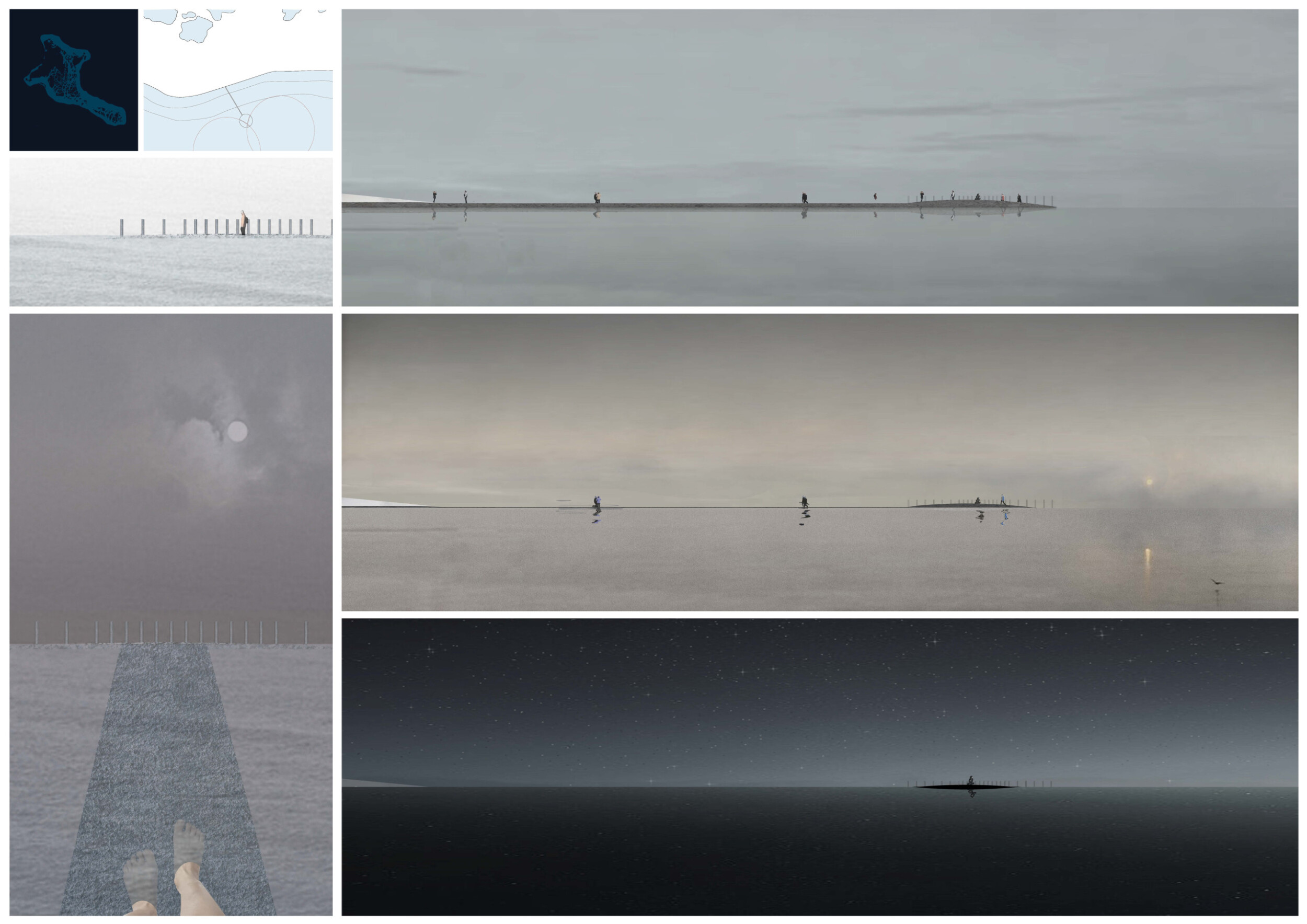 A powerful, yet quiet proposal and a beautiful presentation. Through engagement with tidal levels and local marine life, the intervention has the potential to serve as a rich, multilayered memorial while giving back to the site, suggesting a process of healing and restoration.