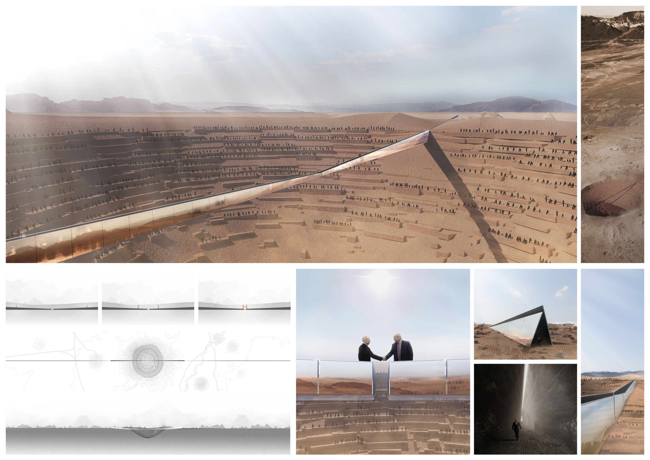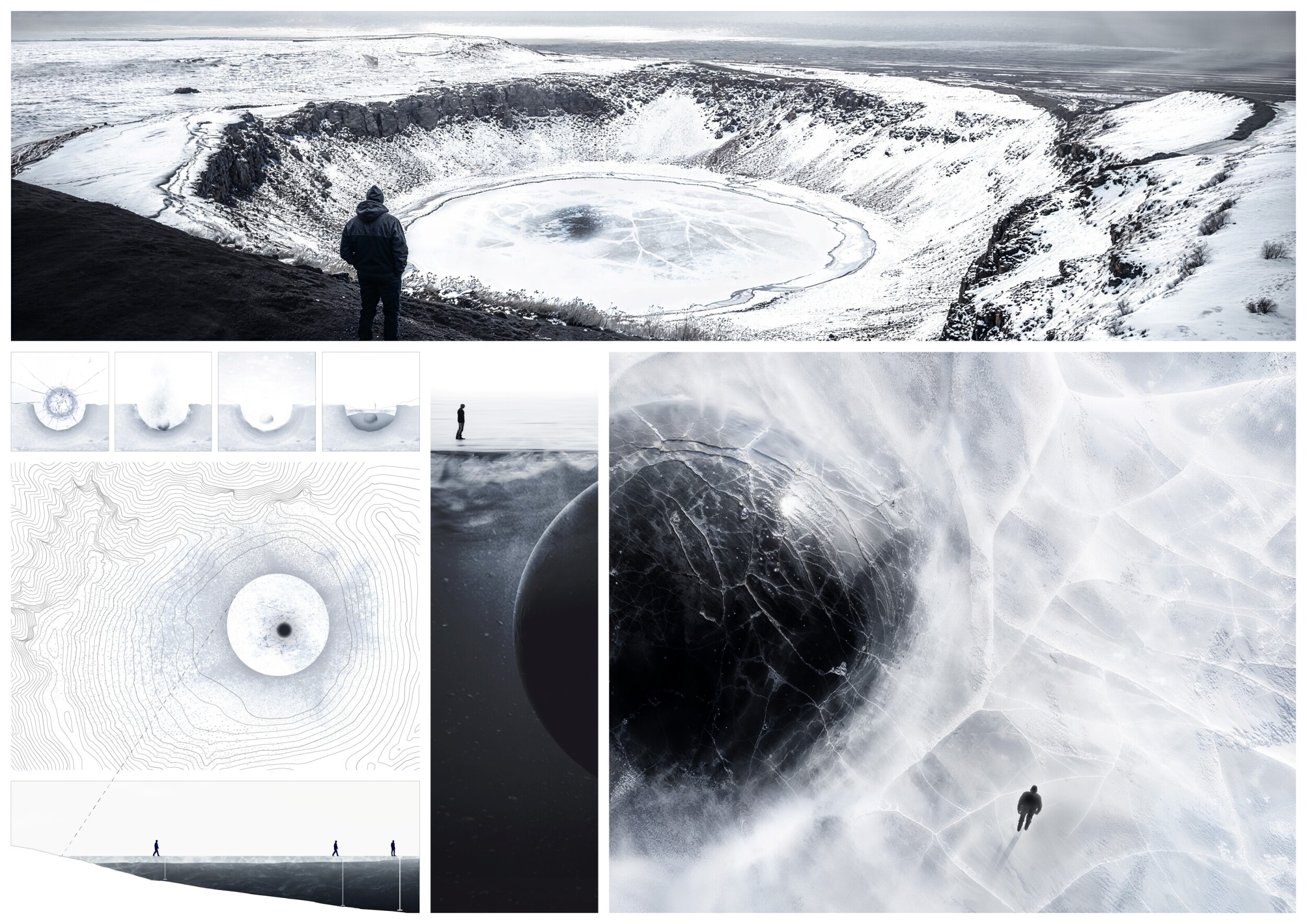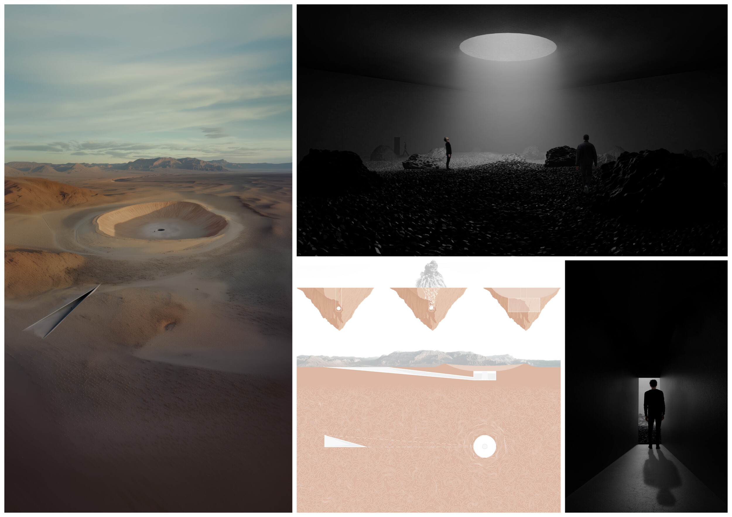 I liked this project because I could imagine myself stood in the centre of the crossing and being overwhelmed by the scale of it all. I wonder if this would be even better if the wall extended further, beyond the crater, fading into the landscape?