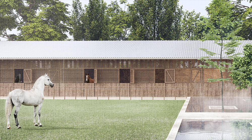 Our second prize winners were Doruk Alpsar and Amina Meslem from the UAE, whose - “Site as a Museum” project was defined by three linear sunken forms, housing the artists’ workshop and museum. Third prize winners, Vassil Vandov and Gergana Georgieva from Bulgaria, were also awarded the Green Award for their project involving timber, corrugated sheet metal, and polycarbonate panels which integrated respectfully into the setting, and its equine focus.