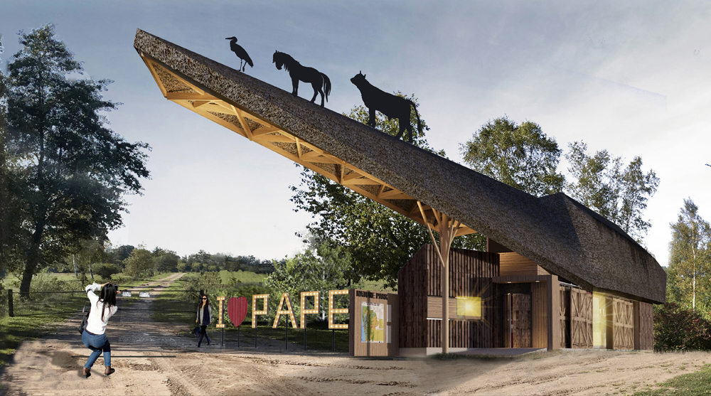 Second prize went to Jeffrey Clancy from the USA for his “Gateway to Pape Nature Park” project, whose simple barn-like roof structure hovered gently over the park’s untouched dirt road, connected to humble stone volumes that housed the visitor center. Third prize was awarded to the Origami Roof project submitted by Bogdan Bondarenko, Kostiantyn Bondarenko and Olena Kashpur from the Ukraine company, BONDARENKO GROUP, with its planking and reed roof in keeping with local folk architecture.