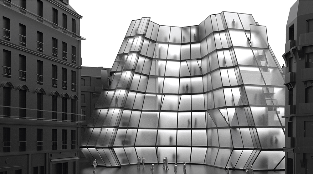 The first prize winner was also our student prize entry by Neno Videnovic from the Southern California Institute of Architecture in the USA. His Monumental Housing project focused on the fundamental structure of Hausmann-designed Paris. The project included 12 housing blocks designed to be dispersed throughout Paris as a new form of cultural monument, with each apartment clad in a perforated metal panel that replaces the human scale of the apartment with a unitless pattern that tends toward the sculptural. The proposal is quirky without being gimmicky, and the judges applaud its boldness.