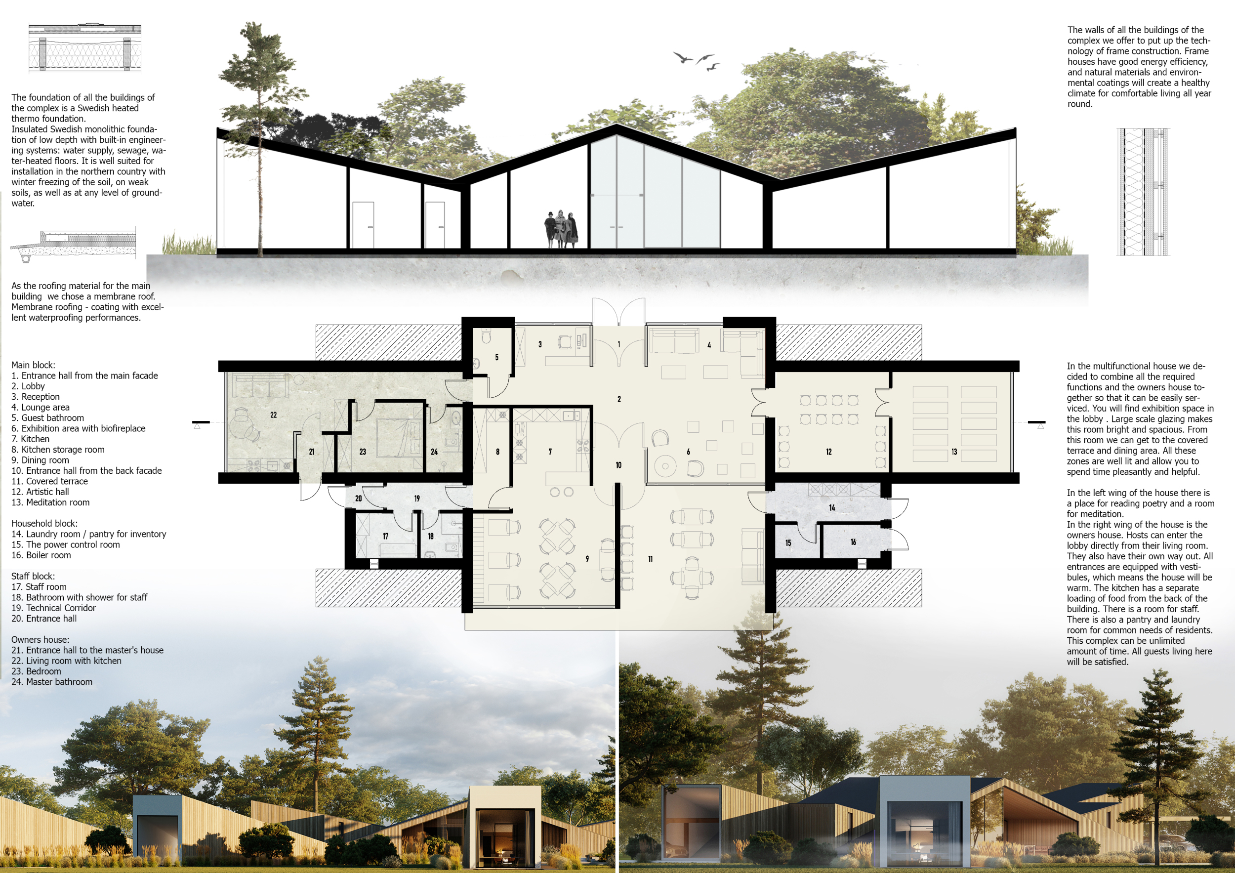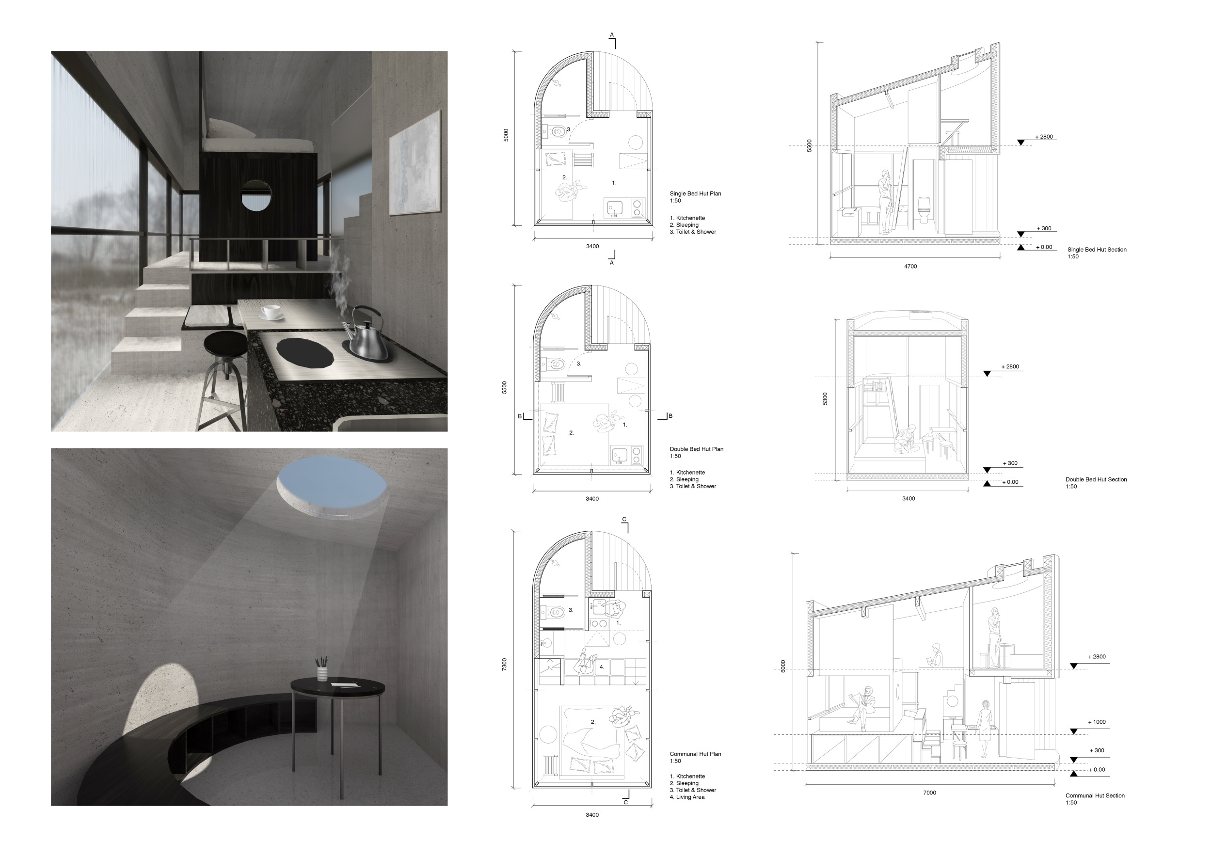 In line with the location of the site and the intended program, participants were asked to consider strong connections with nature, the use of sustainable materials, and simple, cost-effective methods of construction.
