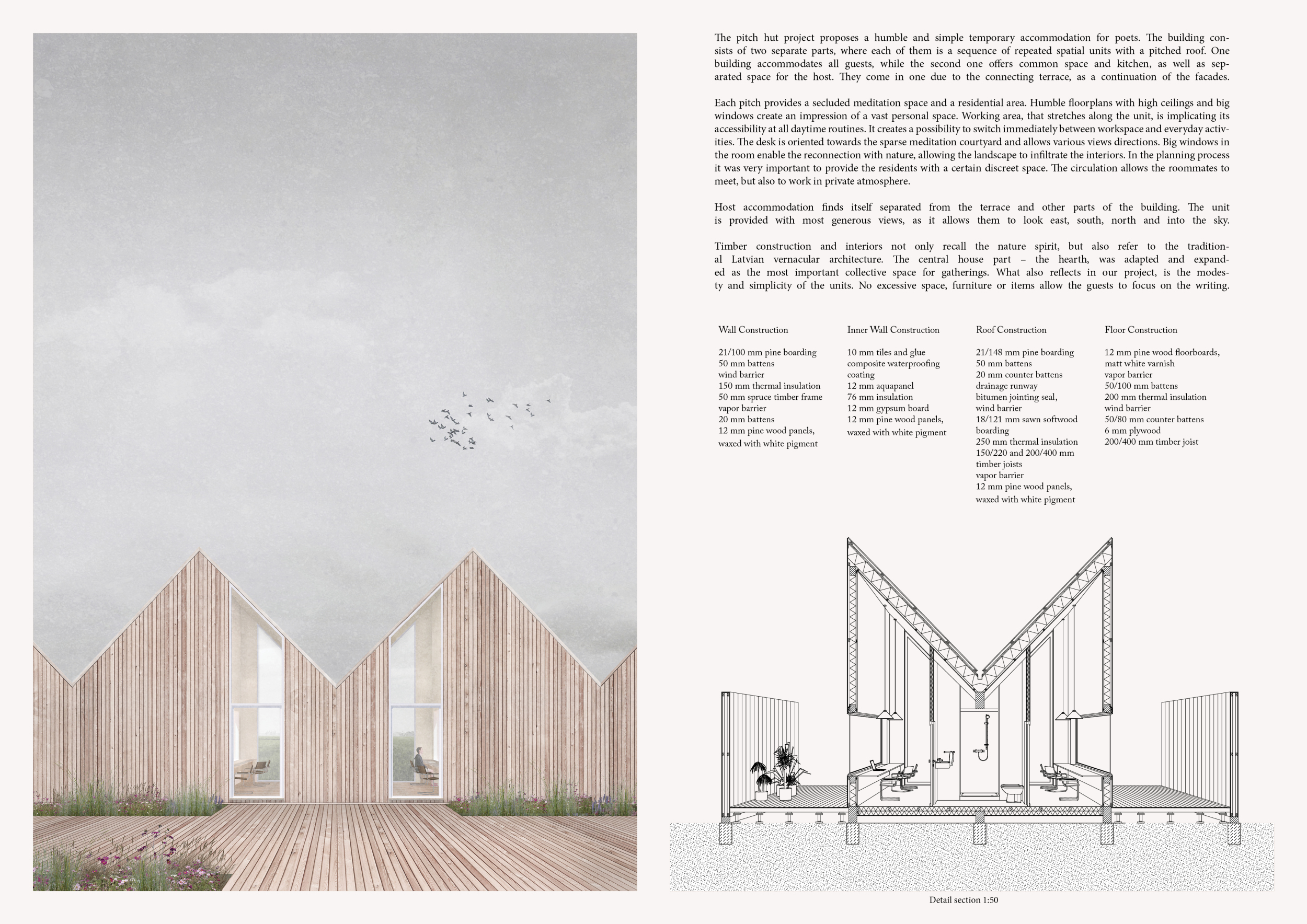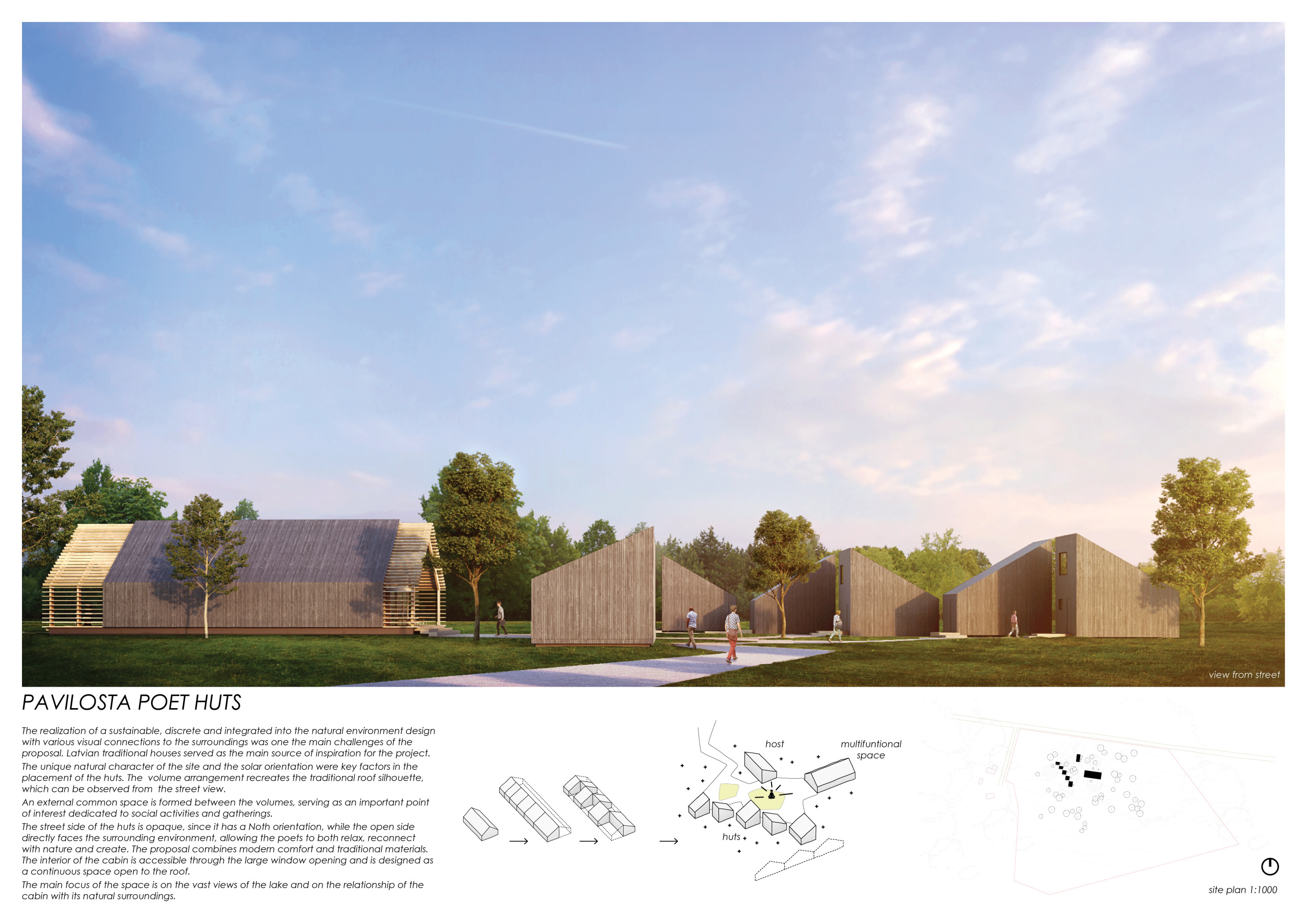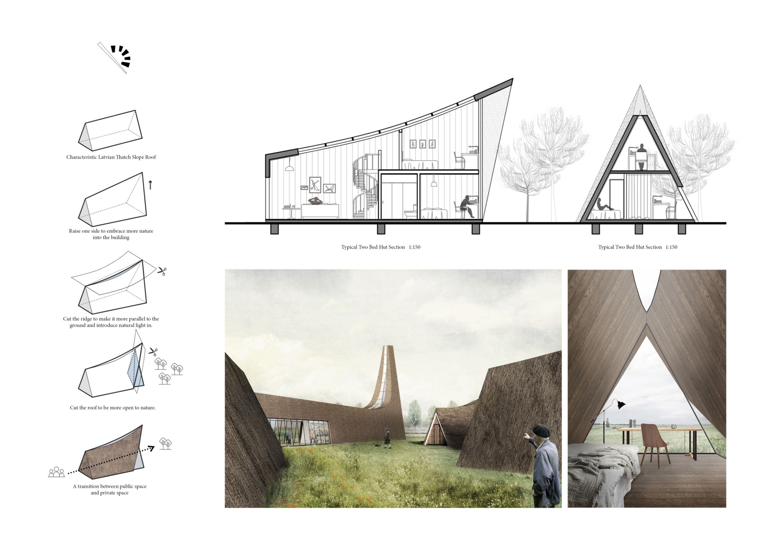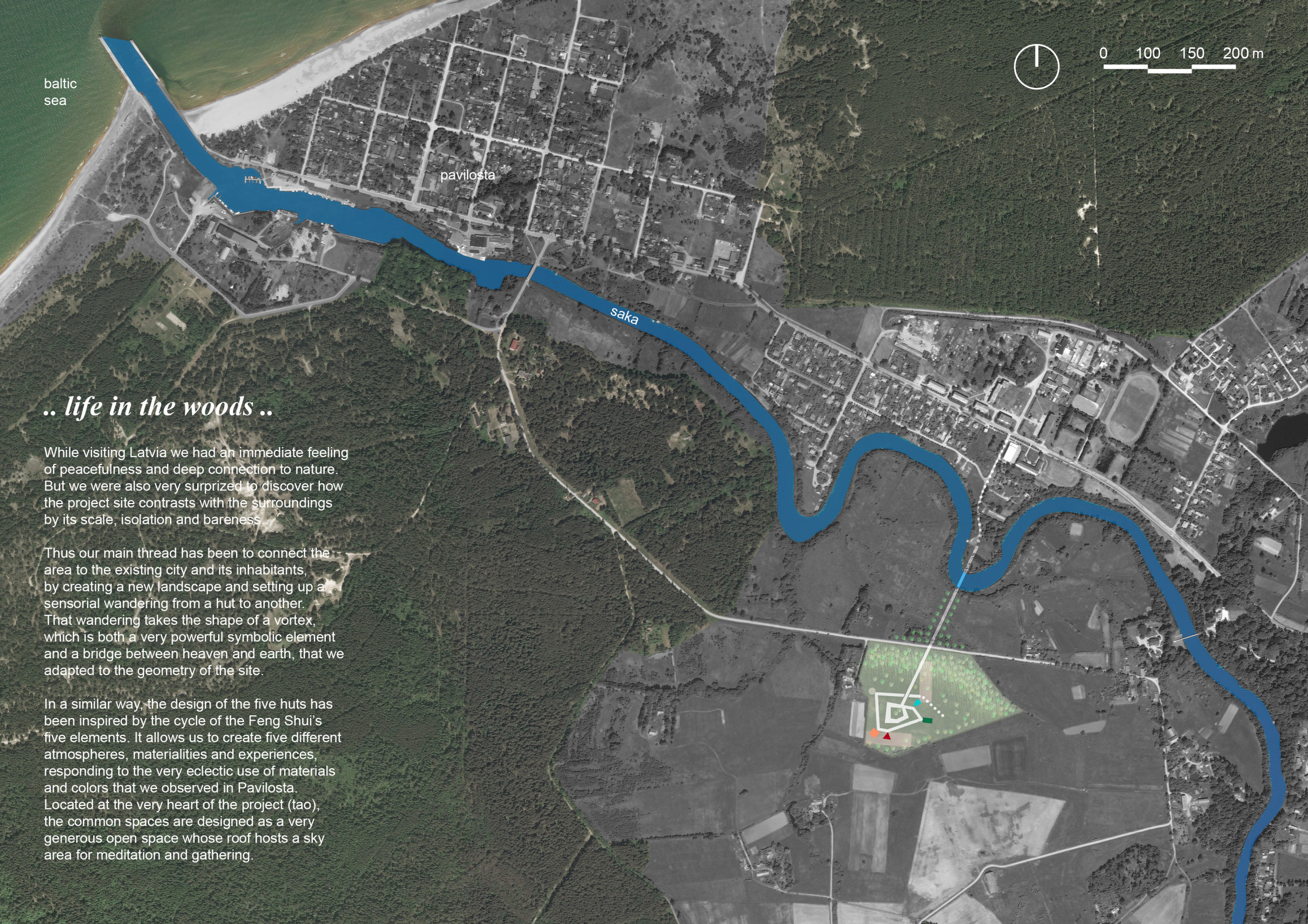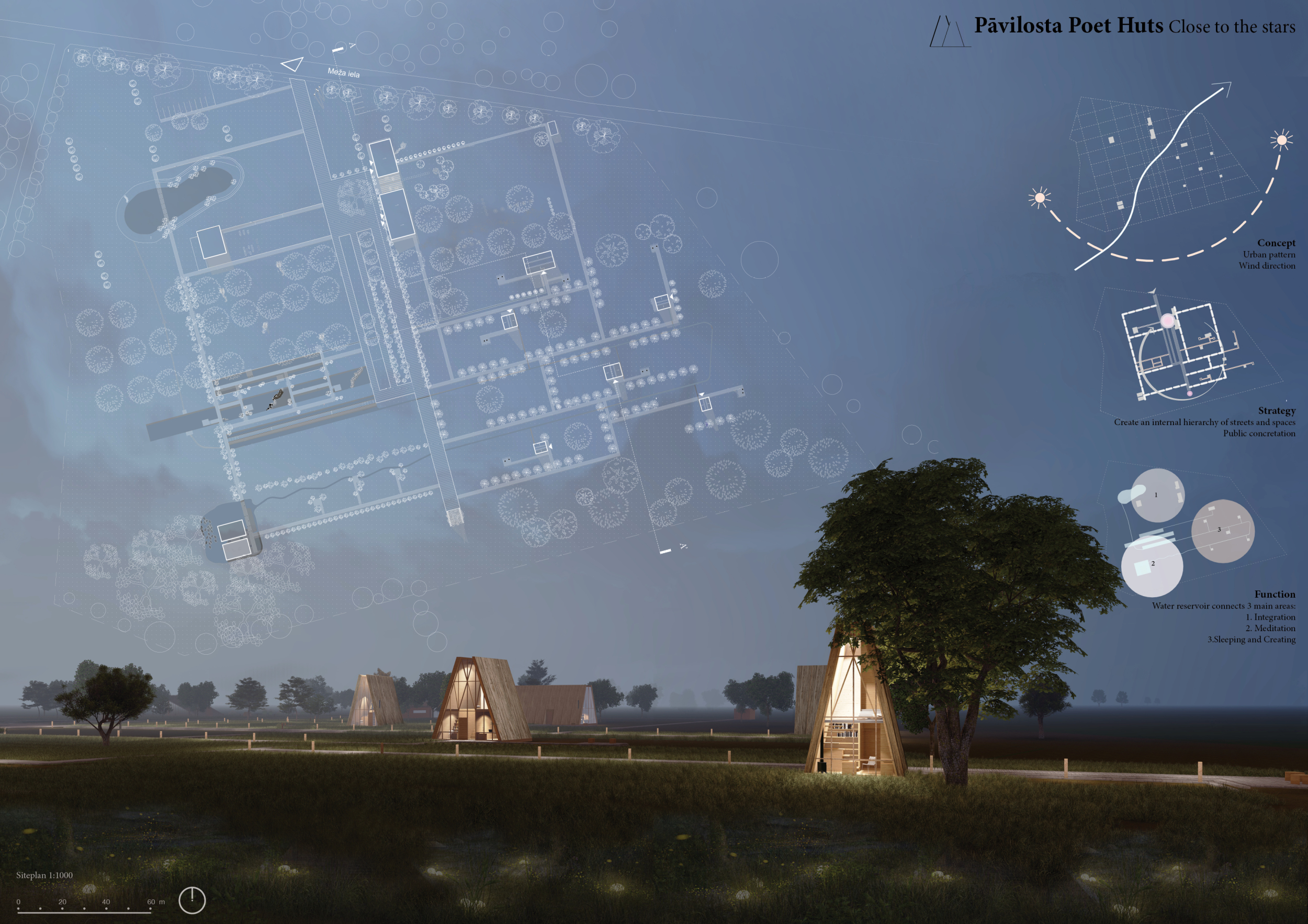 The Pavilosta Poet Huts competition called on designers to submit proposals for a writers community in the small coastal fishing village of Pāvilosta, Latvia, historically a port serving the nearby city of Liepāja. Pāvilosta is defined by its beaches and local fishing industry - visitors often make this a destination to spend time in nature and fresh air.