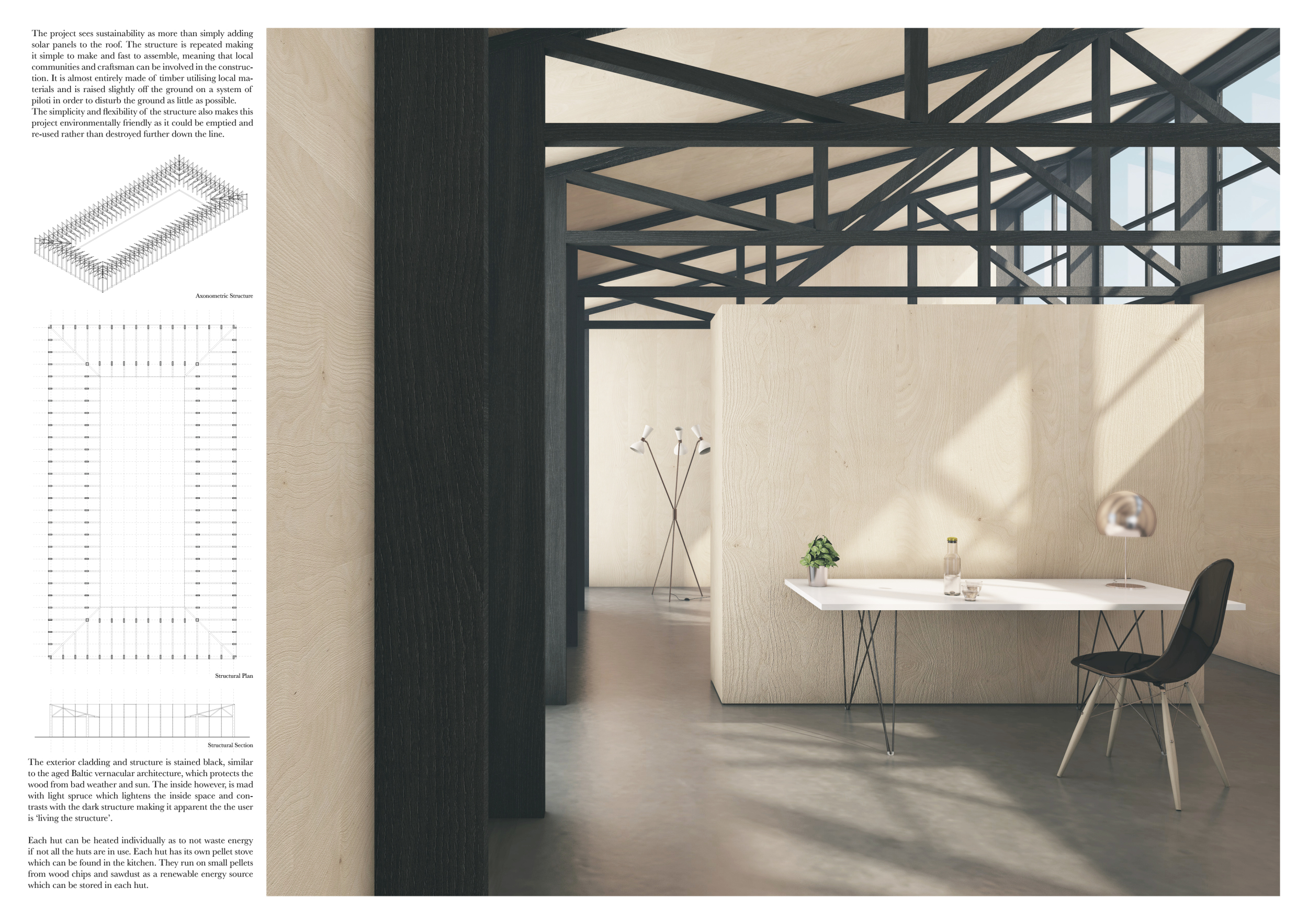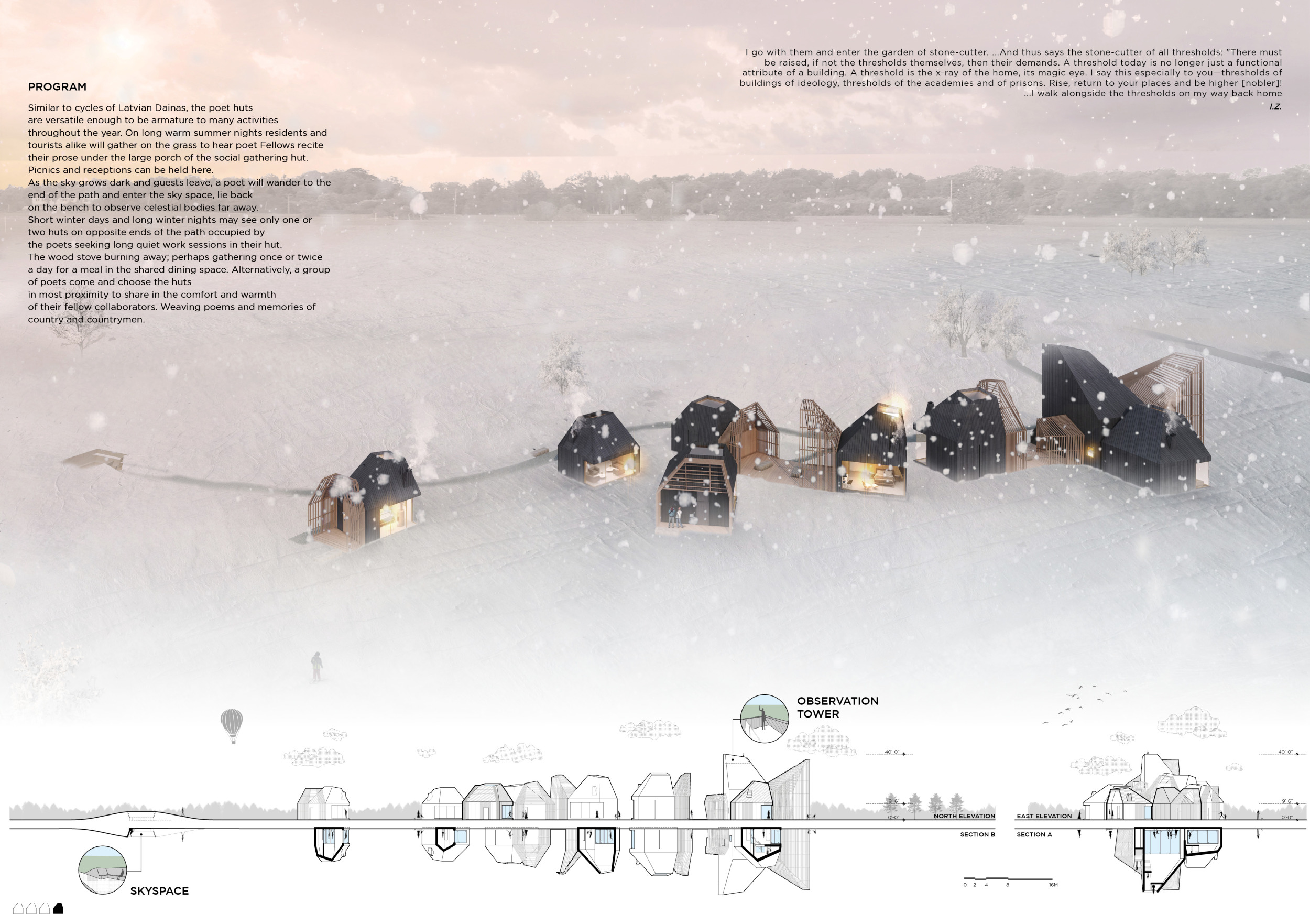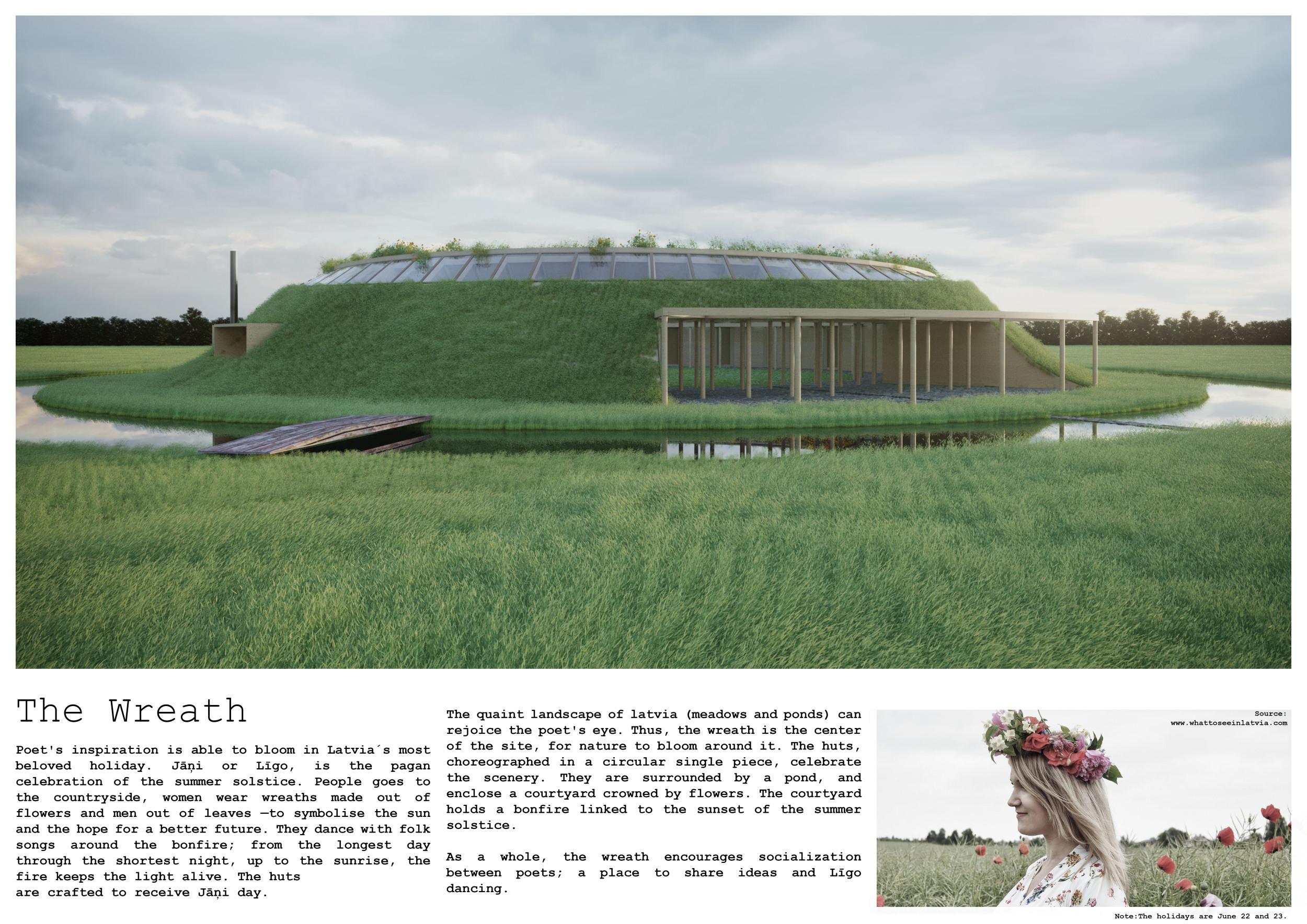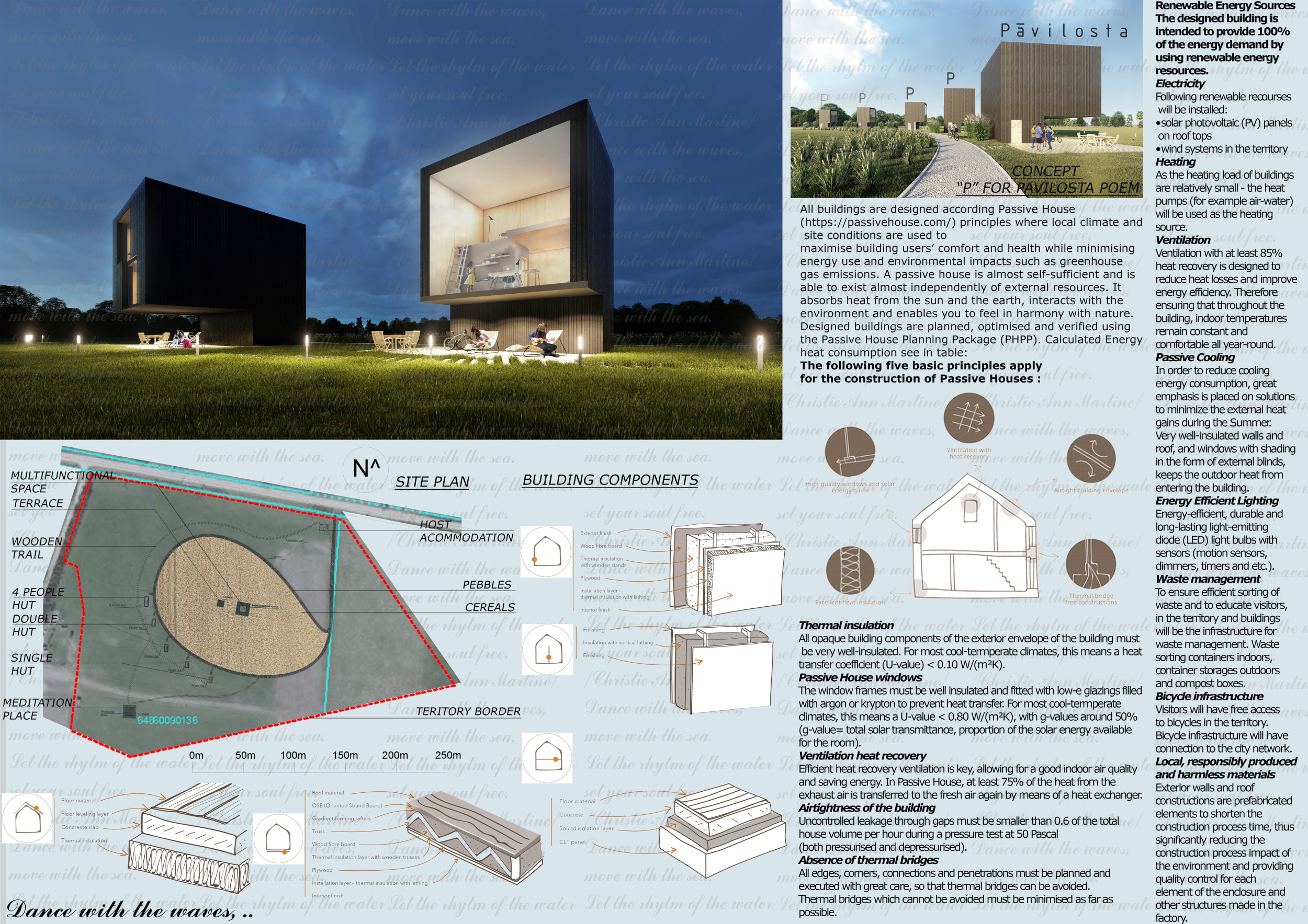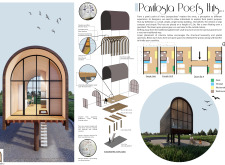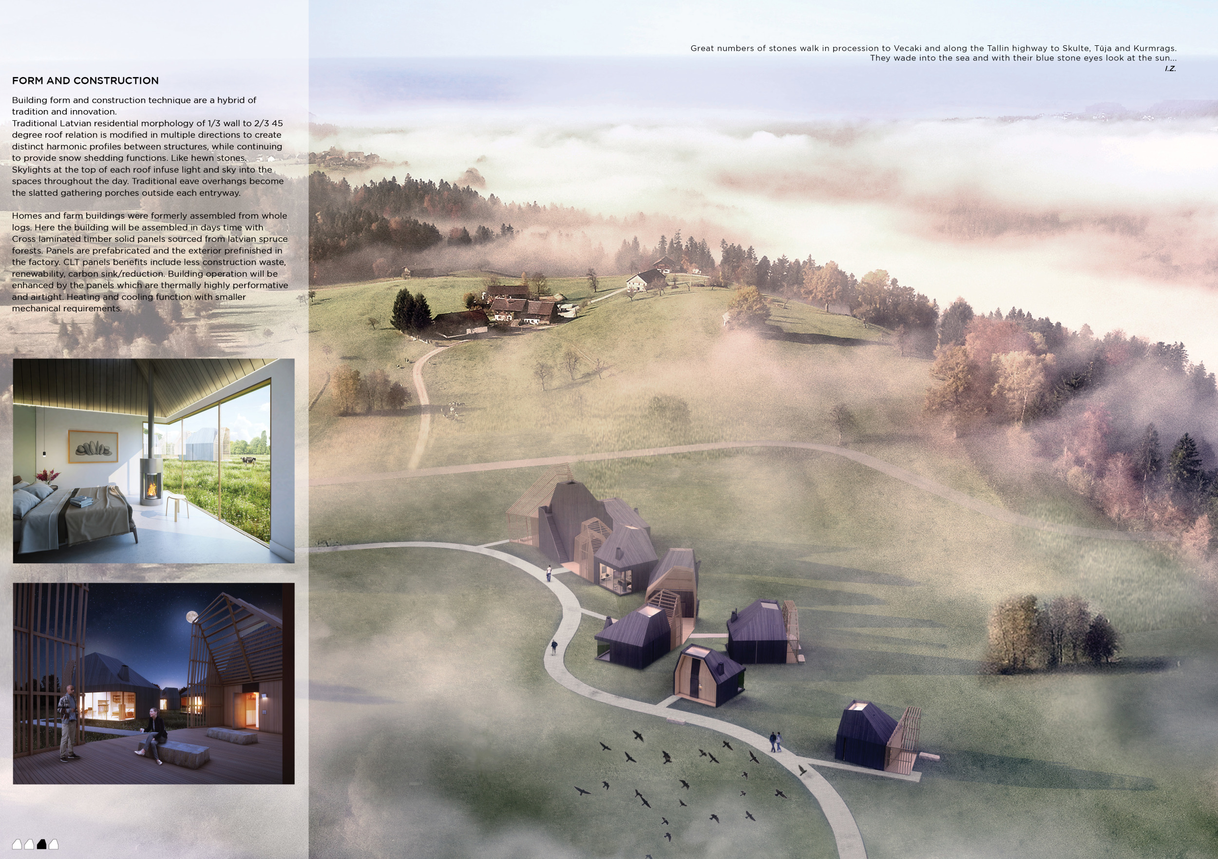 The Pavilosta Poet Huts competition called on designers to submit proposals for a writers community in the small coastal fishing village of Pāvilosta, Latvia, historically a port serving the nearby city of Liepāja. Pāvilosta is defined by its beaches and local fishing industry - visitors often make this a destination to spend time in nature and fresh air.