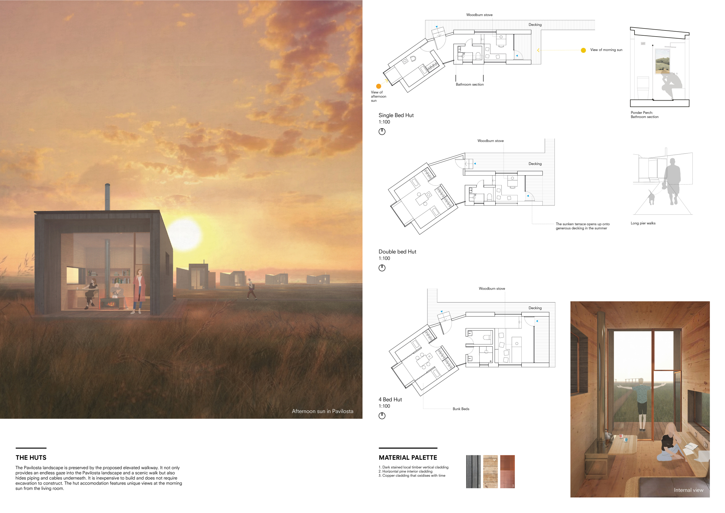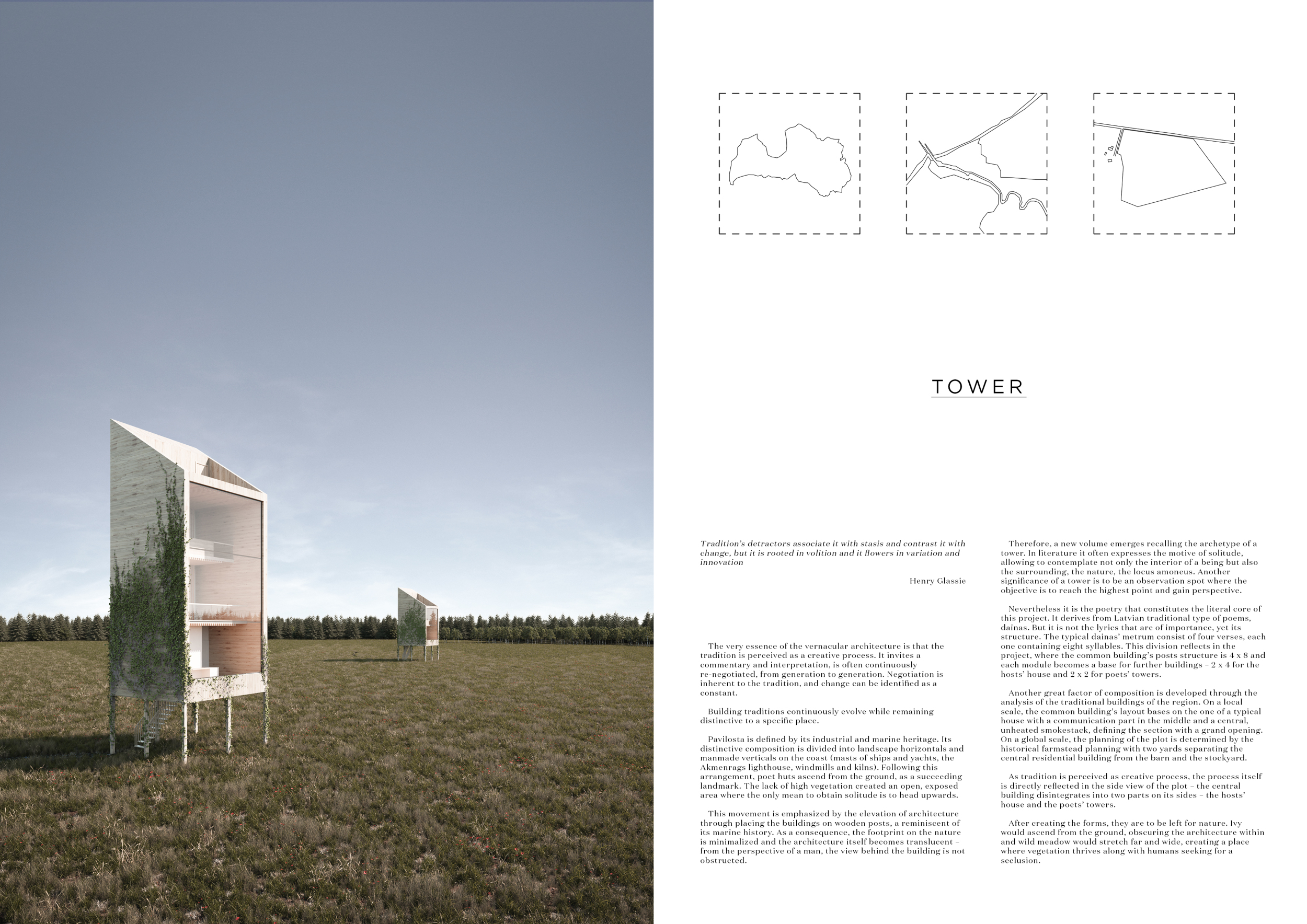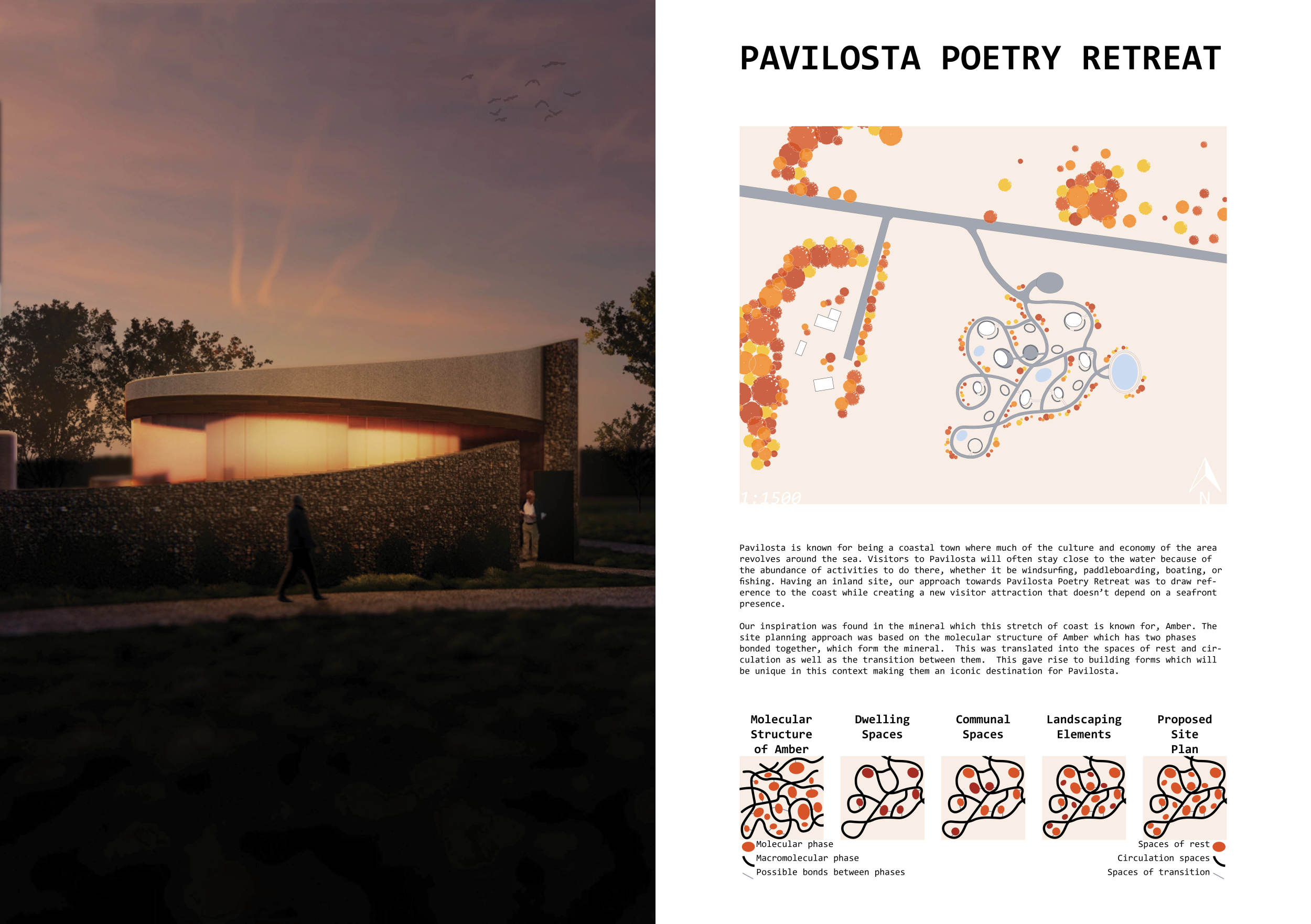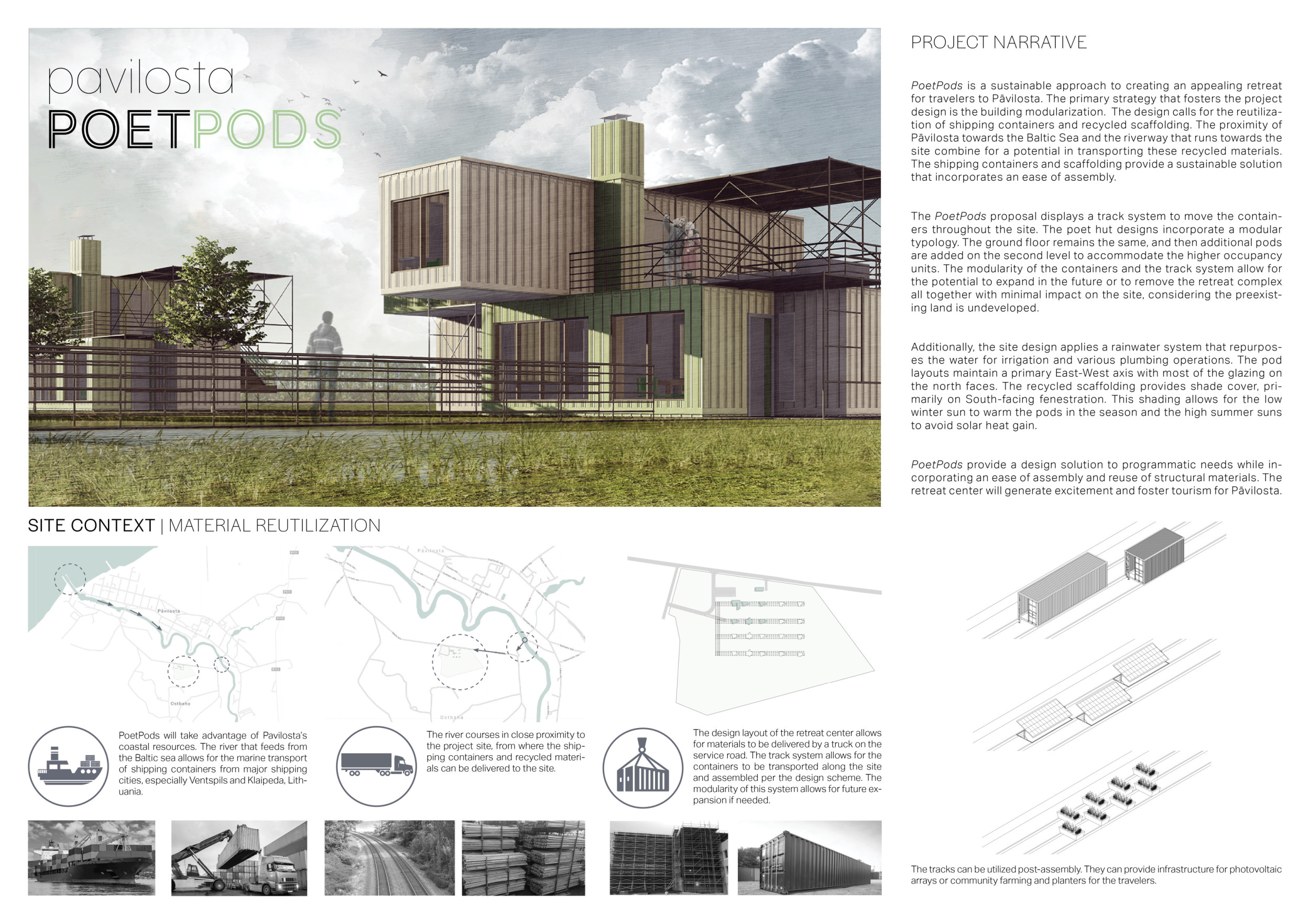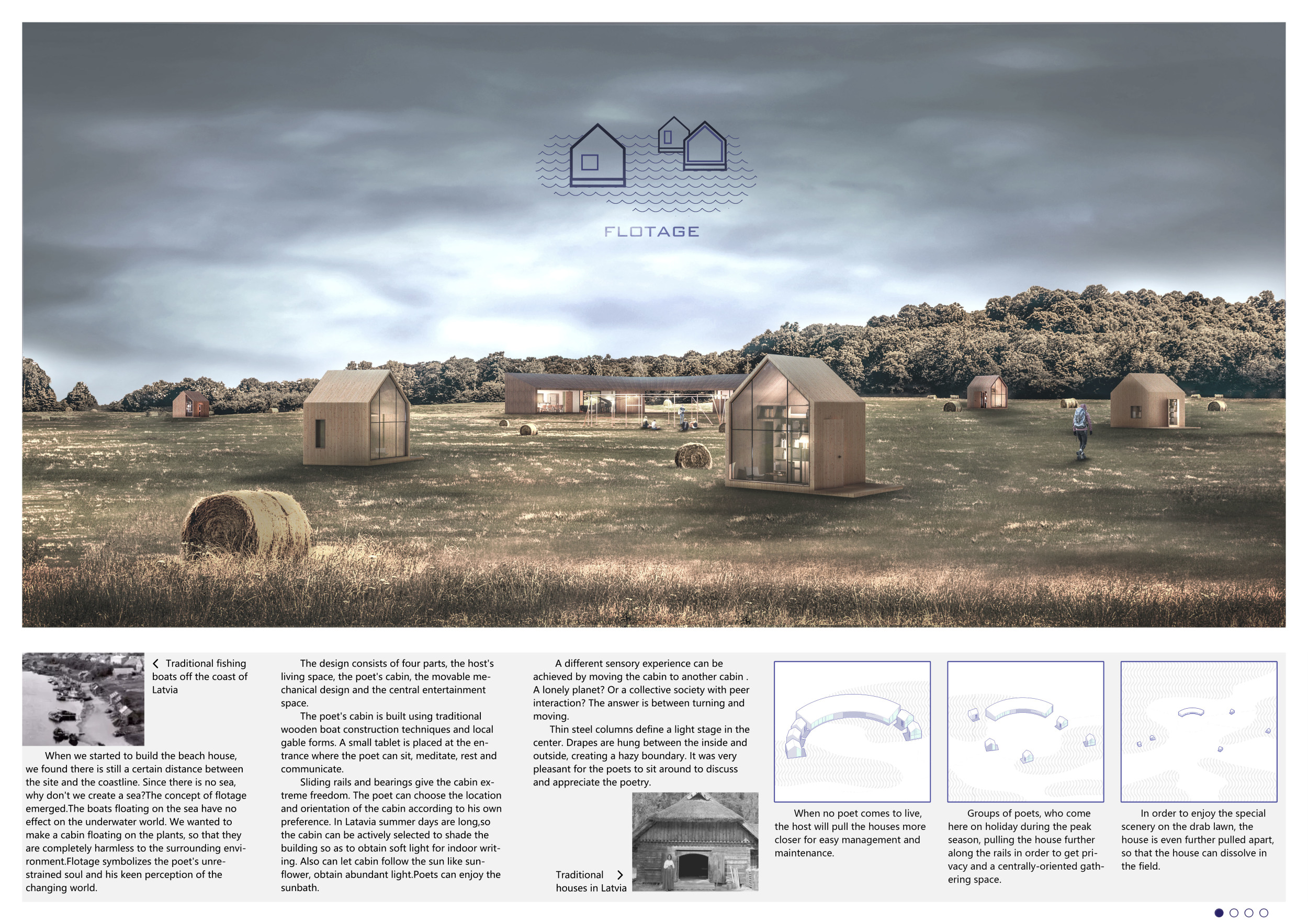 The Pavilosta Poet Huts competition called on designers to submit proposals for a writers community in the small coastal fishing village of Pāvilosta, Latvia, historically a port serving the nearby city of Liepāja. Pāvilosta is defined by its beaches and local fishing industry - visitors often make this a destination to spend time in nature and fresh air.