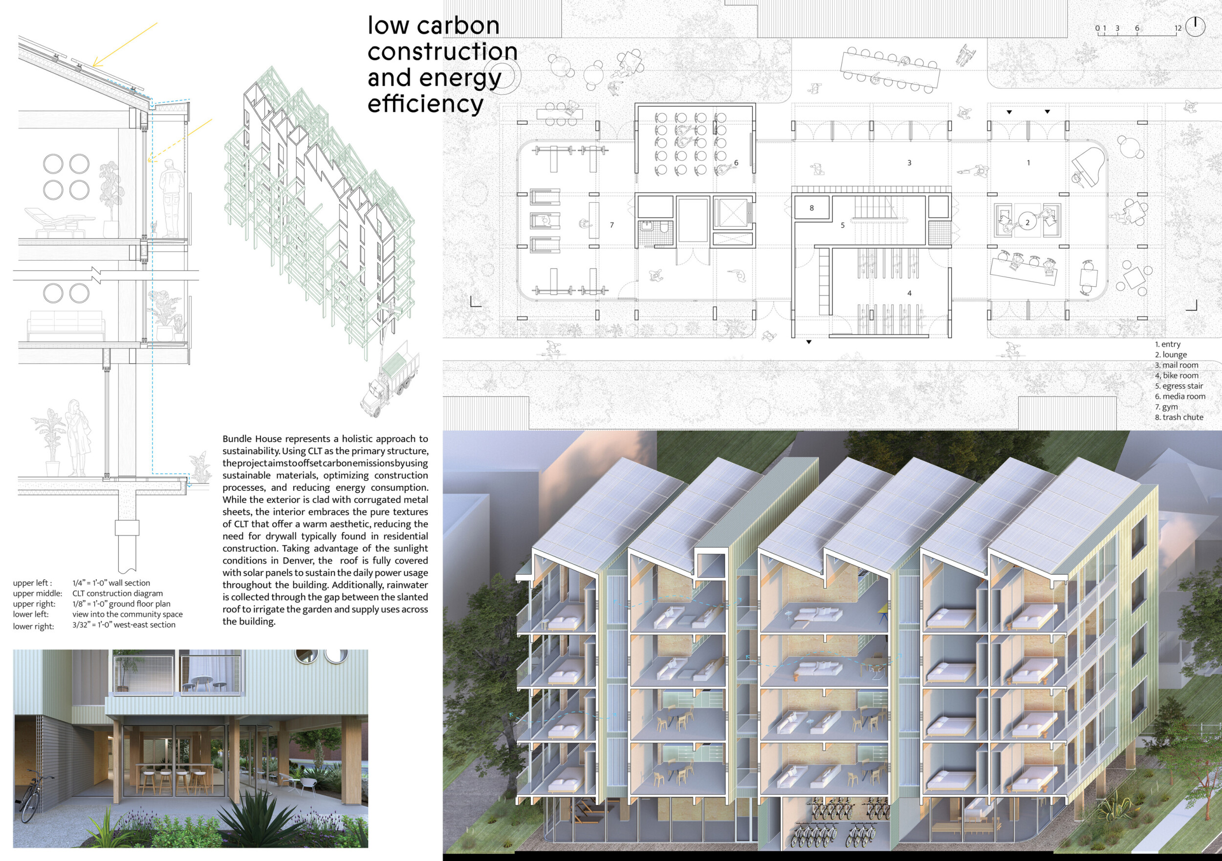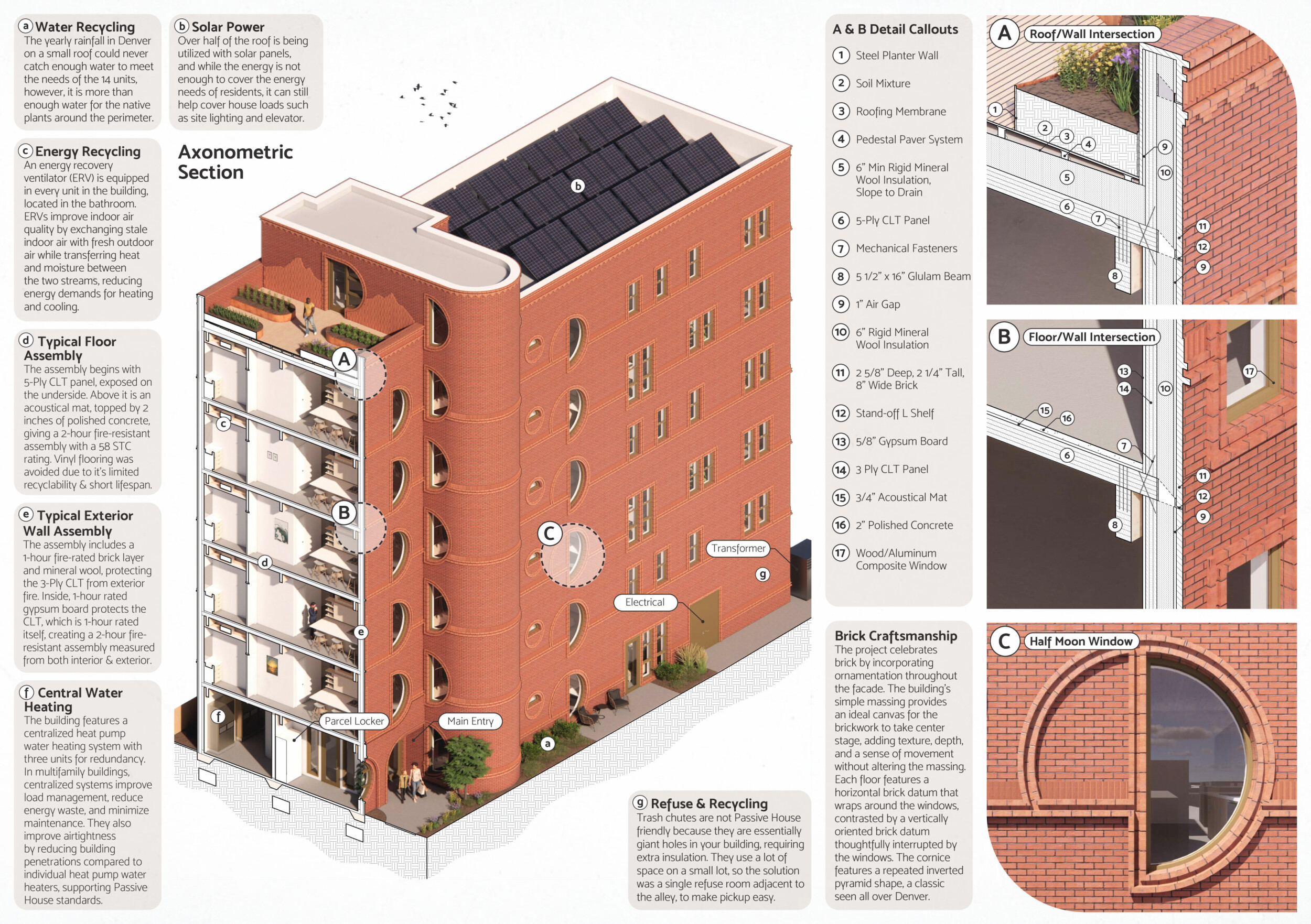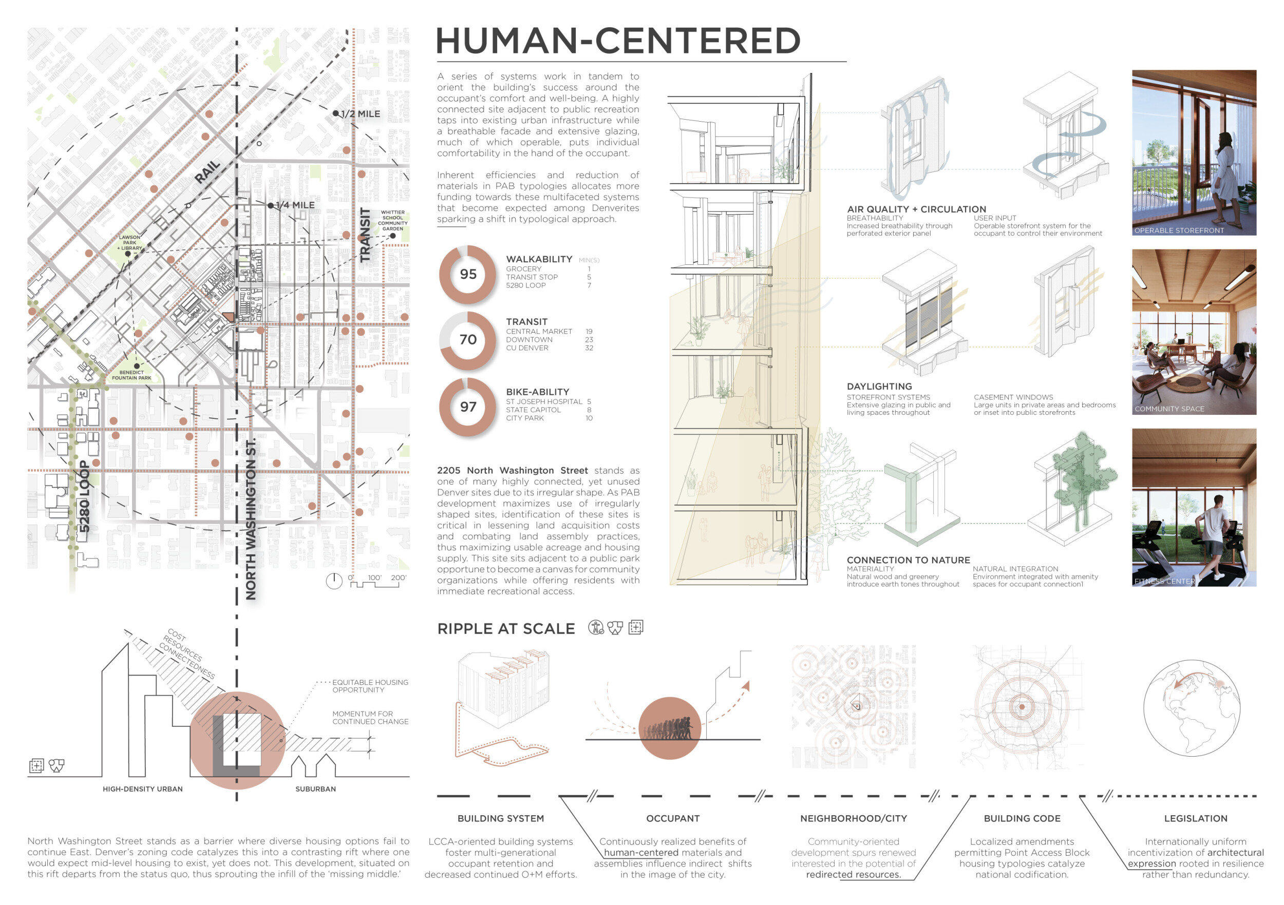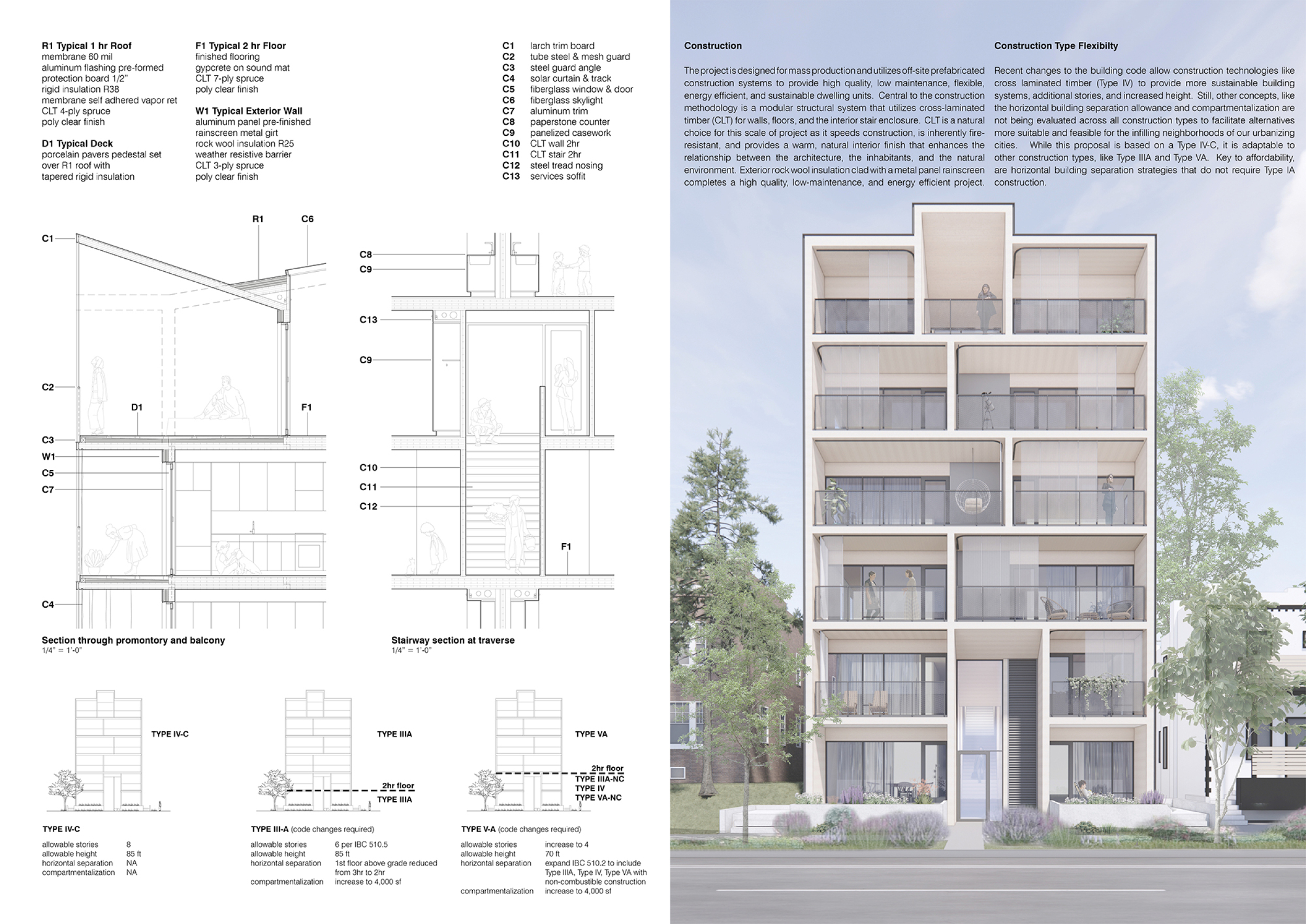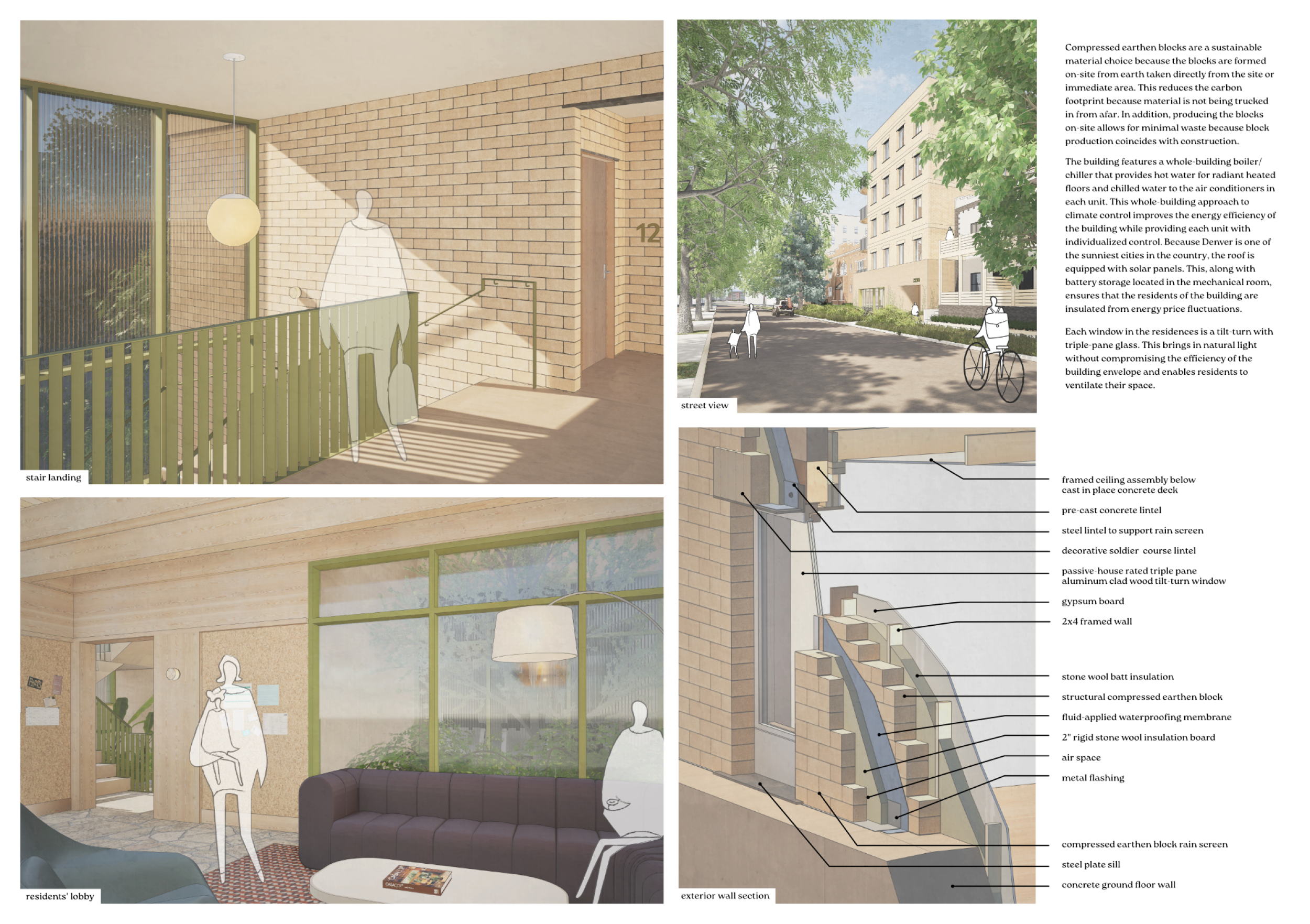 Red Rocks Rising is a modular, multifamily housing project integrating Passive House principles for energy efficiency and occupant comfort. The design utilizes prefabricated units to minimize waste and optimize construction time. A central atrium and external stairways enhance natural ventilation and daylight access, reducing reliance on mechanical systems. High-performance glazing, thermal bridge elimination, and airtight enclosures improve insulation and indoor climate control.