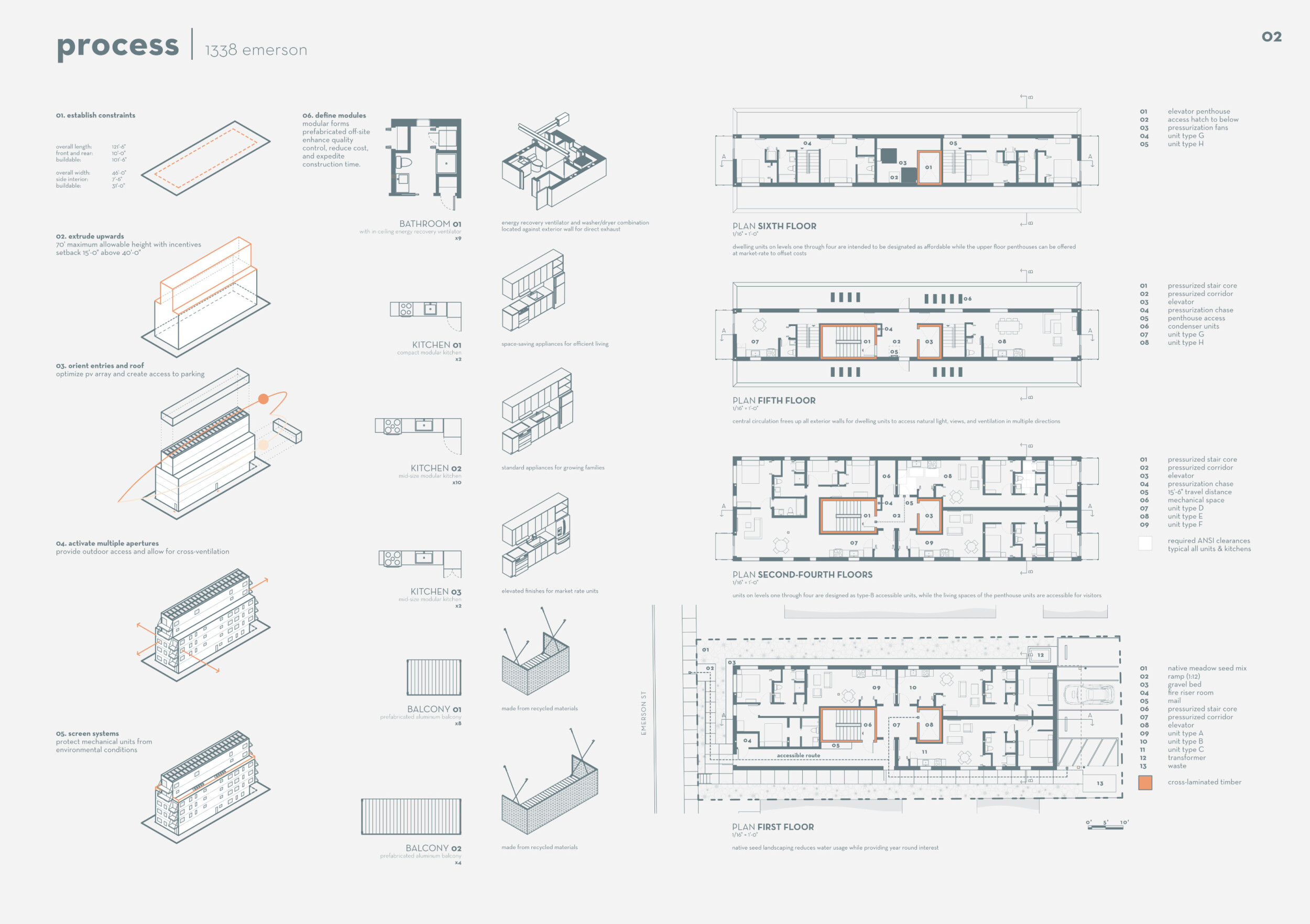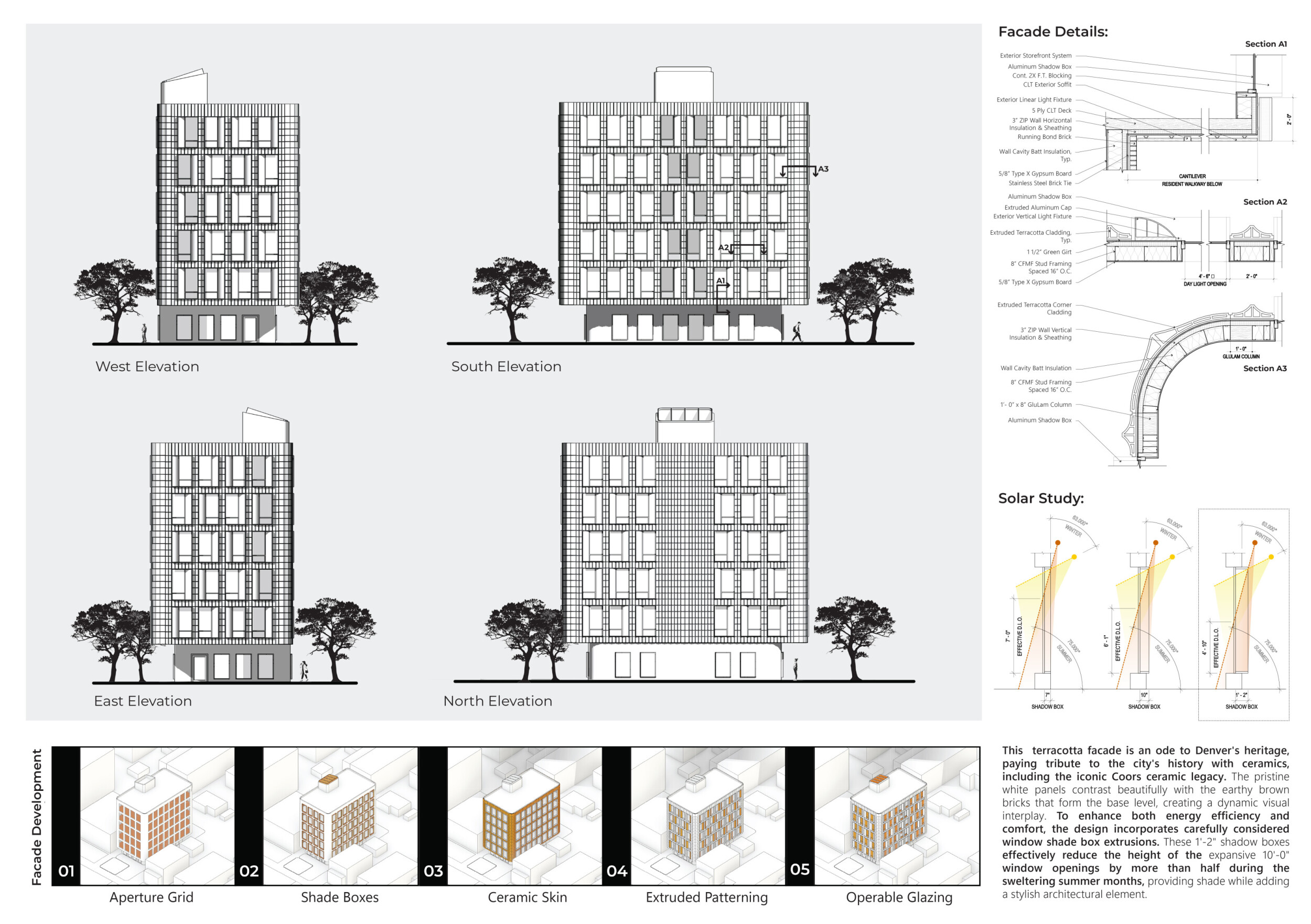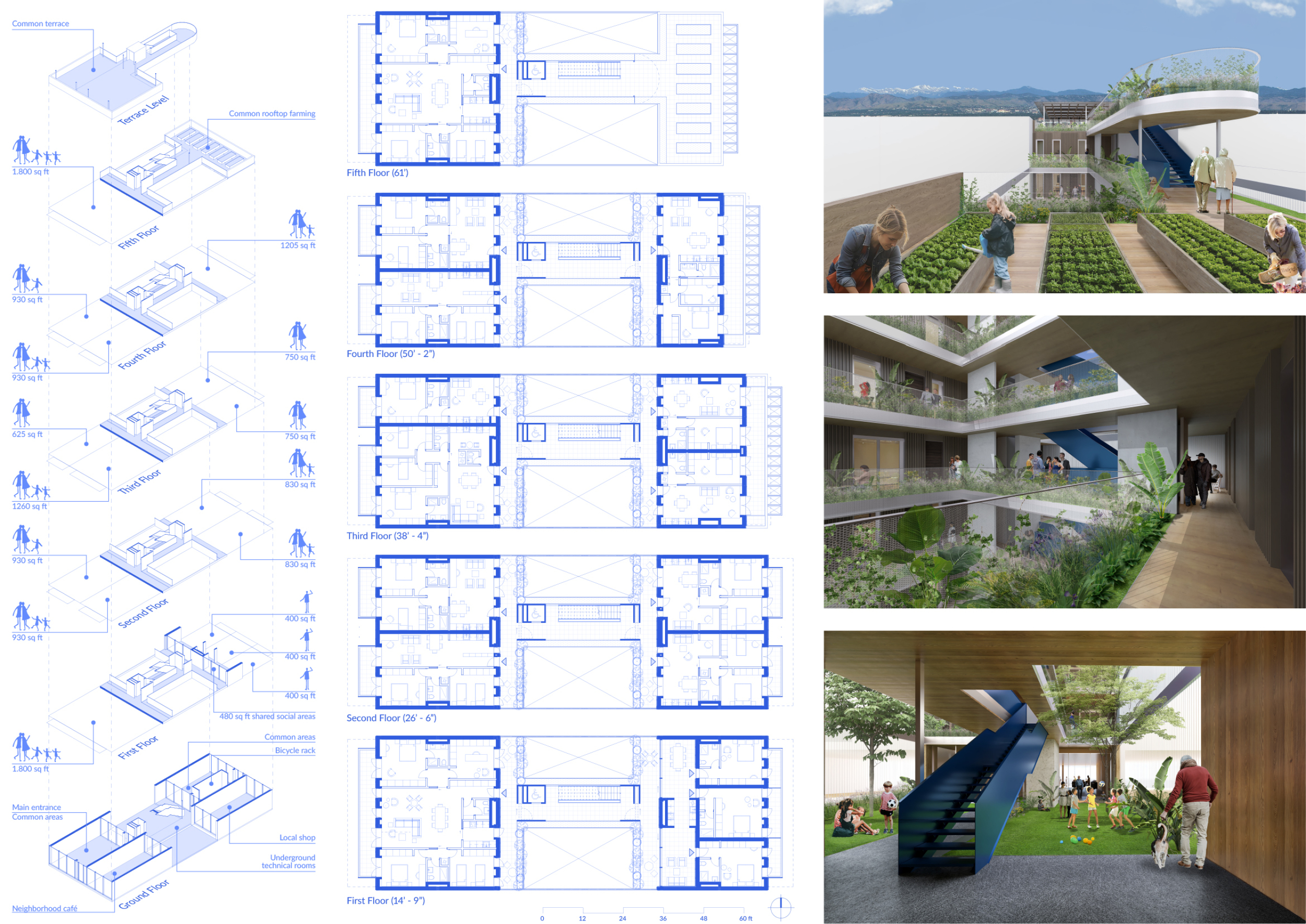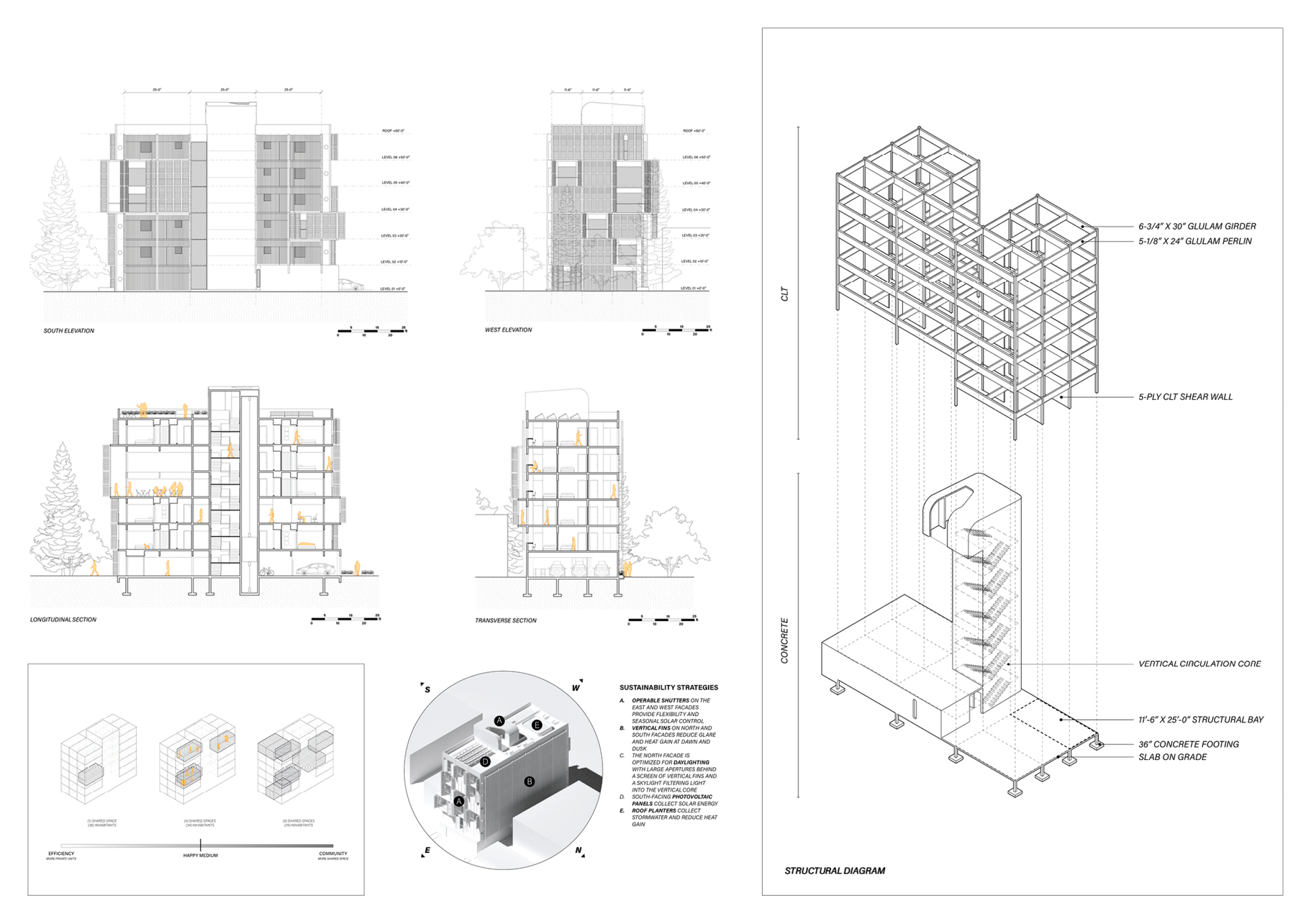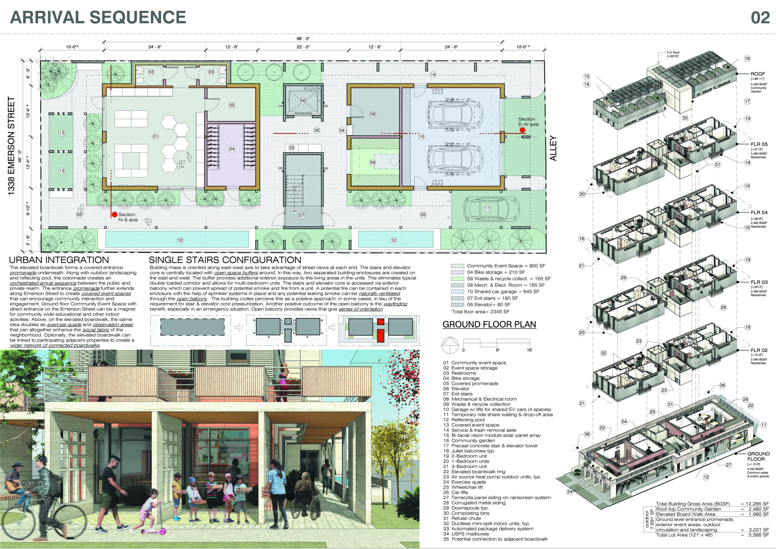 Red Rocks Rising is a modular, multifamily housing project integrating Passive House principles for energy efficiency and occupant comfort. The design utilizes prefabricated units to minimize waste and optimize construction time. A central atrium and external stairways enhance natural ventilation and daylight access, reducing reliance on mechanical systems. High-performance glazing, thermal bridge elimination, and airtight enclosures improve insulation and indoor climate control.