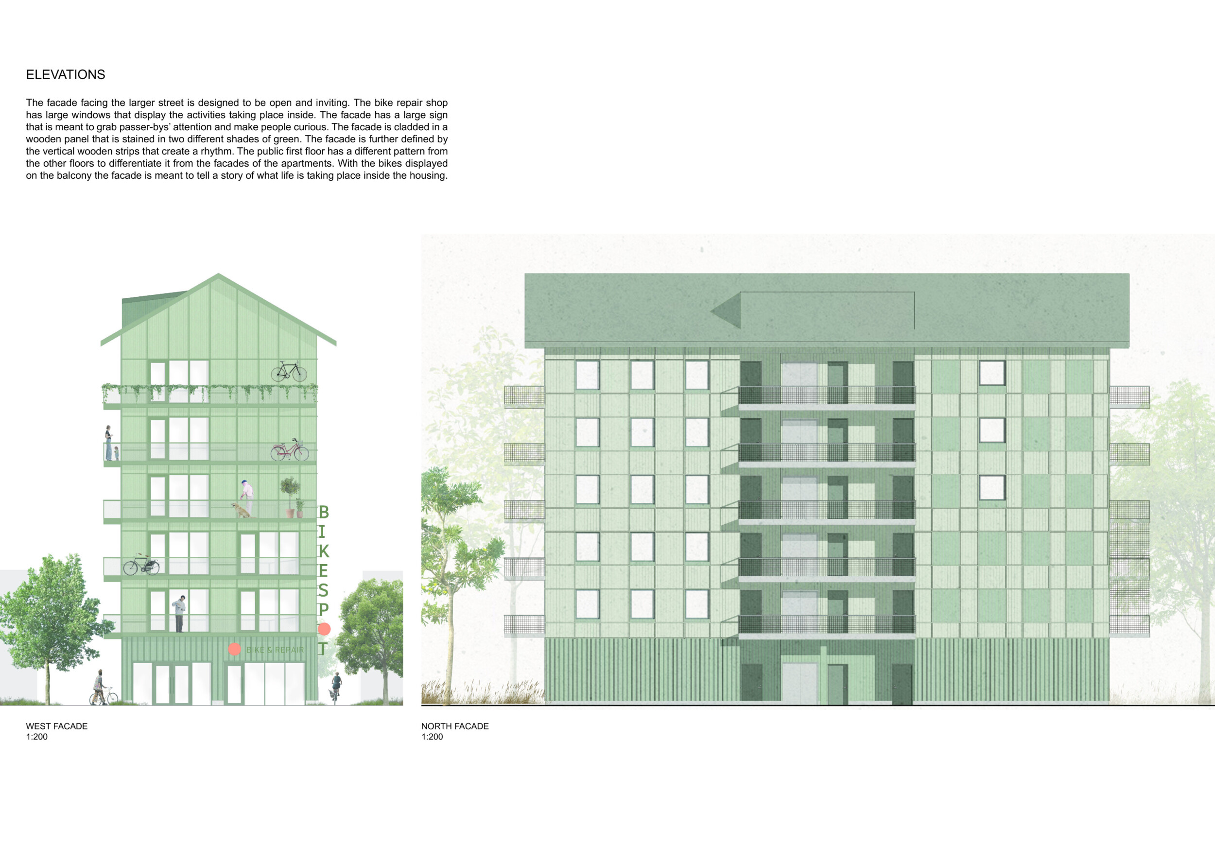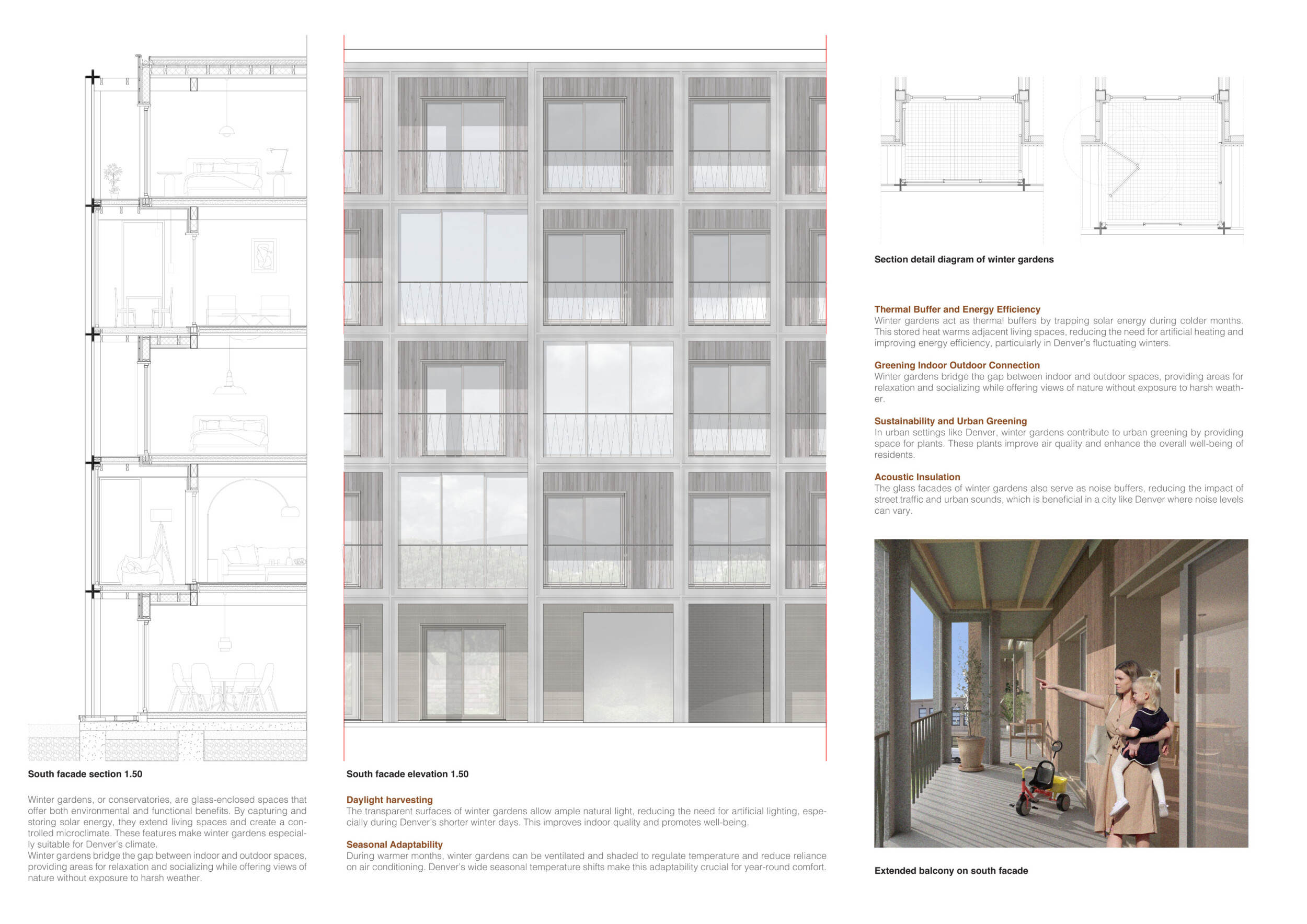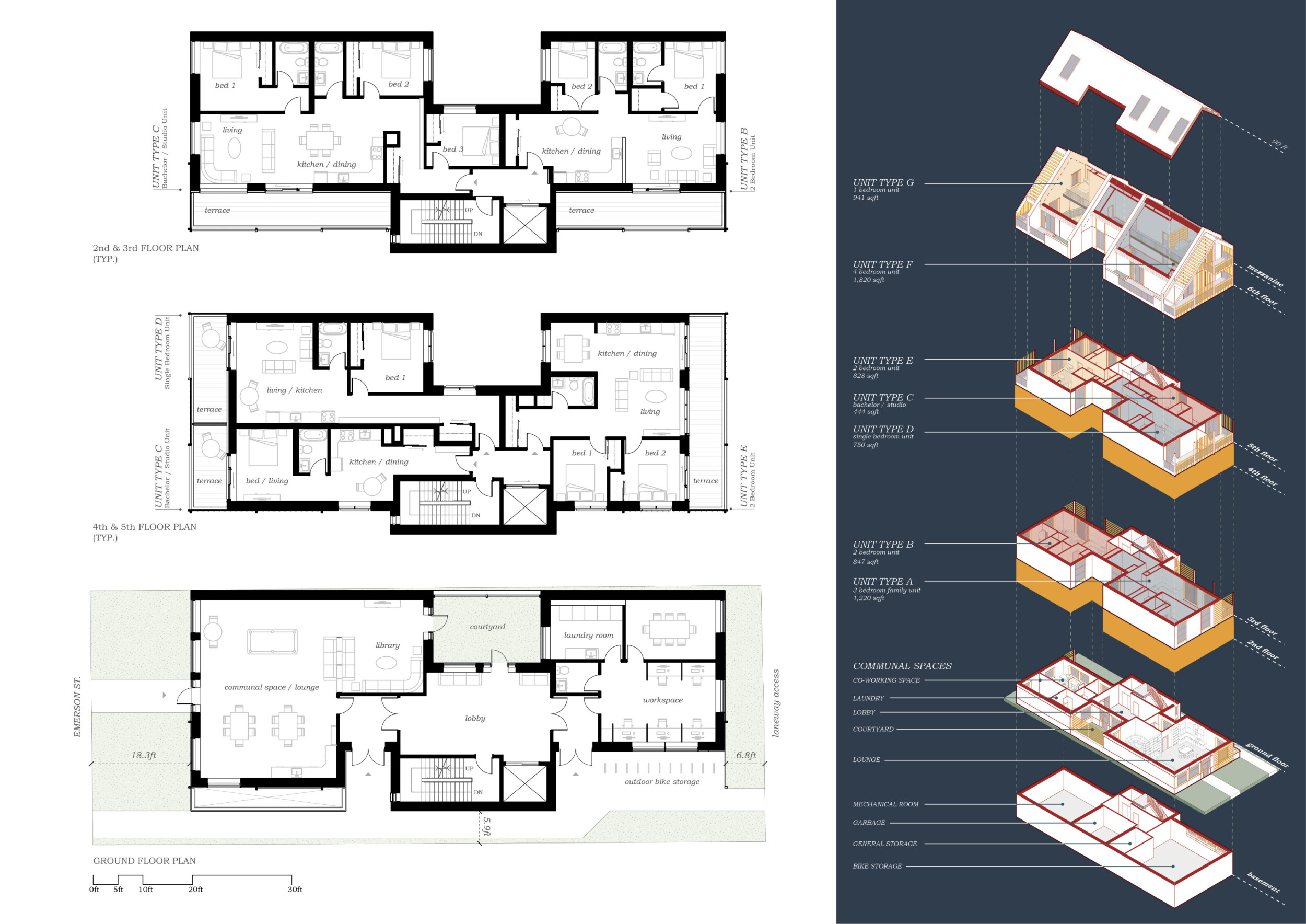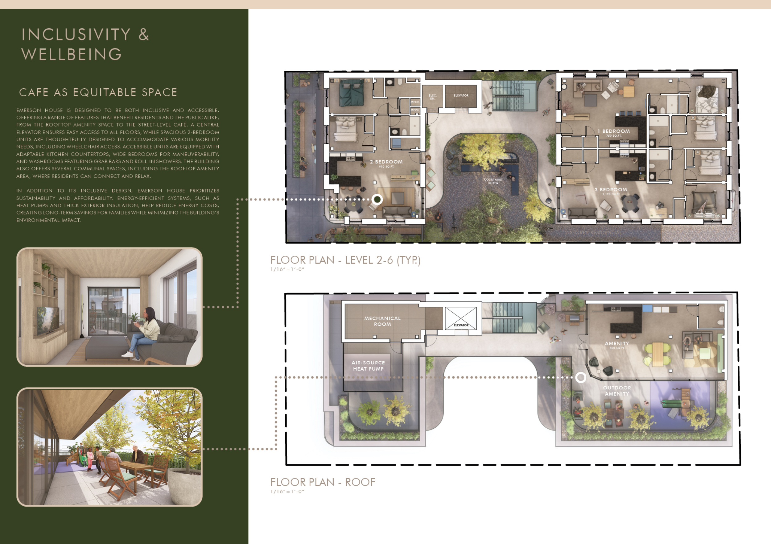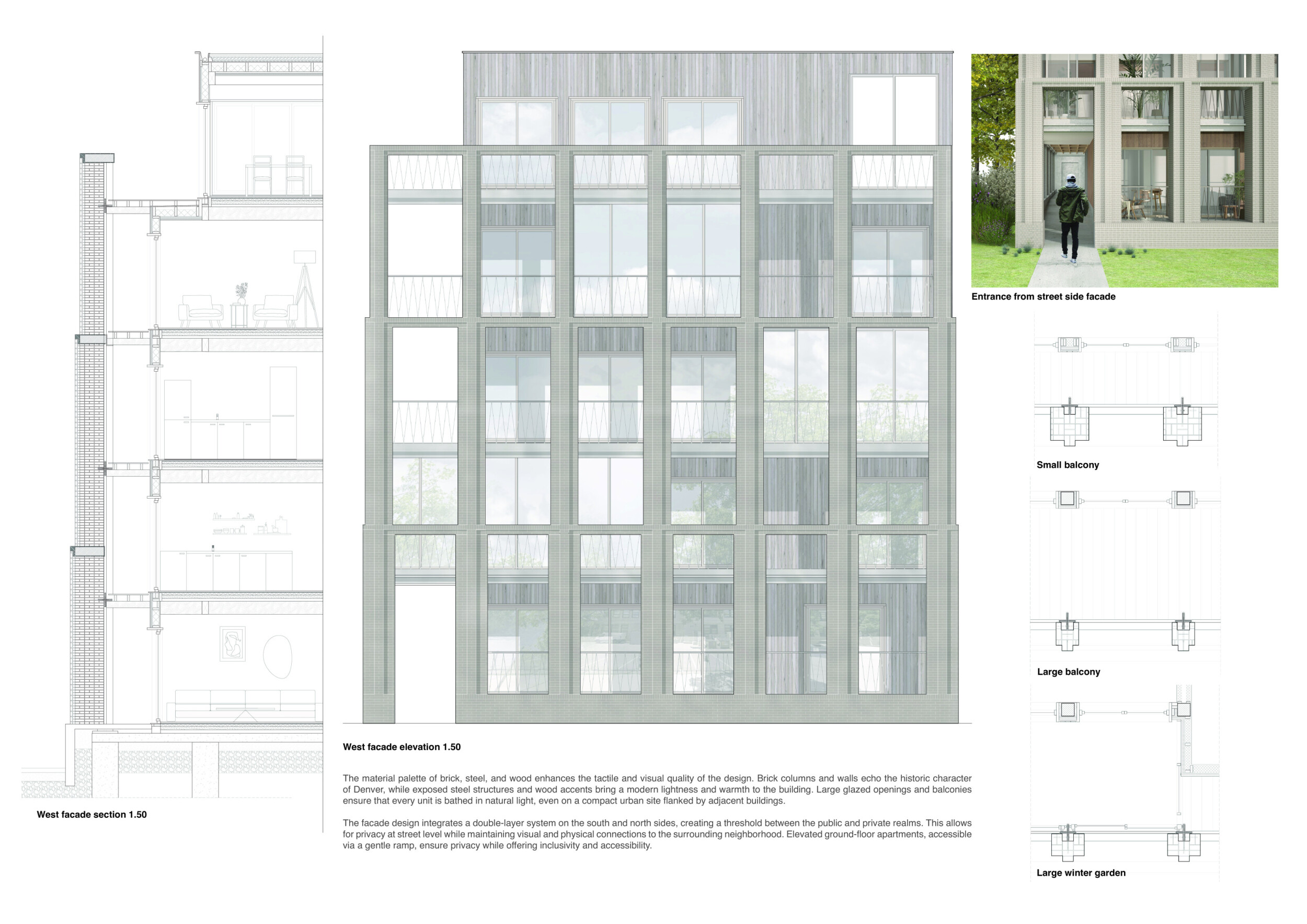 Detached Living is designed to enhance adaptability, sustainability, and urban integration. The building features a modular unit layout, organized around a central atrium that facilitates natural ventilation. The facade consists of movable louvers and sliding glass doors, allowing residents to regulate shading, airflow, and privacy. Prefabricated concrete and maple wood are employed for durability, thermal efficiency, and sustainability.