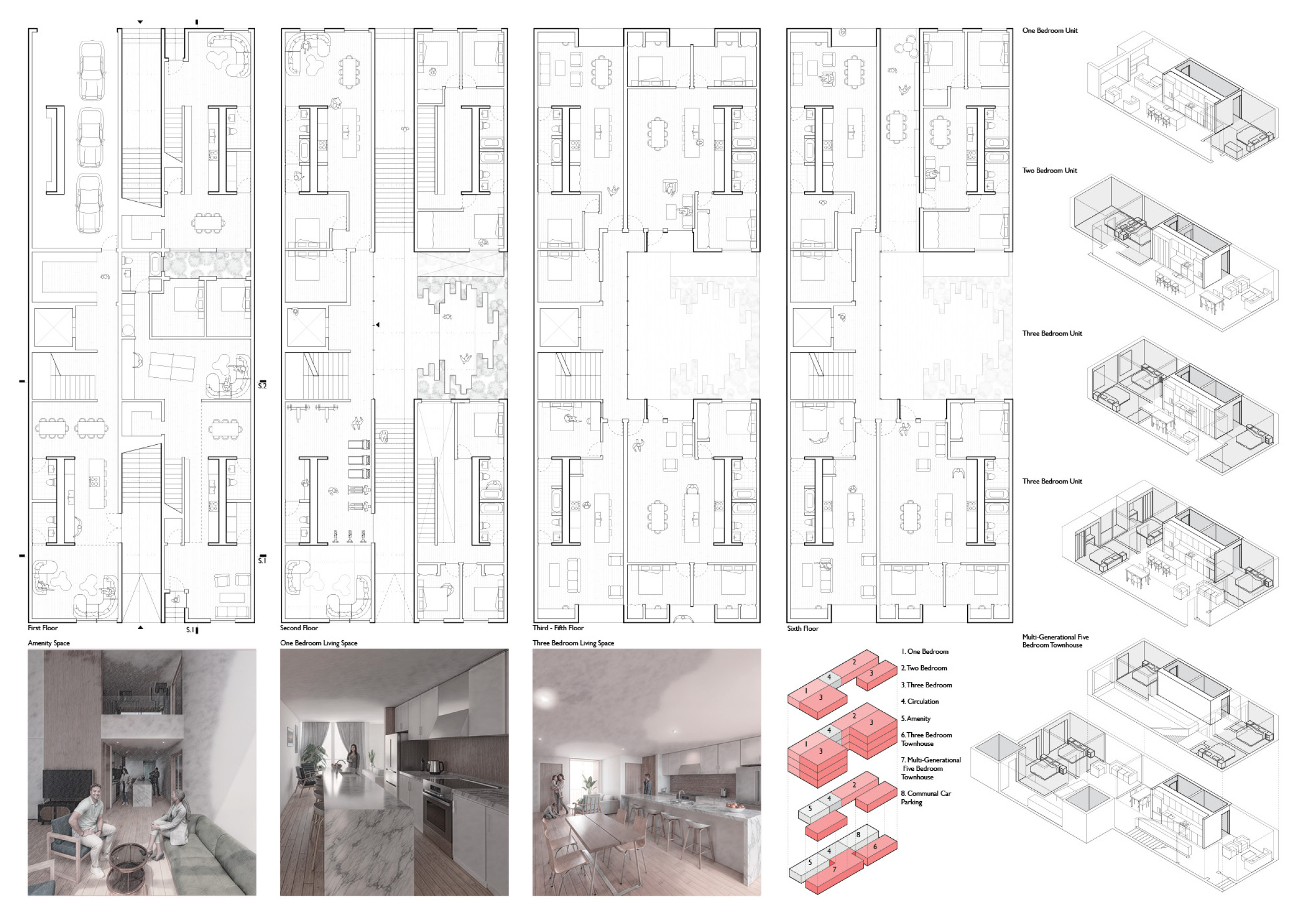 This international competition challenged architects, urban designers, and policymakers to rethink the Point Access Block—a common mid-rise housing typology found in cities worldwide. Participants were invited to propose innovative and adaptable designs that improve spatial efficiency, enhance community interaction, and promote sustainable urban living. The goal was to explore how architecture can address contemporary housing challenges, offering solutions that balance density, livability, and environmental responsibility.
