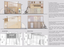 The project is bold in its presentation, visual content and use of color. It is positively striking to the eye and offers a strong variation from the typical project submission. The benefit of a four-sheet competition submission for such a small-scale project allows some flexibility for the information conveyed - there are ways to provide the content needed for a jury to evaluate the proposal without being busy, and this presentation does just that.