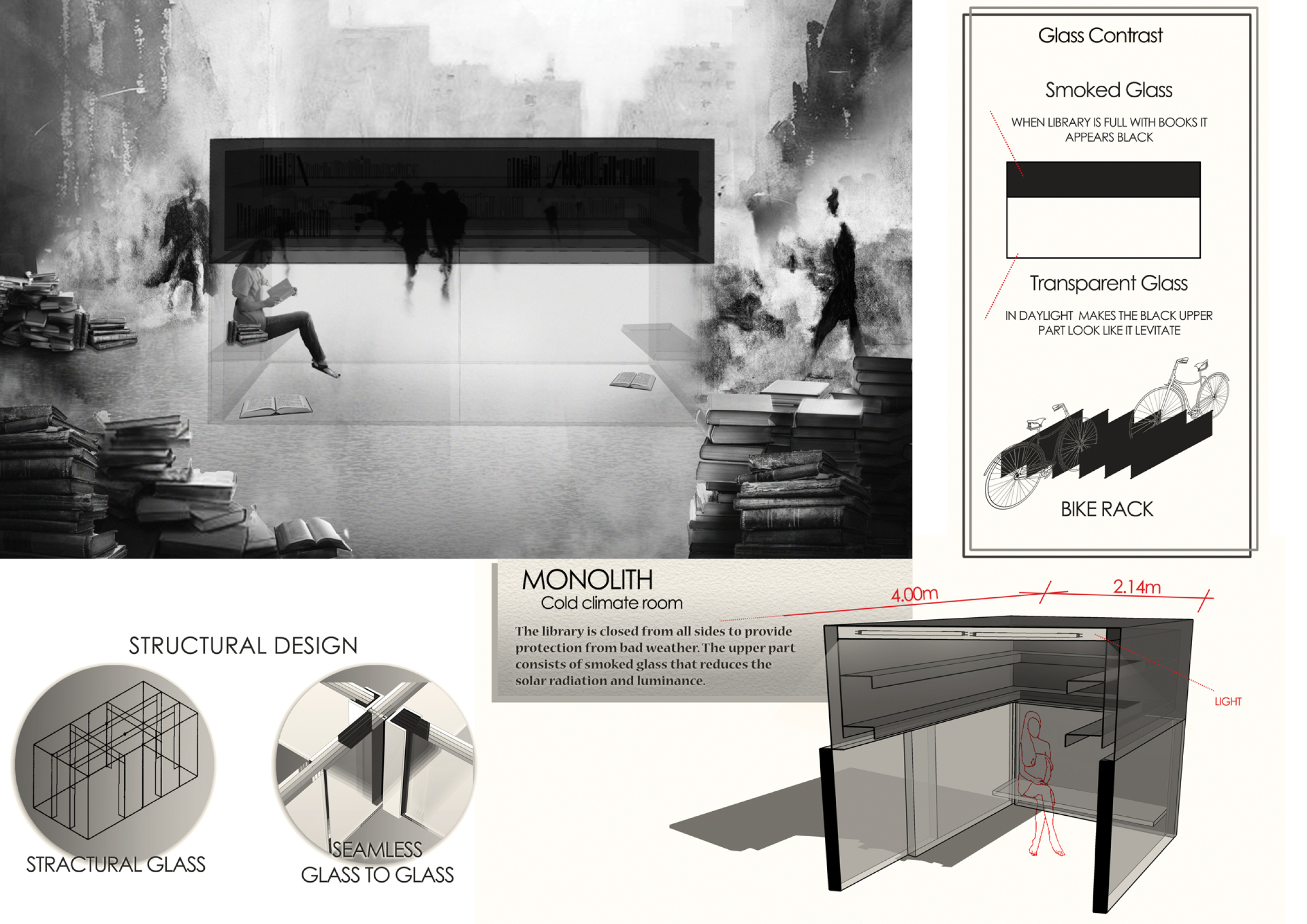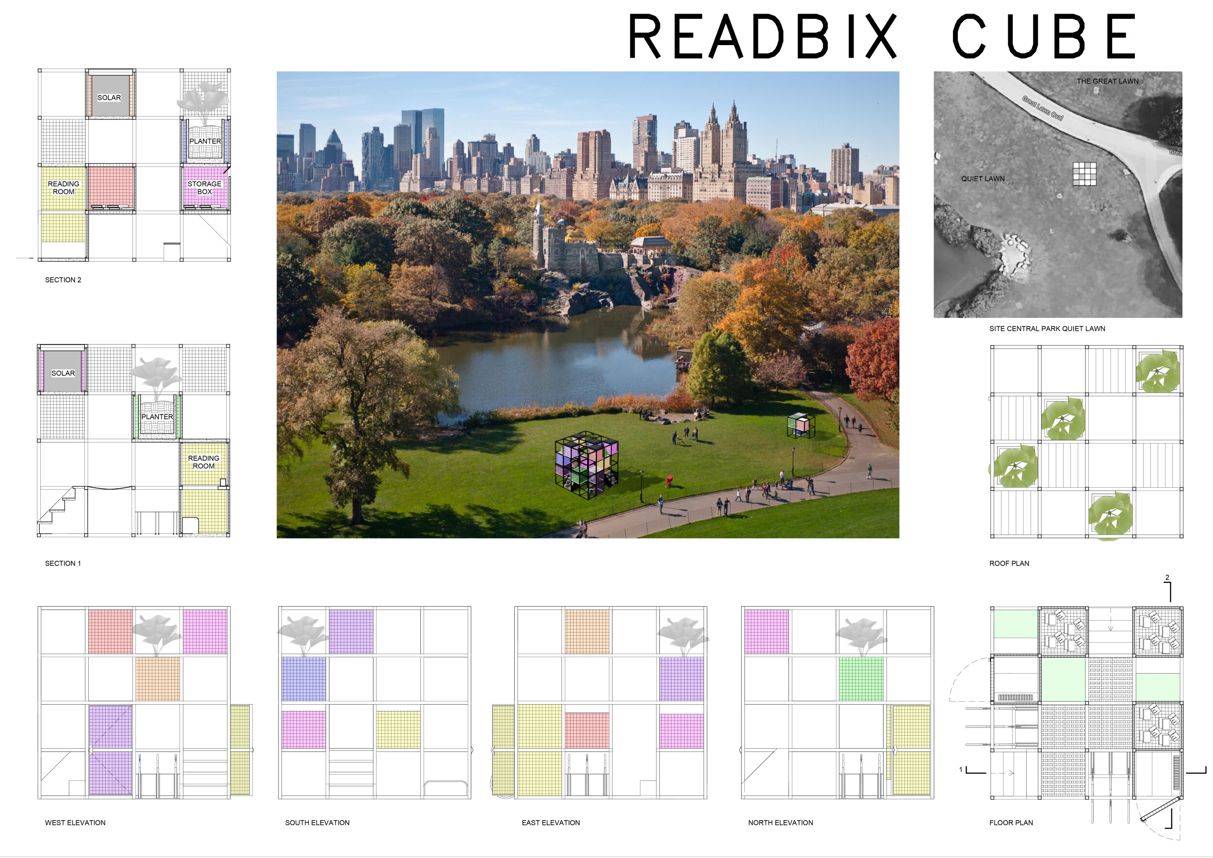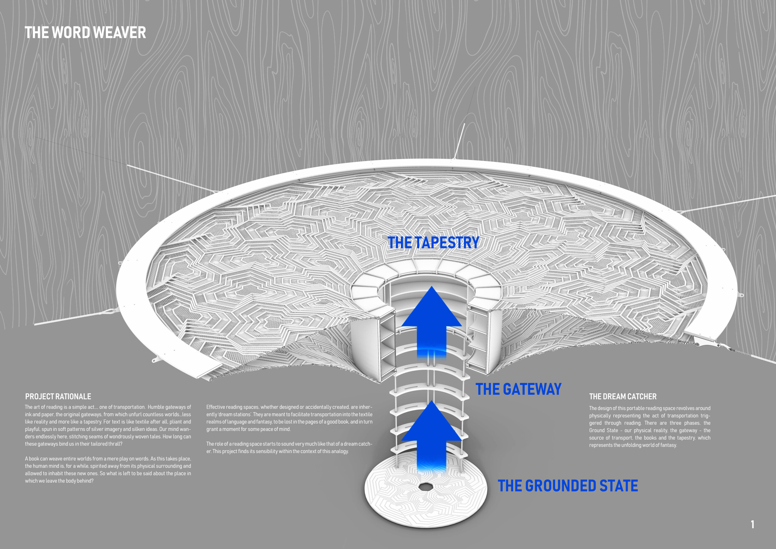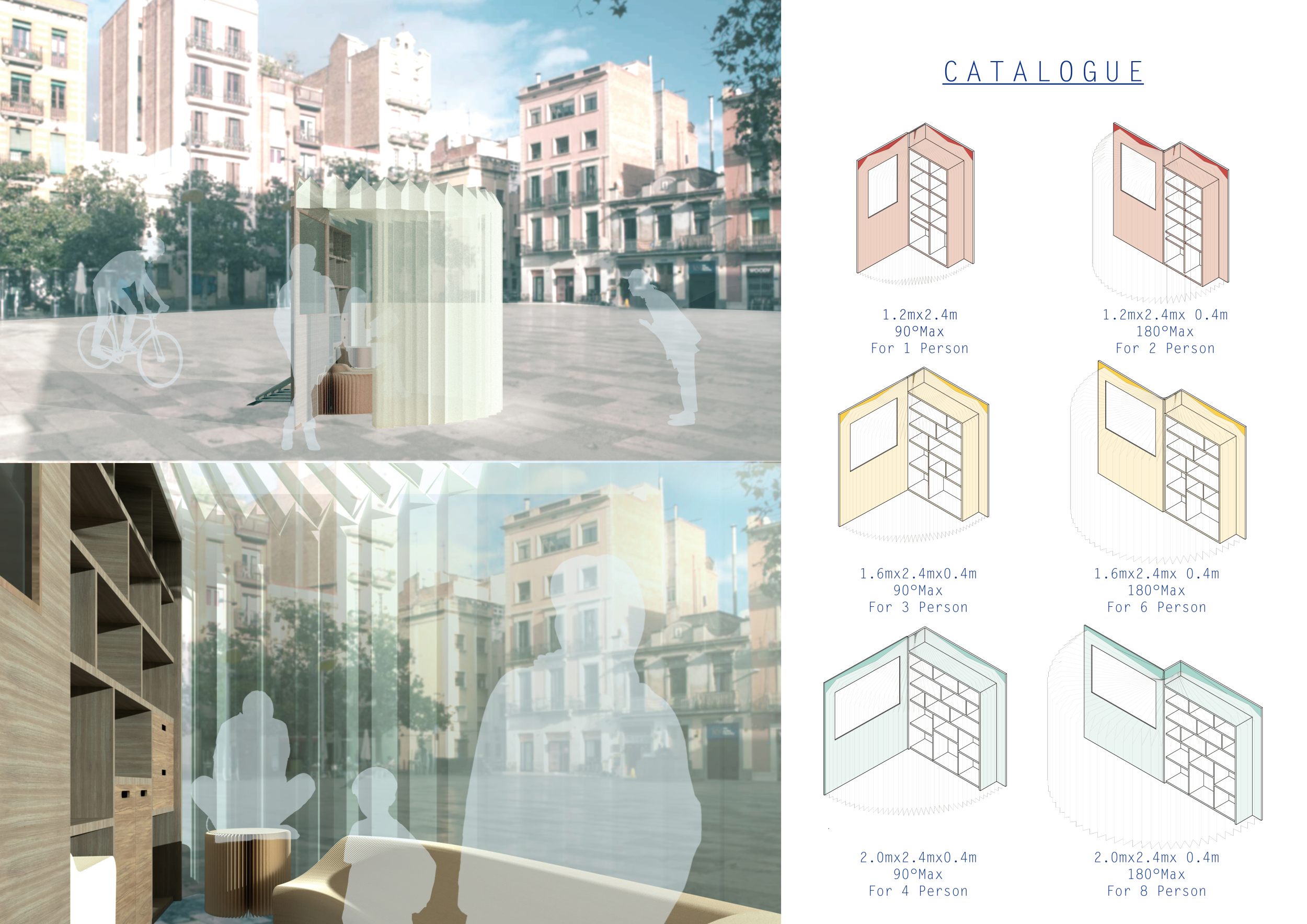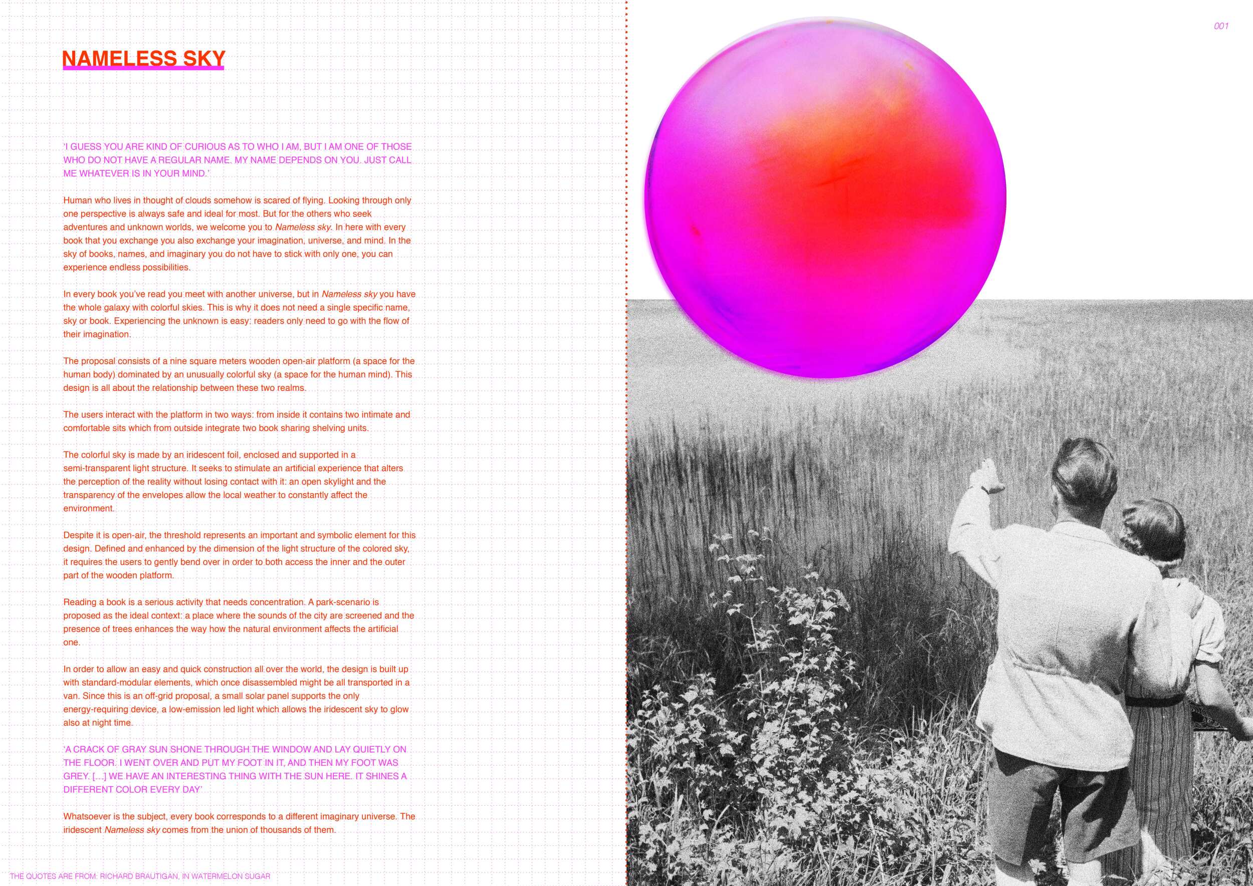 The proposal consists of a 9m² wooden open-air platform topped by an enclosure of iridescent foil. Entitled 'Nameless Sky', it contains two interior seats and bookshelves accessible from the perimeter. It is a symbolic project. It forces users to bend down to pick up books or to sit within the structure, emphasizing reading as an act requiring concentration and work. The synthetic sky above is an allusion to one's imagination. Read more The jury was impressed by project's simple representation, yet complex ideas.