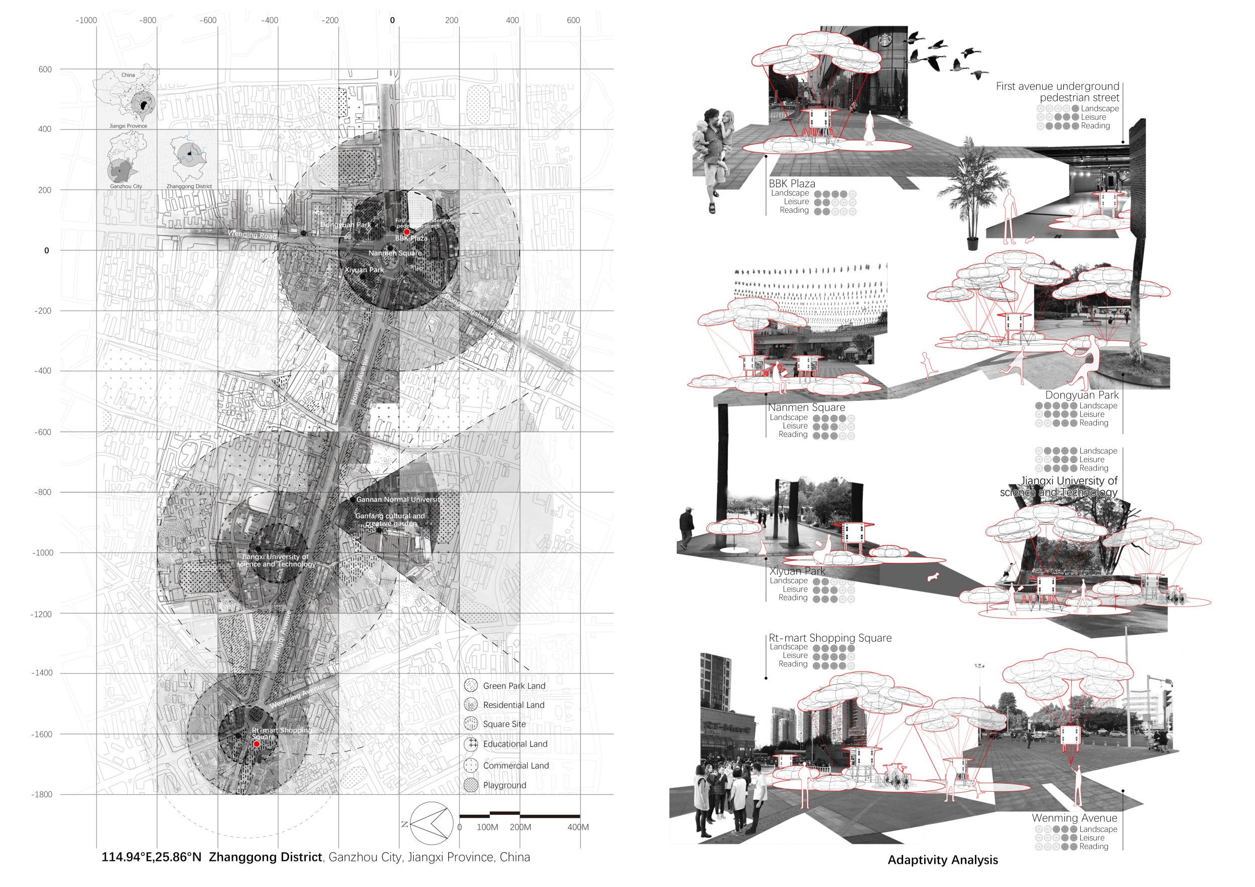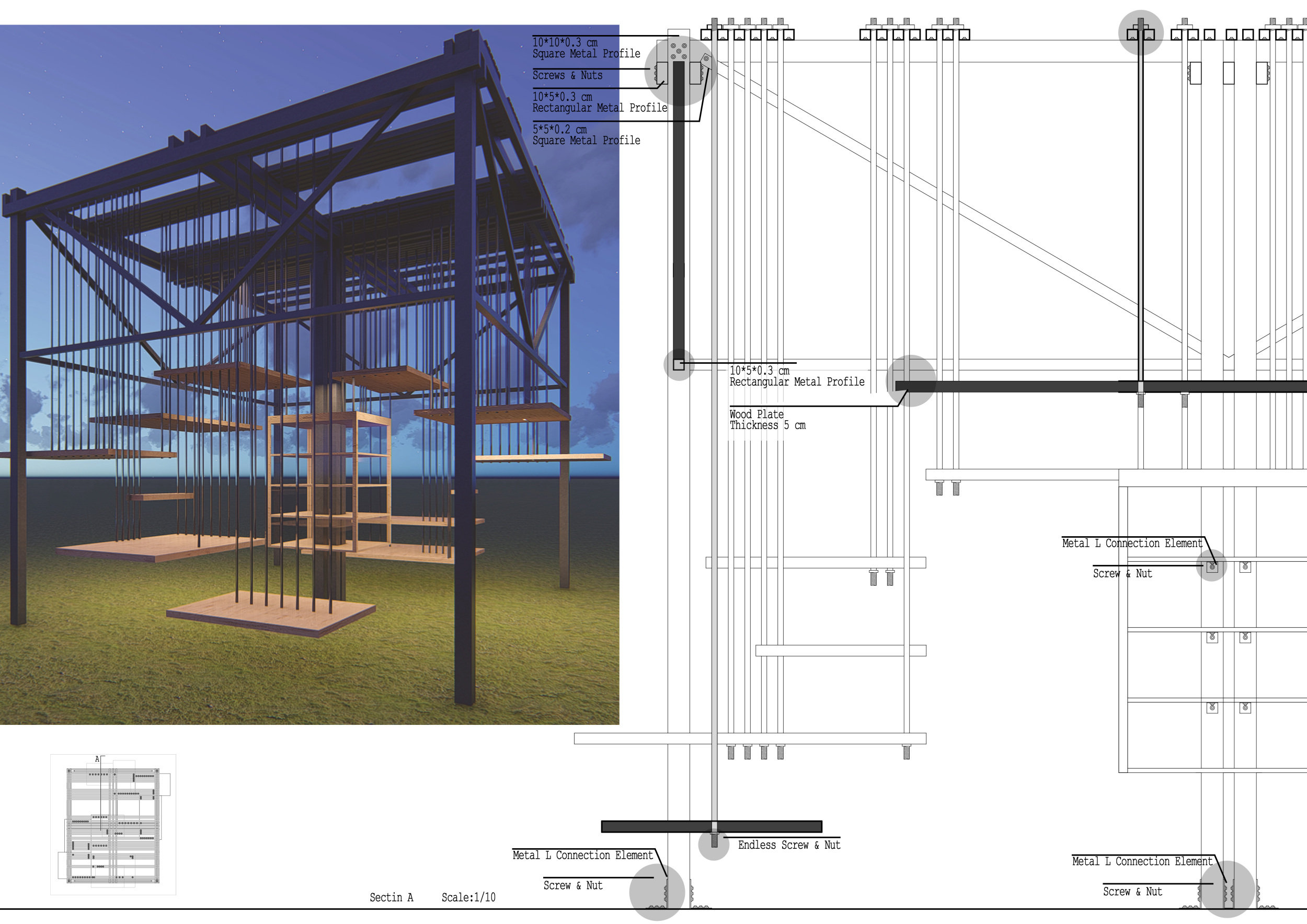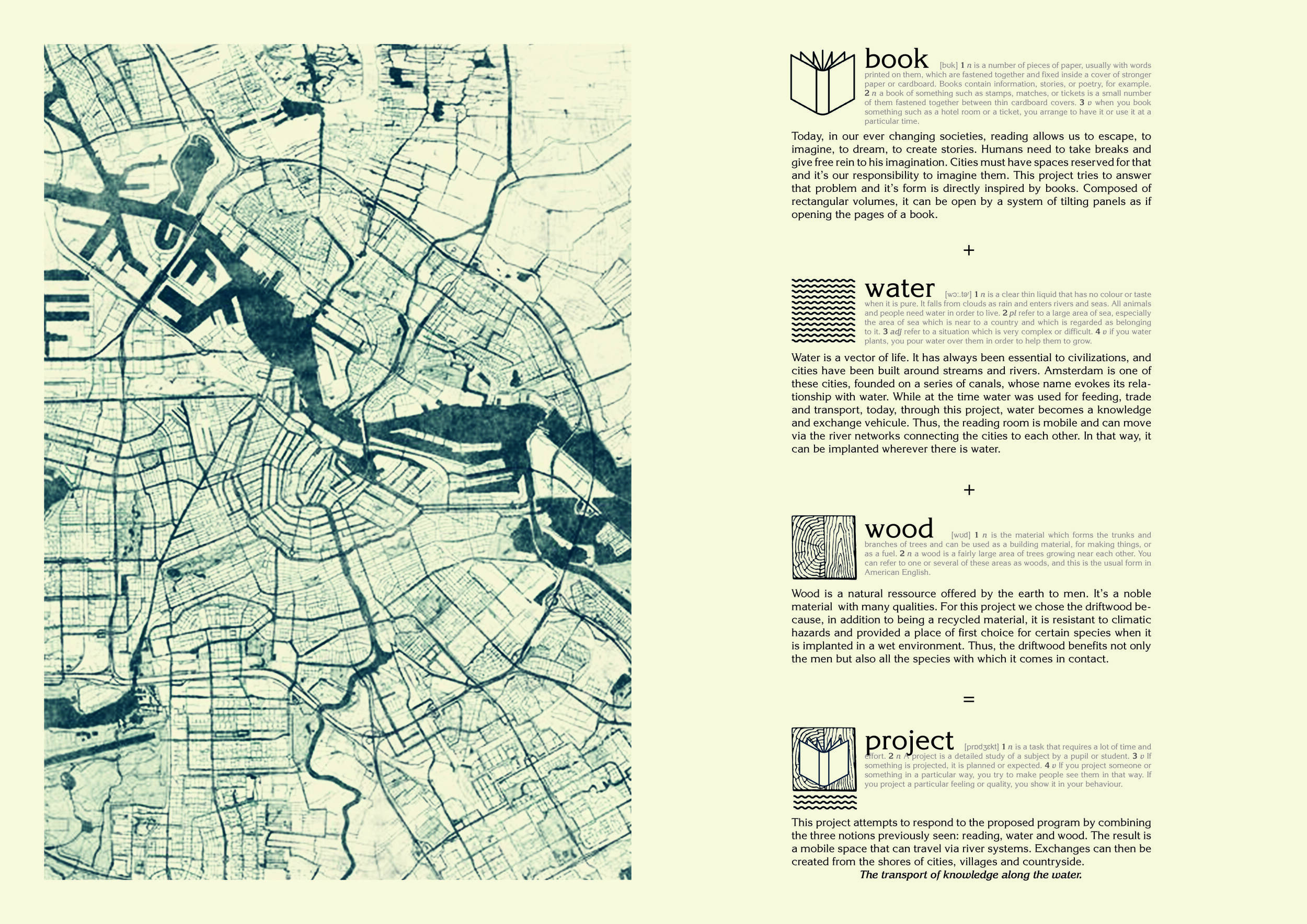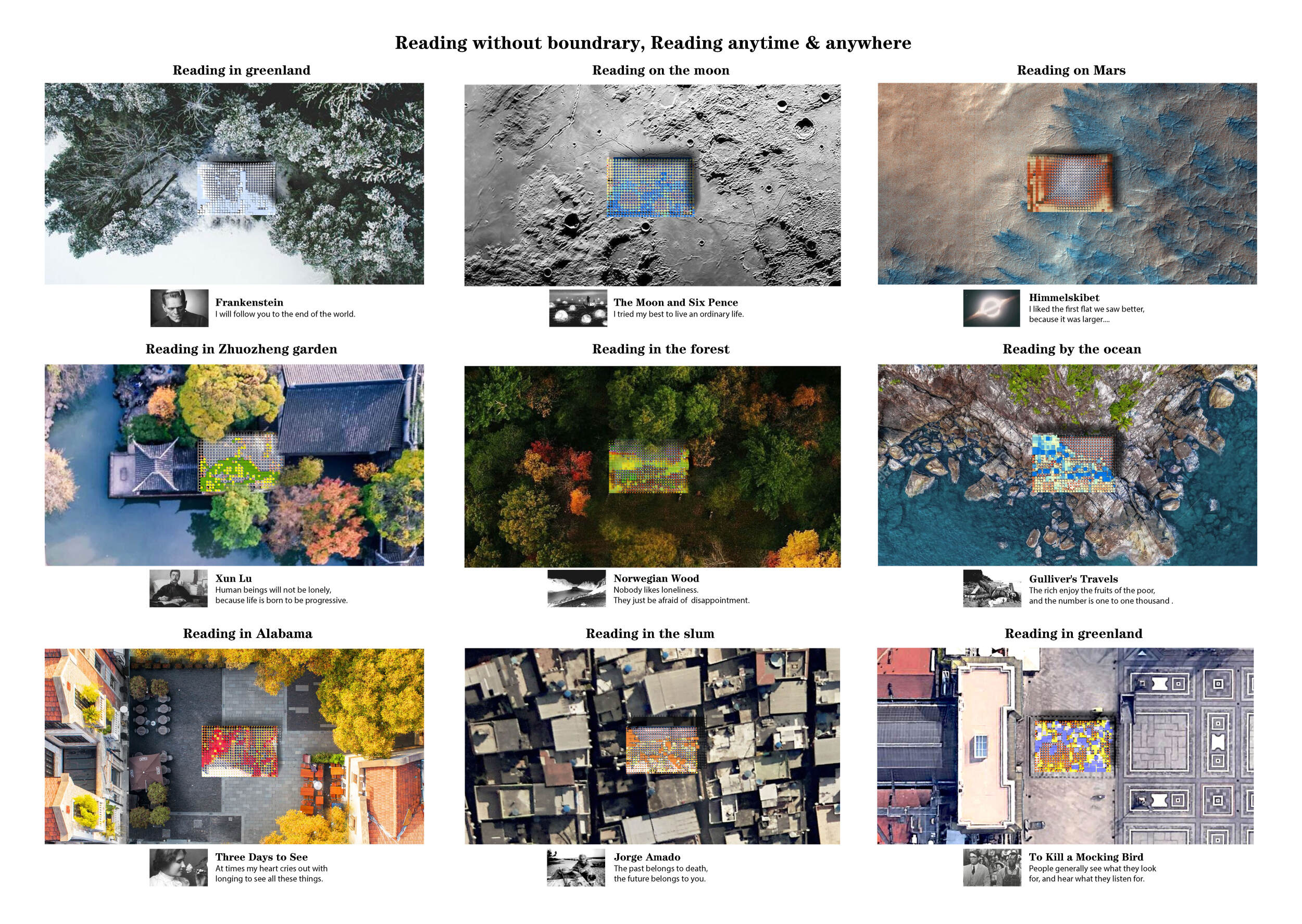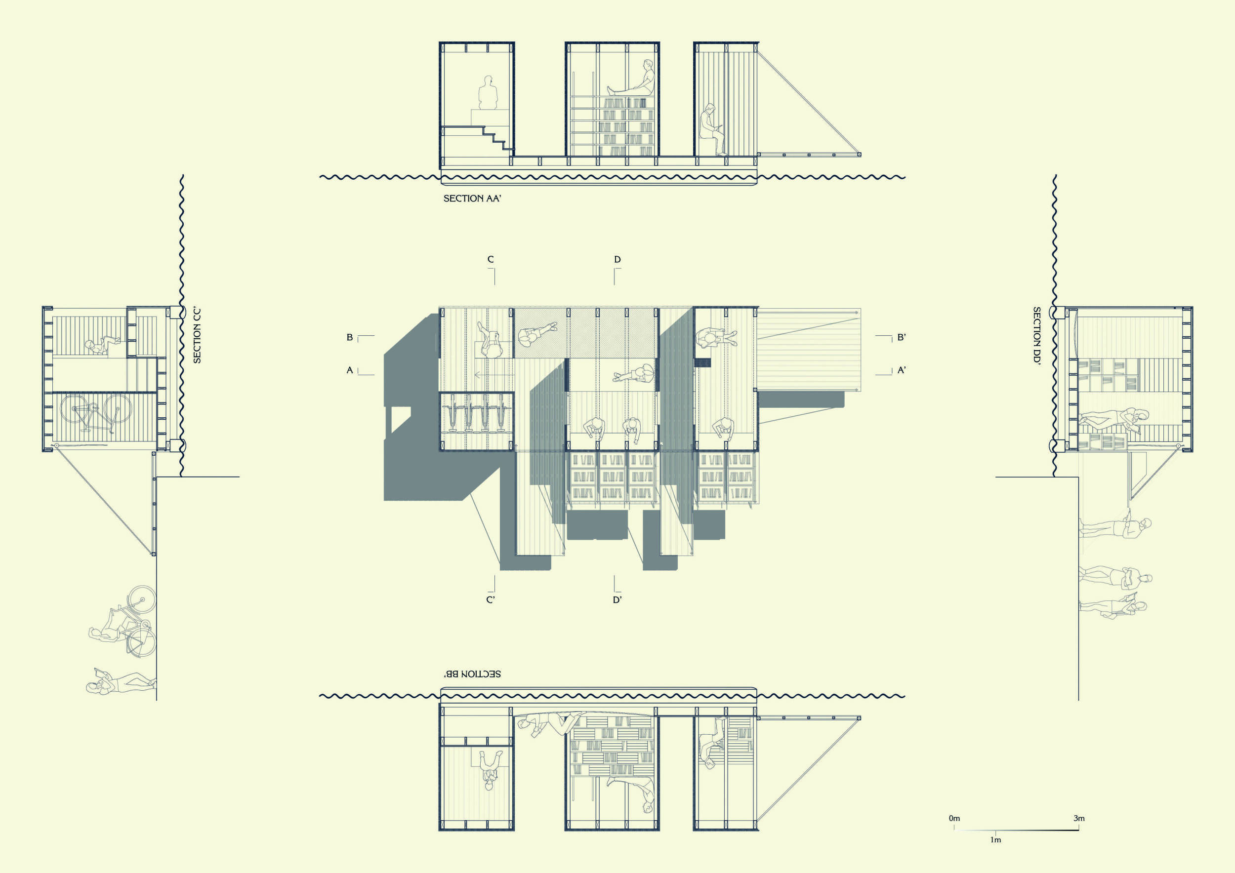 The proposal consists of a 9m² wooden open-air platform topped by an enclosure of iridescent foil. Entitled 'Nameless Sky', it contains two interior seats and bookshelves accessible from the perimeter. It is a symbolic project. It forces users to bend down to pick up books or to sit within the structure, emphasizing reading as an act requiring concentration and work. The synthetic sky above is an allusion to one's imagination. Read more The jury was impressed by project's simple representation, yet complex ideas.