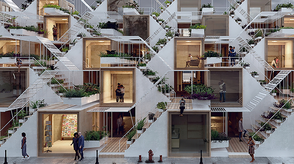 Buildner and ARCHHIVE Books have selected winners for the San Francisco Affordable Housing Challenge. A continuation of theaffordable housing design series, participants were tasked with somehow making one of the most expensive cities in the world more affordable. Submitted projects incorporated innumerable methods and approaches to this problem, including community co-living facilities, 3D-printed homes, crowd-funded home rehabilitation investment platforms, group home-ownership contracts, stackable modular homes, planning amendments for municipally owned sites, and more. First prize was awarded to Martin Pretorius and Raphael Trischler from South Africa for their ‘Rethinking Row-houses and Apartment Blocks’ project. Their modular system looked to use space more efficiently, as well as introducing greenery to the city. Most strikingly, the stacked units integrate a bridge to allow this new community to transverse main streets.