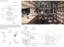 The submission cleverly balances renderings with sophisticated hand drawings to present a project that is textured and complex at the detail level while simple to understand at a macro level. The presentation makes use of a gray background which is effective for emphasizing the black and white line drawings. Its use of a limited number of large and clear drawings is well done and easy to read.