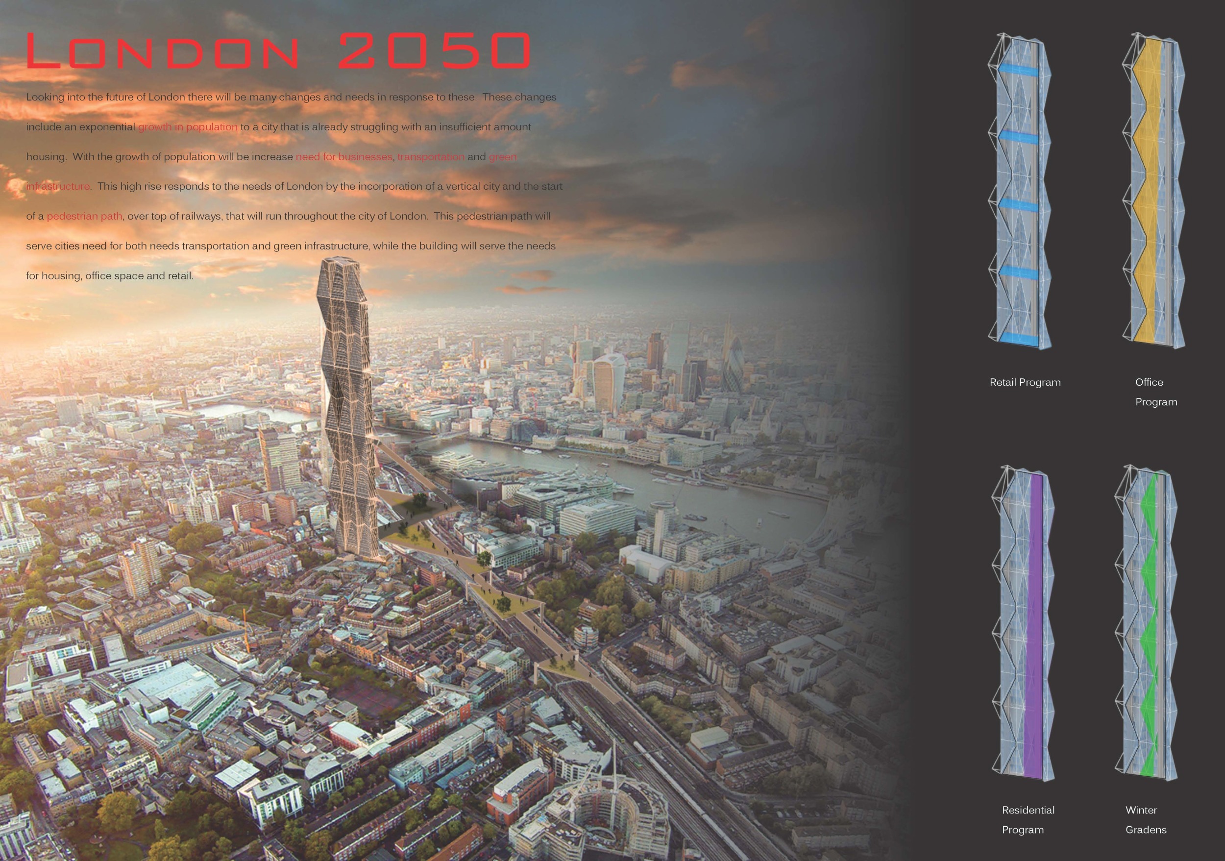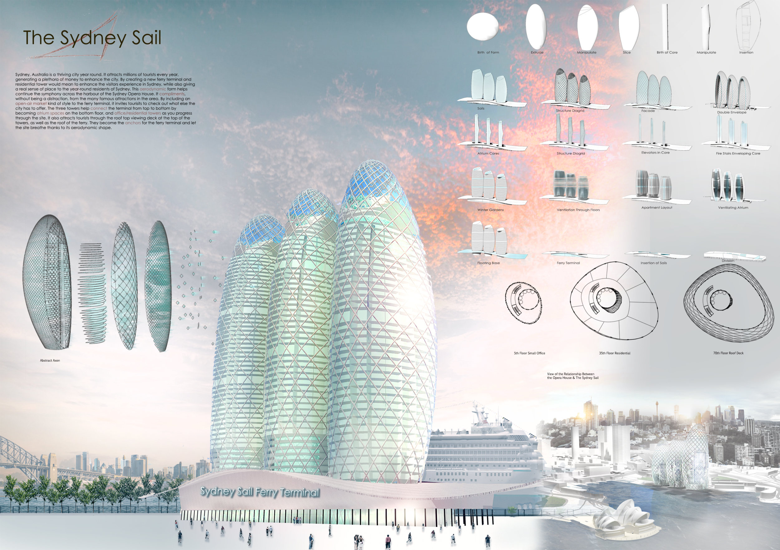 This was my first design competition. I love the freedom to push the boundaries of design and to explore futuristic concepts of form, space and technology. The majority of us will lose that vision when leaving school and entering the workforce, but these competitions allow us to rekindle why we wanted to be an architect in the first place.