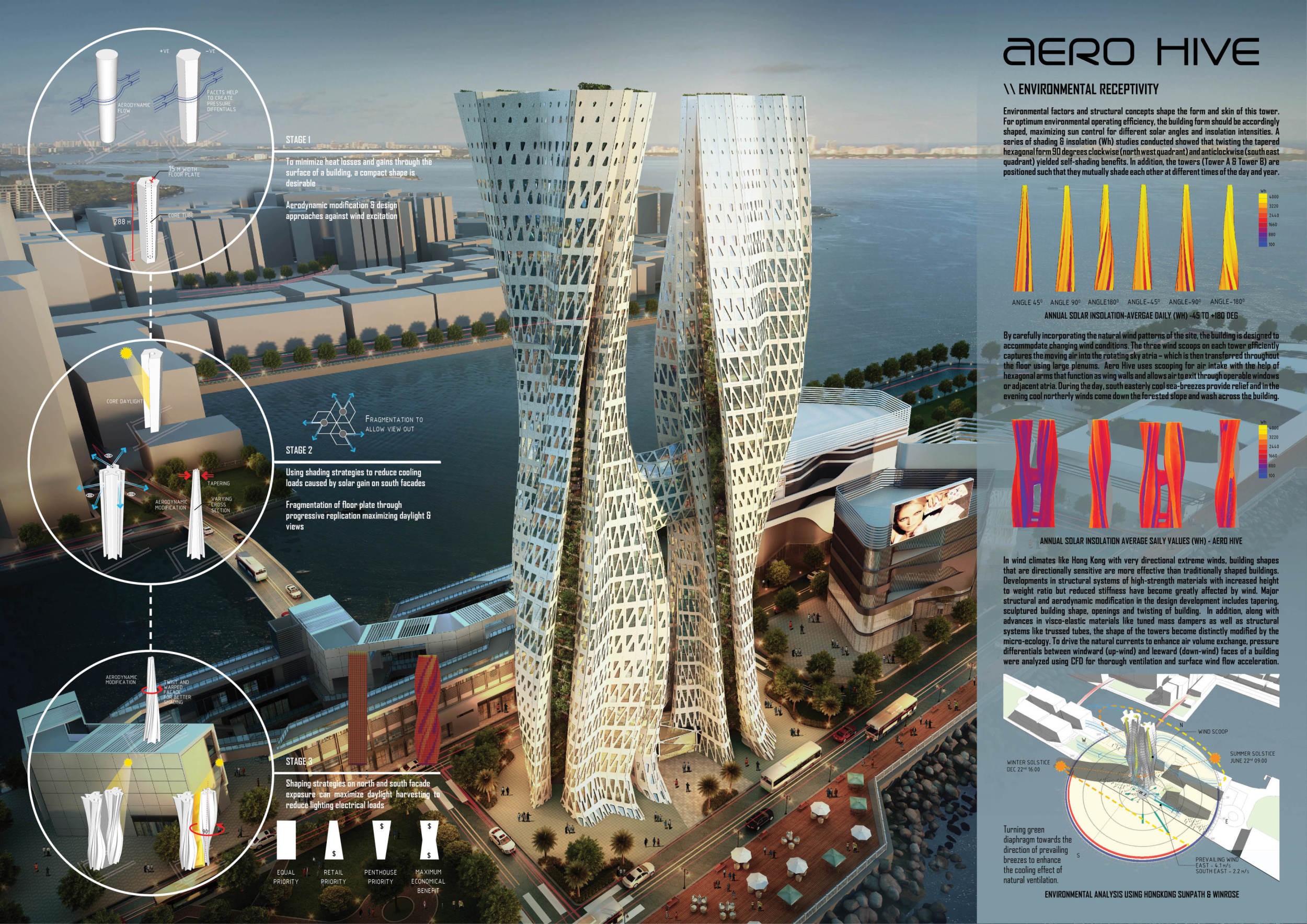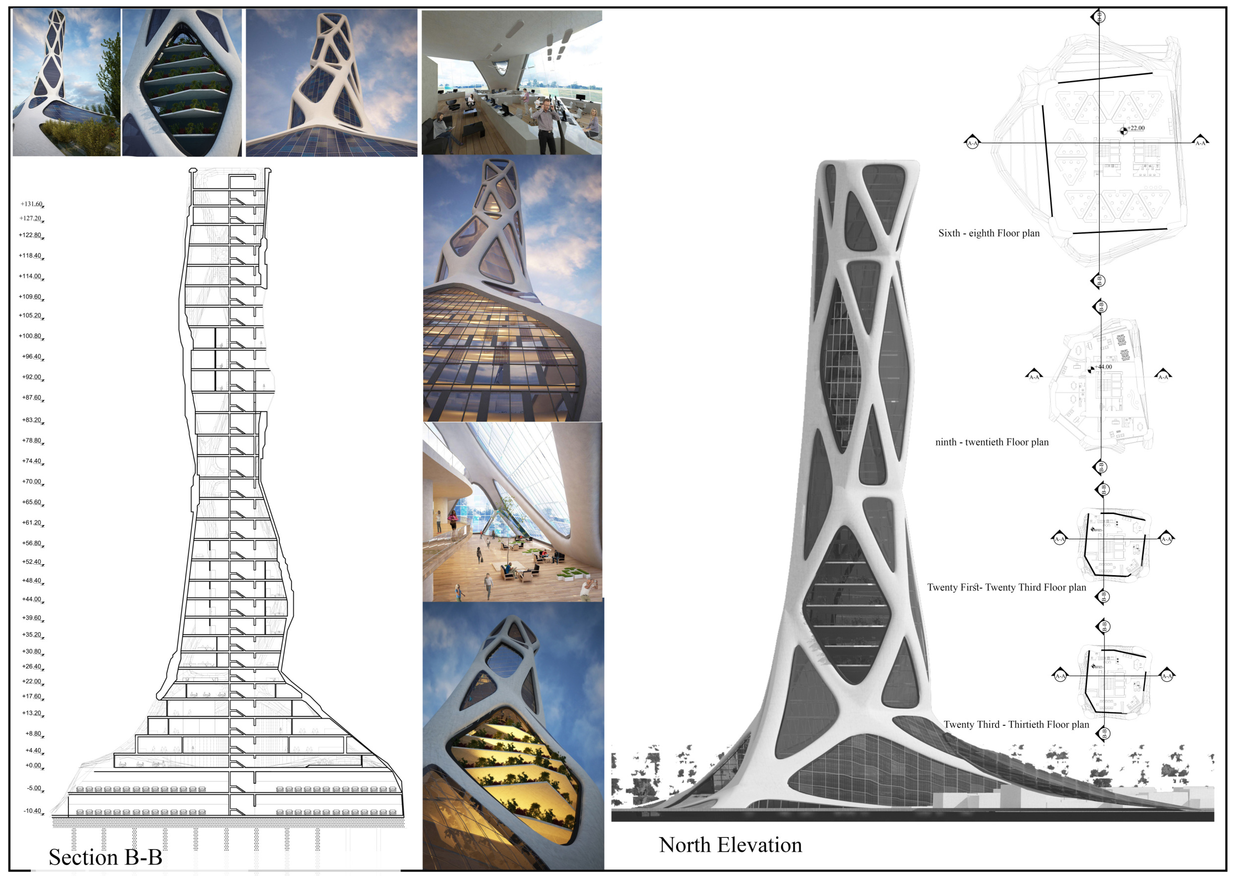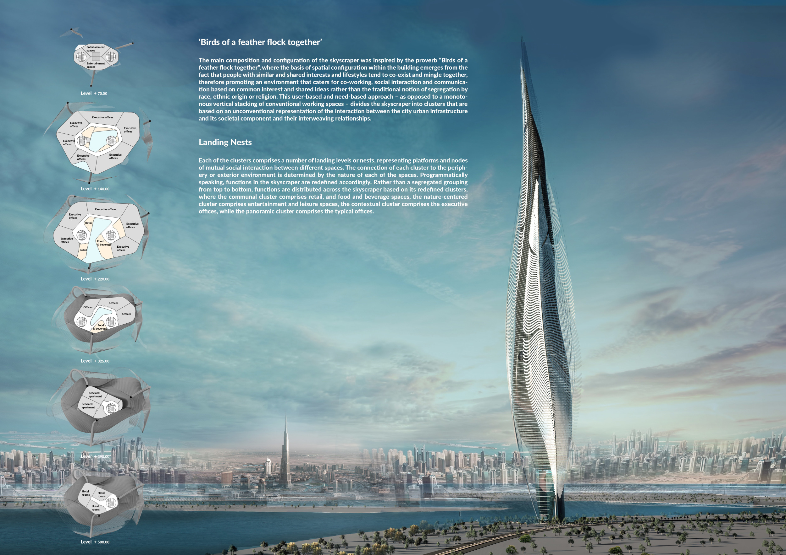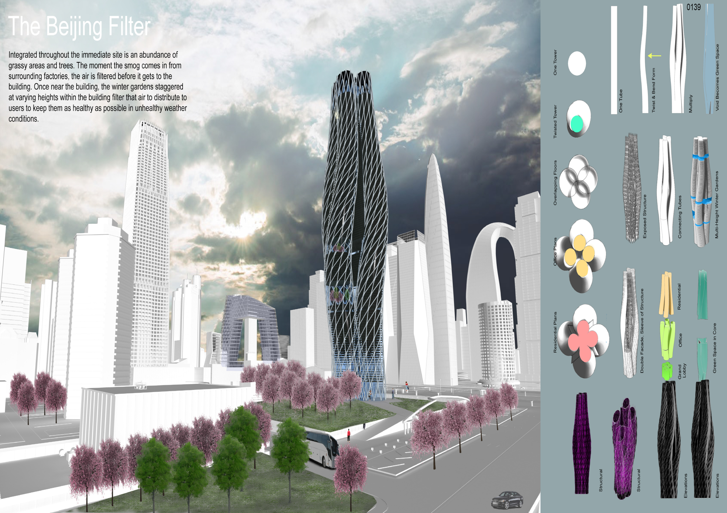 Submitted projects touched on issues of globalisation, sustainability, design adaptability, digital trends, and developing concepts in engineering. Each of the winning projects shows an ambition to rewrite the definition of the 21st-century skyscraper. The jury evaluated entries based on a number of factors, including sensitivity to the environment, potential to serve as a landmark, analysis of form, and creativity. They found that entries proposed a wide variety of structural themes, materials, and facade and typical floor plate design. Bee Breeders would like to thank each entrant and team for for their participation.