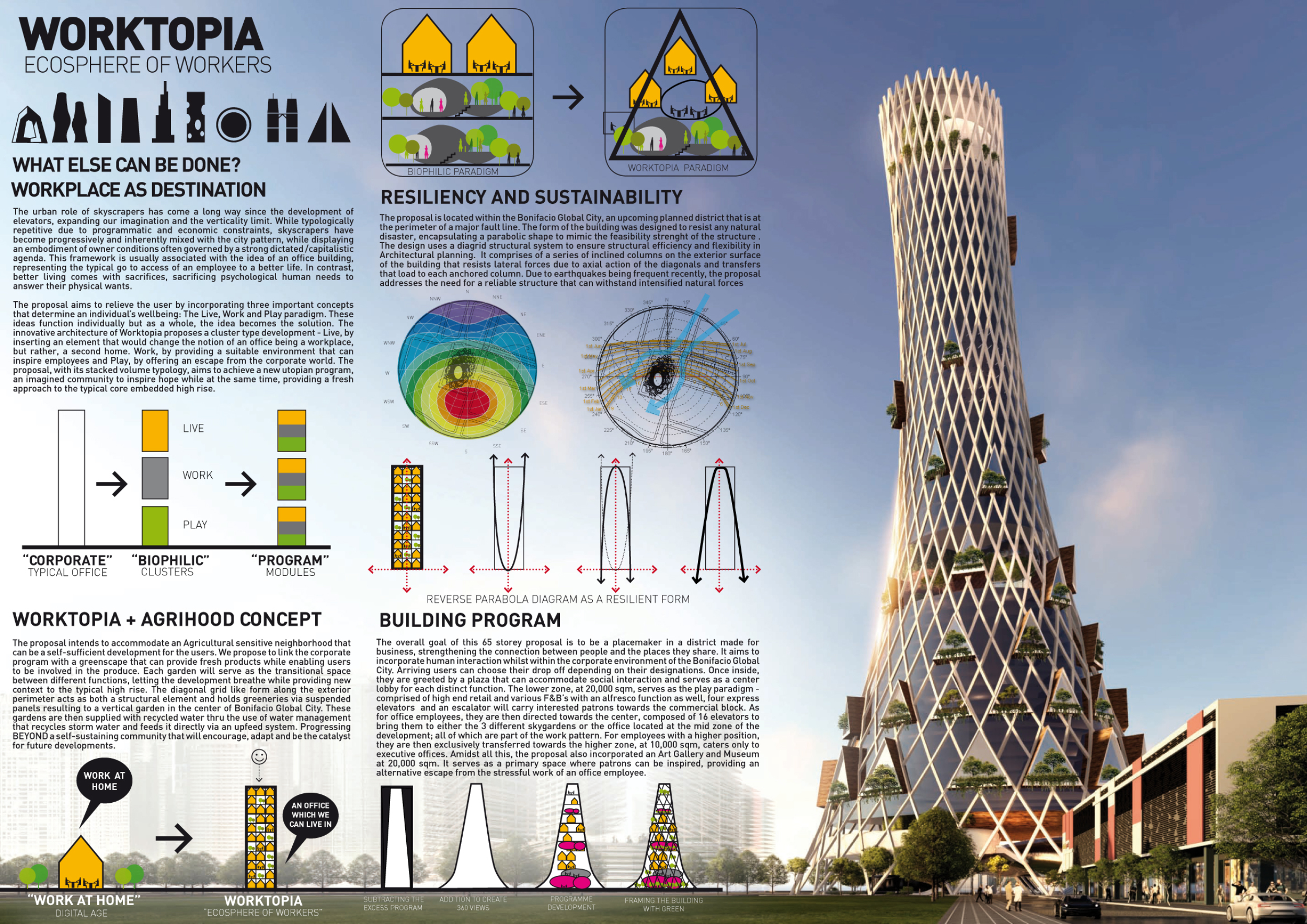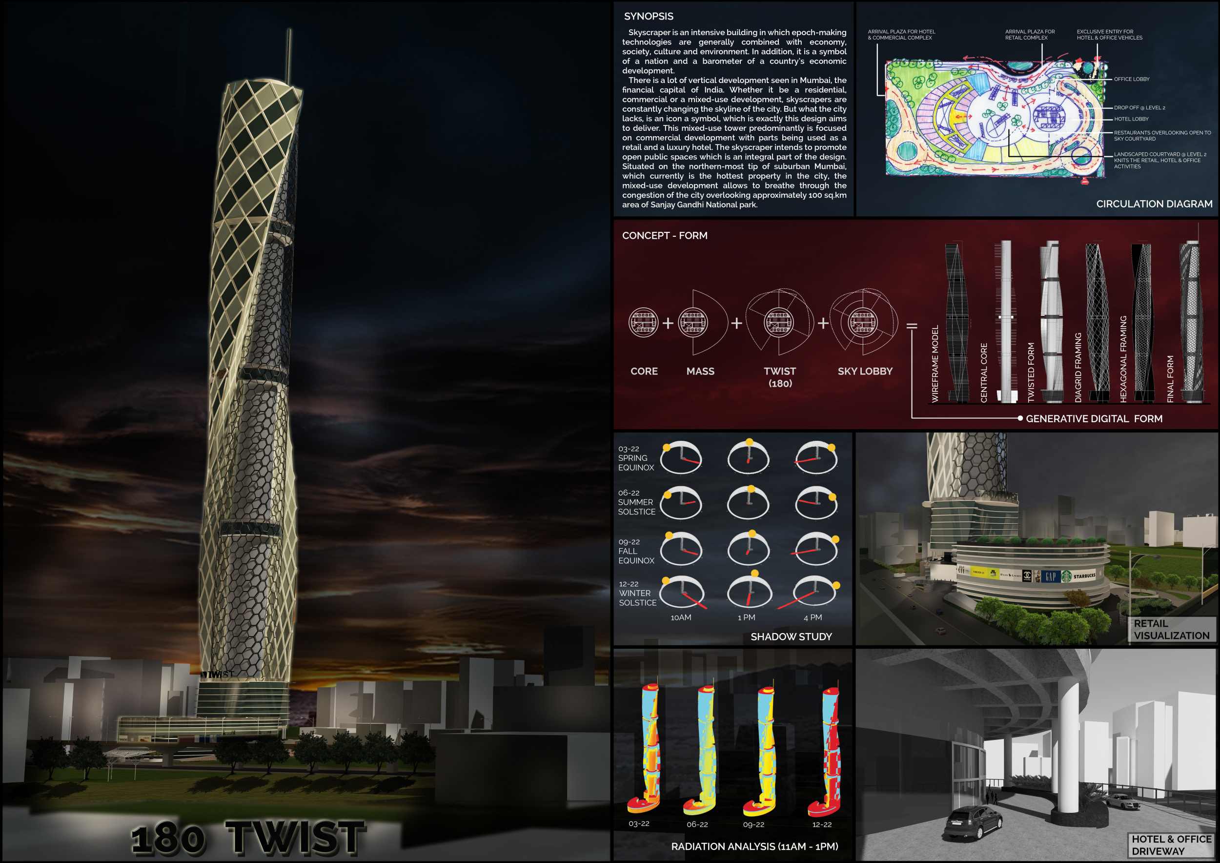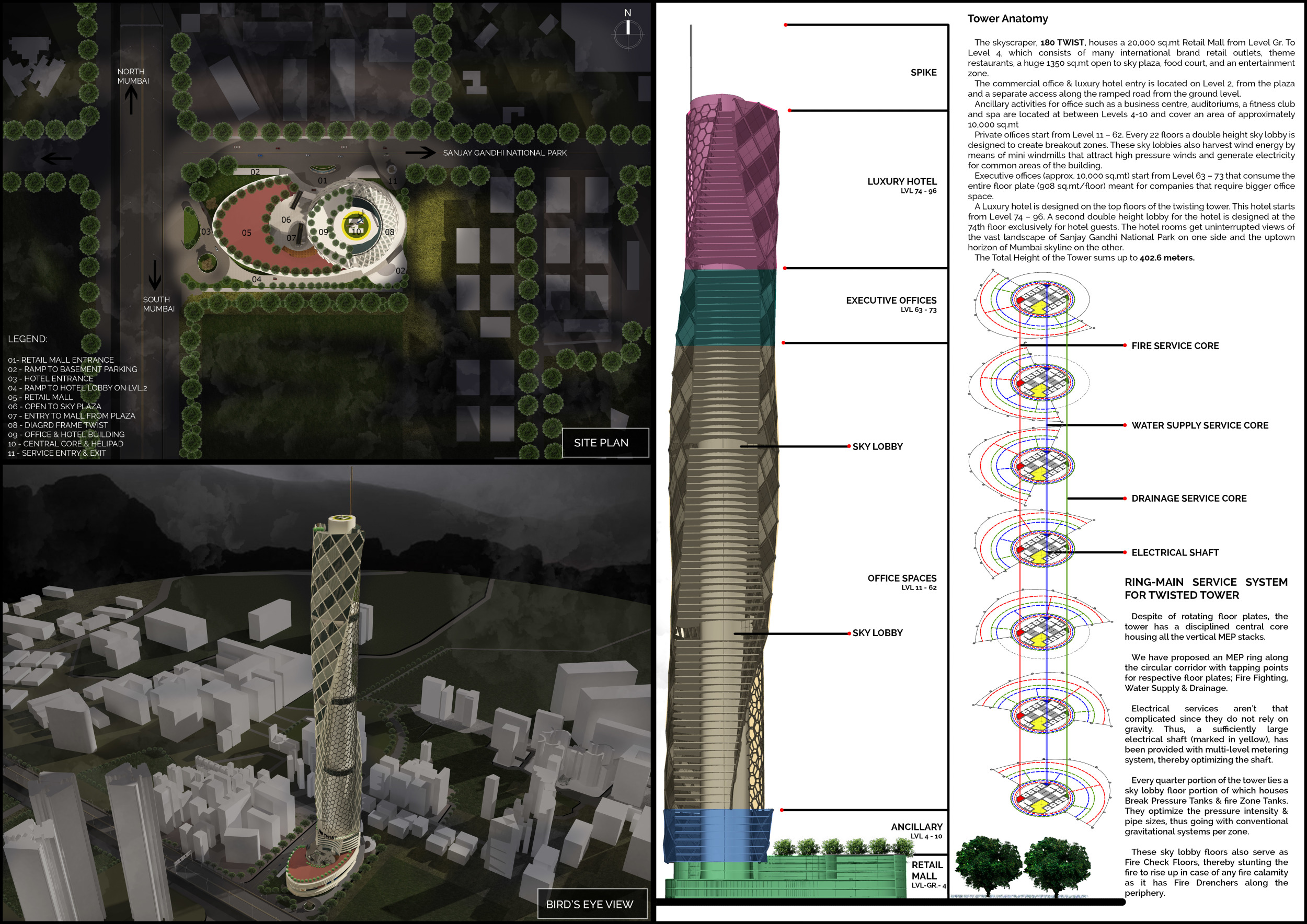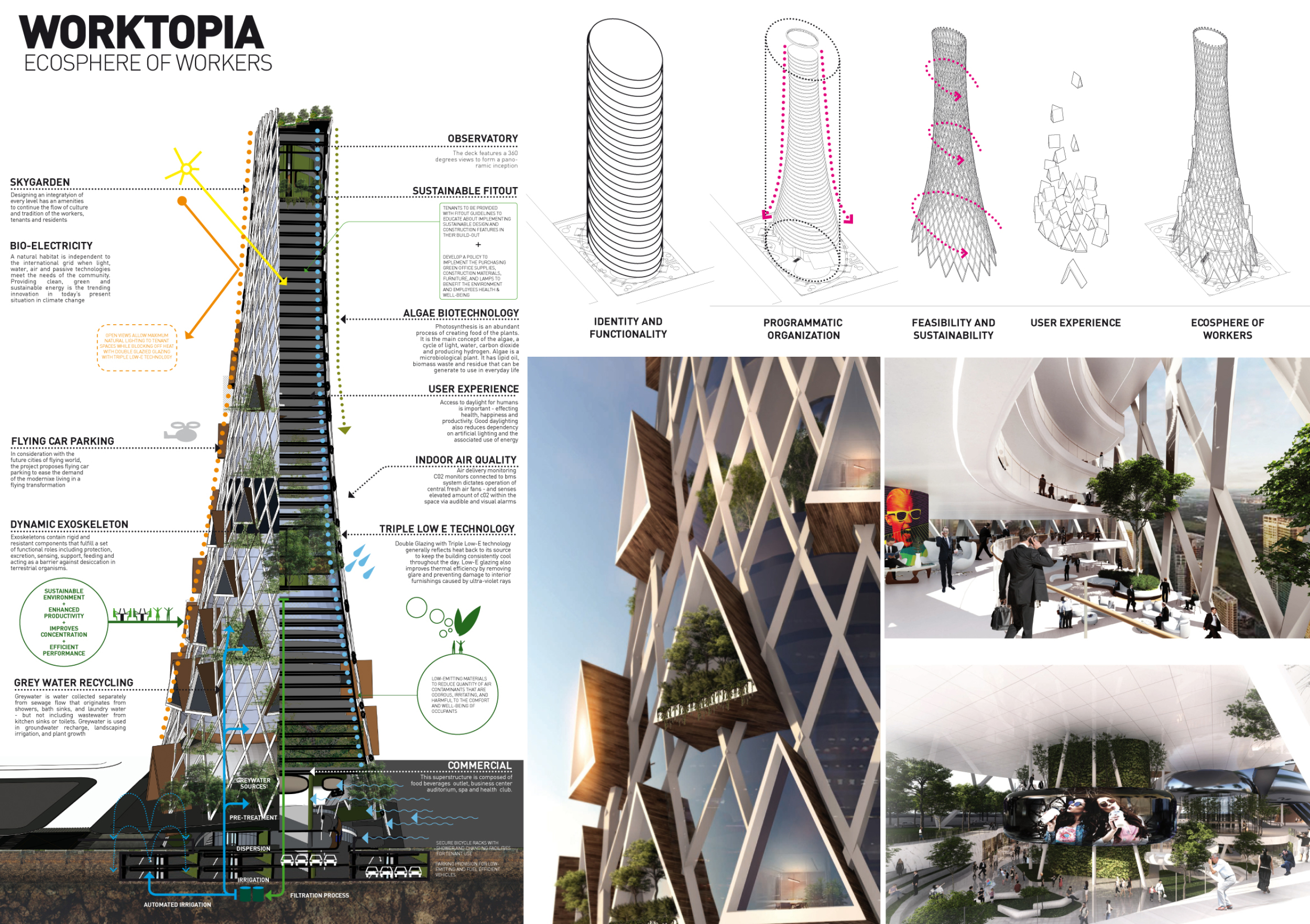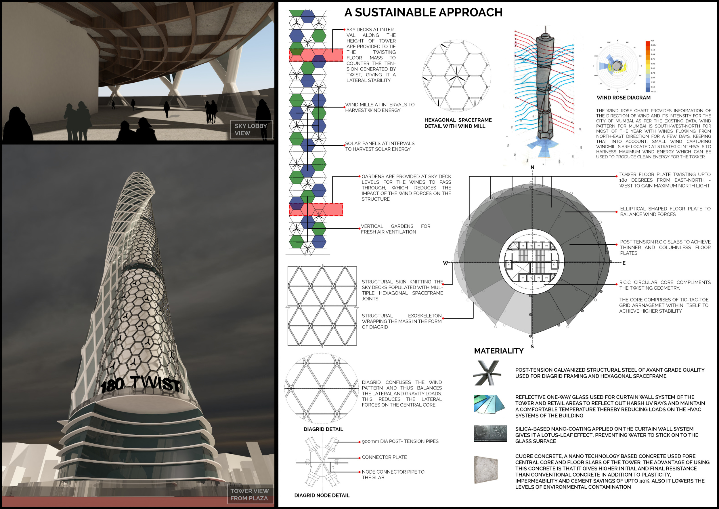 Submitted projects touched on issues of globalisation, sustainability, design adaptability, digital trends, and developing concepts in engineering. Each of the winning projects shows an ambition to rewrite the definition of the 21st-century skyscraper. The jury evaluated entries based on a number of factors, including sensitivity to the environment, potential to serve as a landmark, analysis of form, and creativity. They found that entries proposed a wide variety of structural themes, materials, and facade and typical floor plate design. Bee Breeders would like to thank each entrant and team for for their participation.