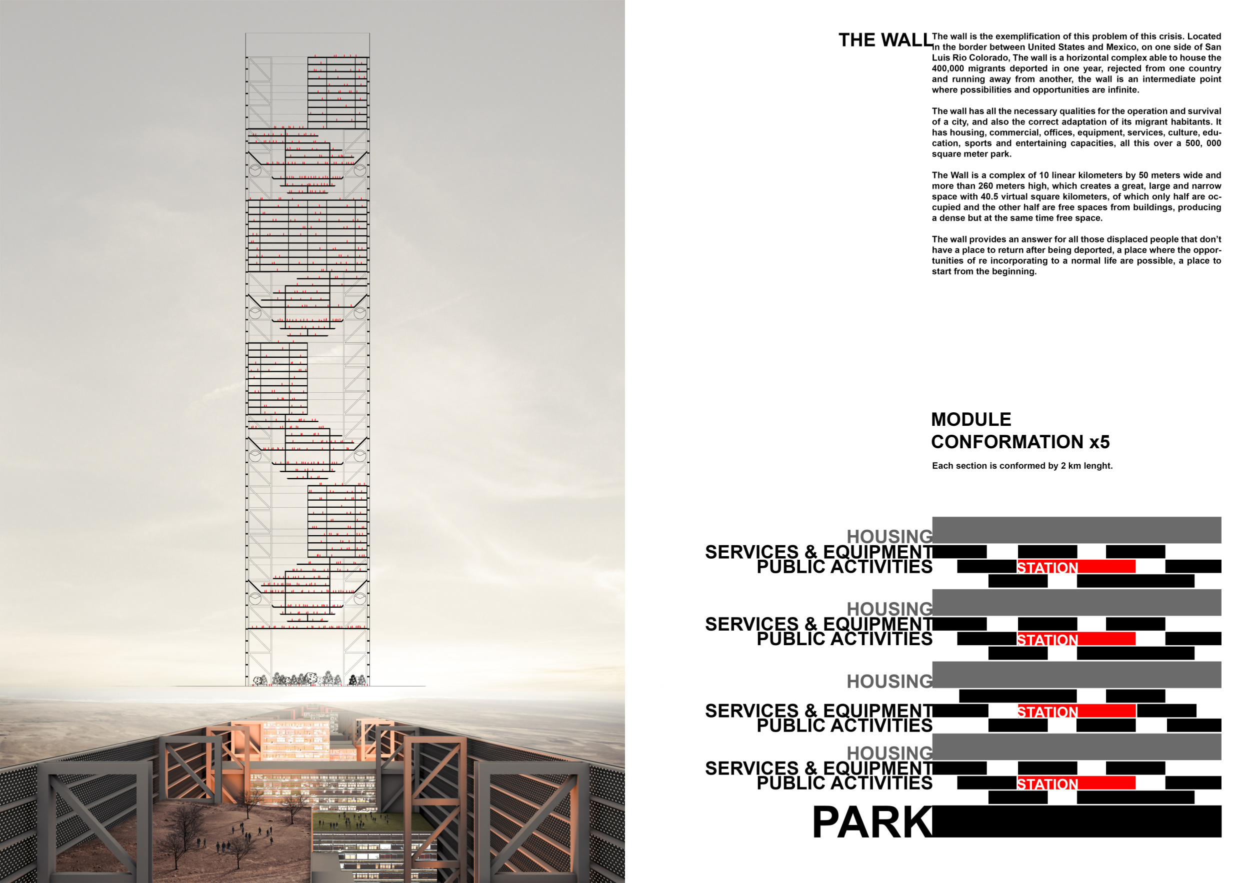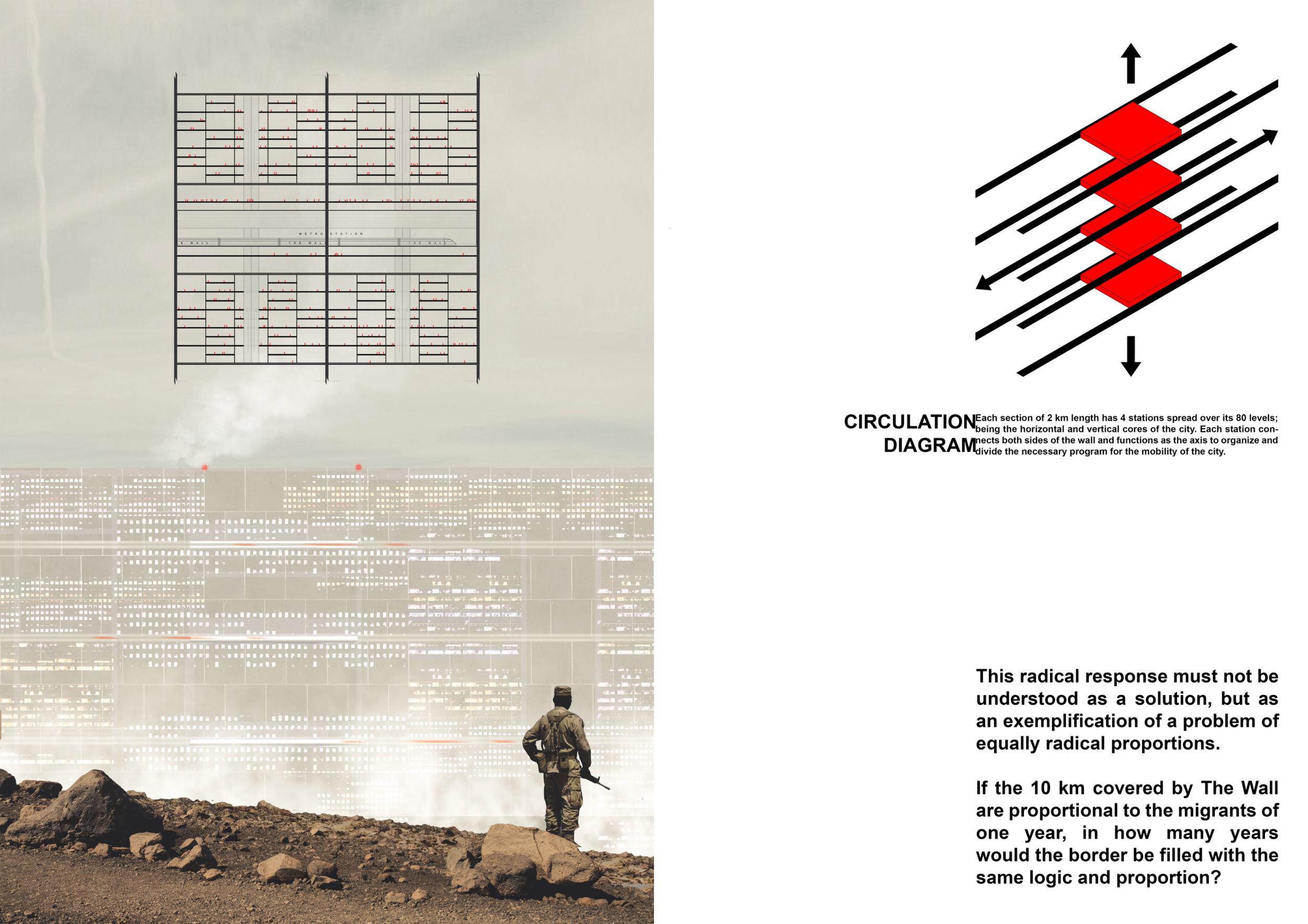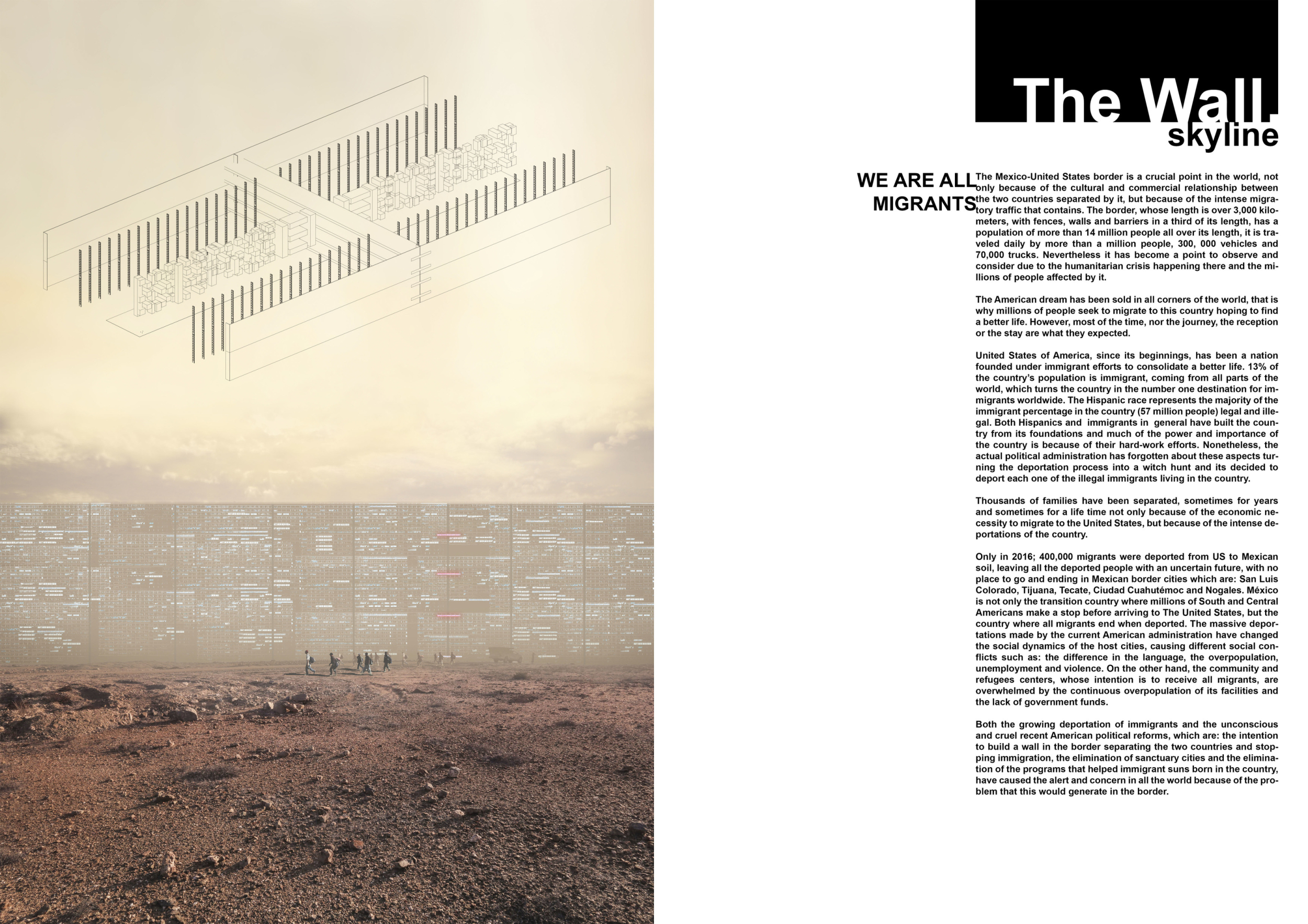 While among the least developed designs in the winner's category, this was also one of the judges favorites. There is so much tension and debate today concerning desires to close national borders by building walls, or making them more impenetrable by increasing their security.