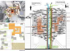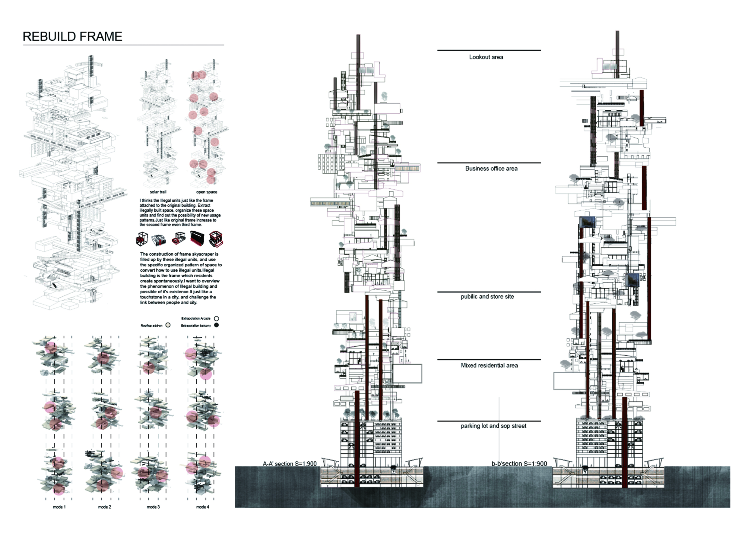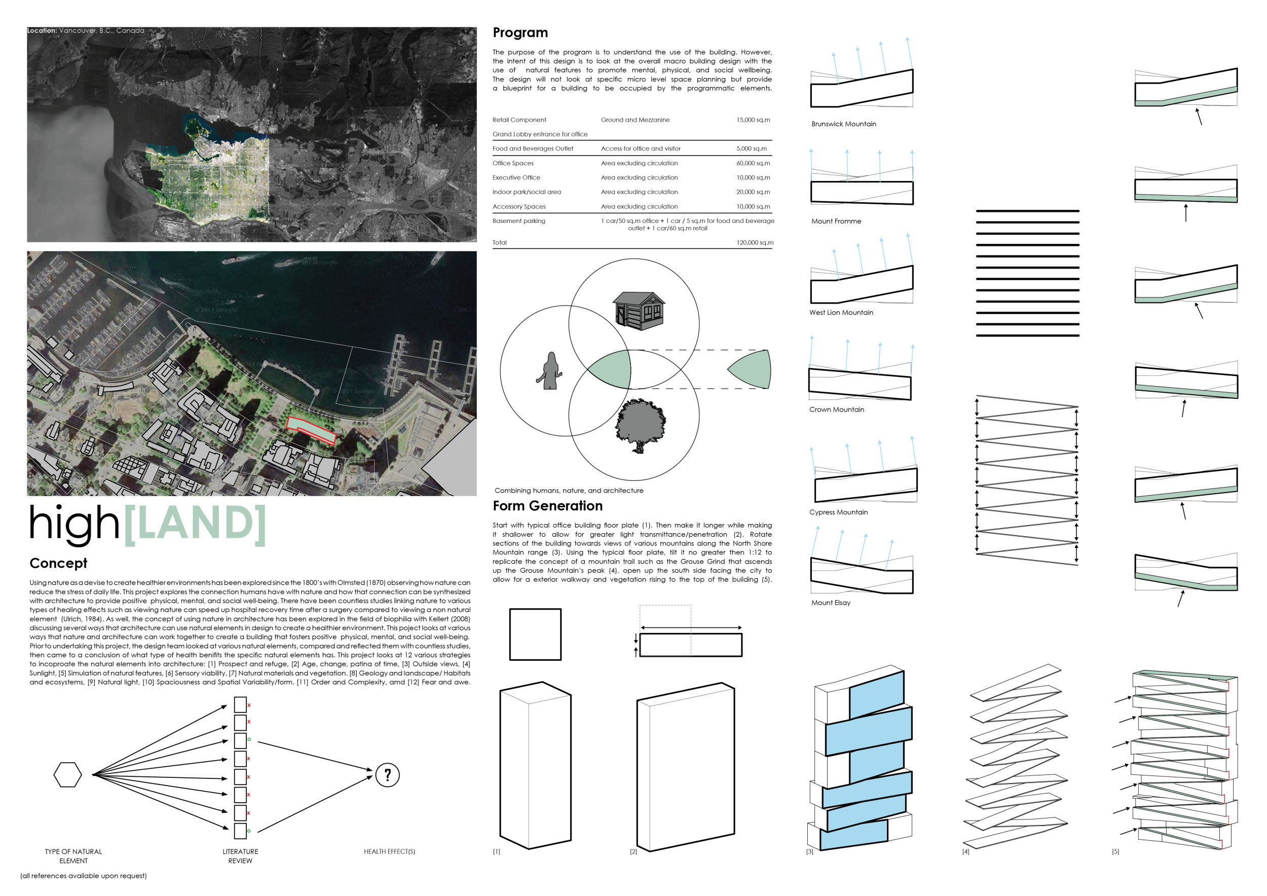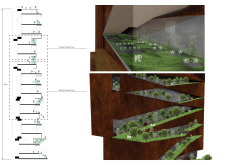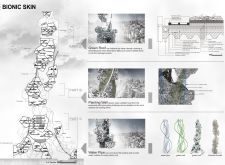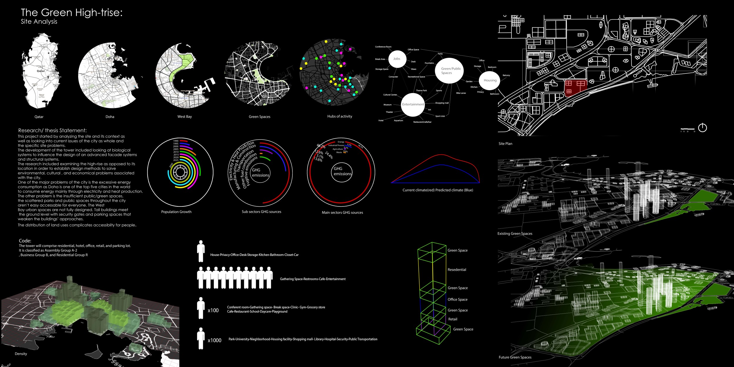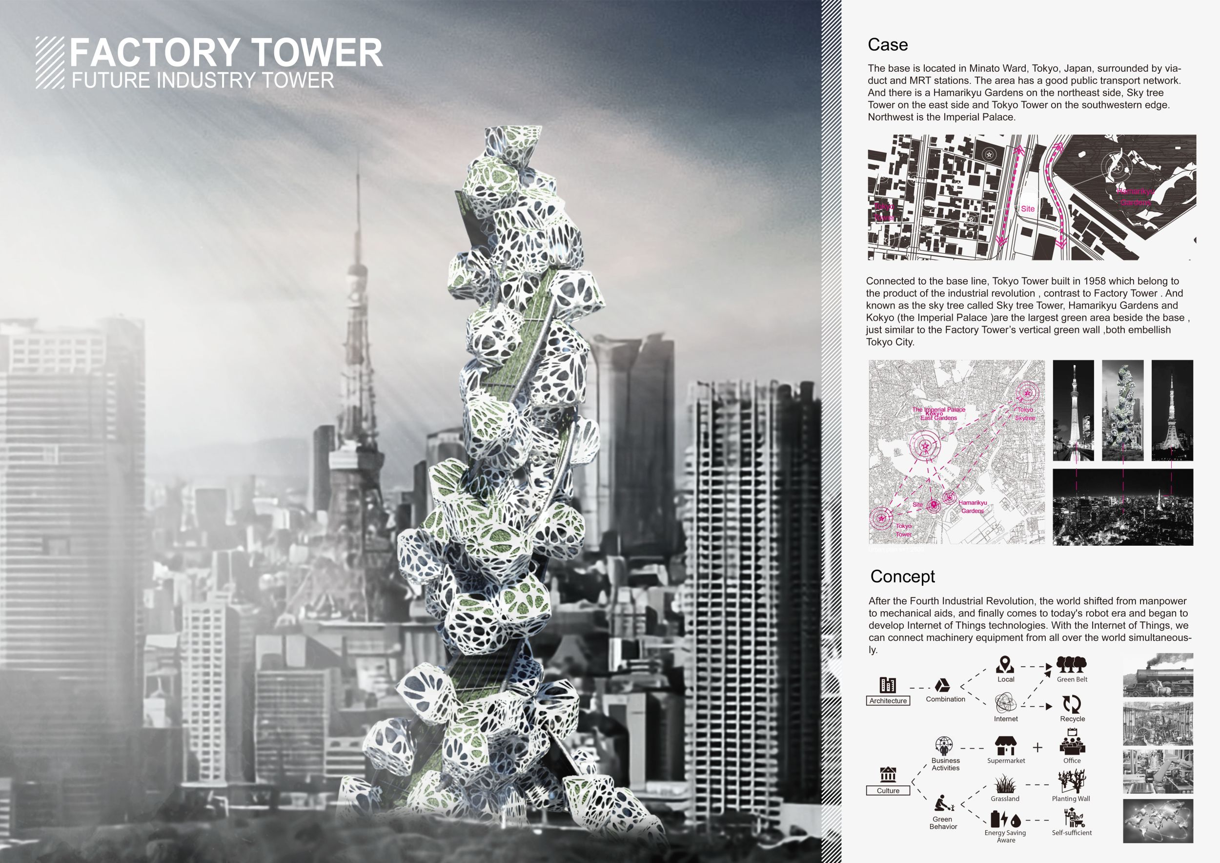The design resolves a large site by dividing the volume into two towers, reducing the monumentality of the high-rise with a porous and organic form. Each tower is further fragmented into three semi-opaque vertical elements connected by spaces in transparent glass which allow daylight to reach the core, and permit outward views surrounding the proposed Hong Kong site. The towers are connected at mid-height by a sky-bridge and each features a dense rooftop garden open to the sky.