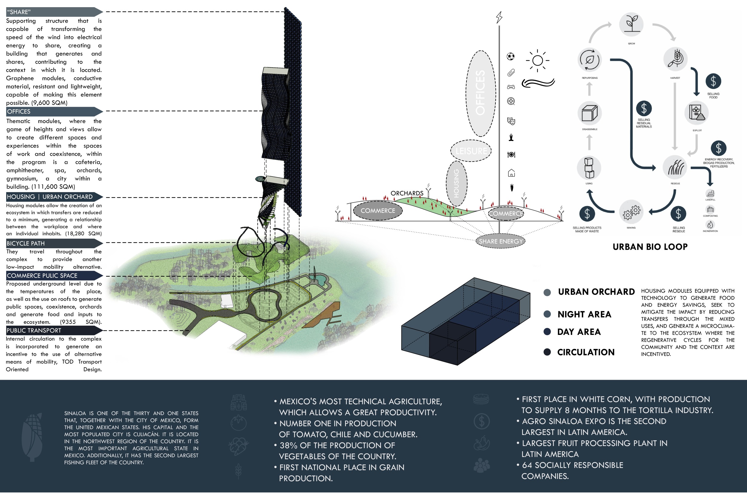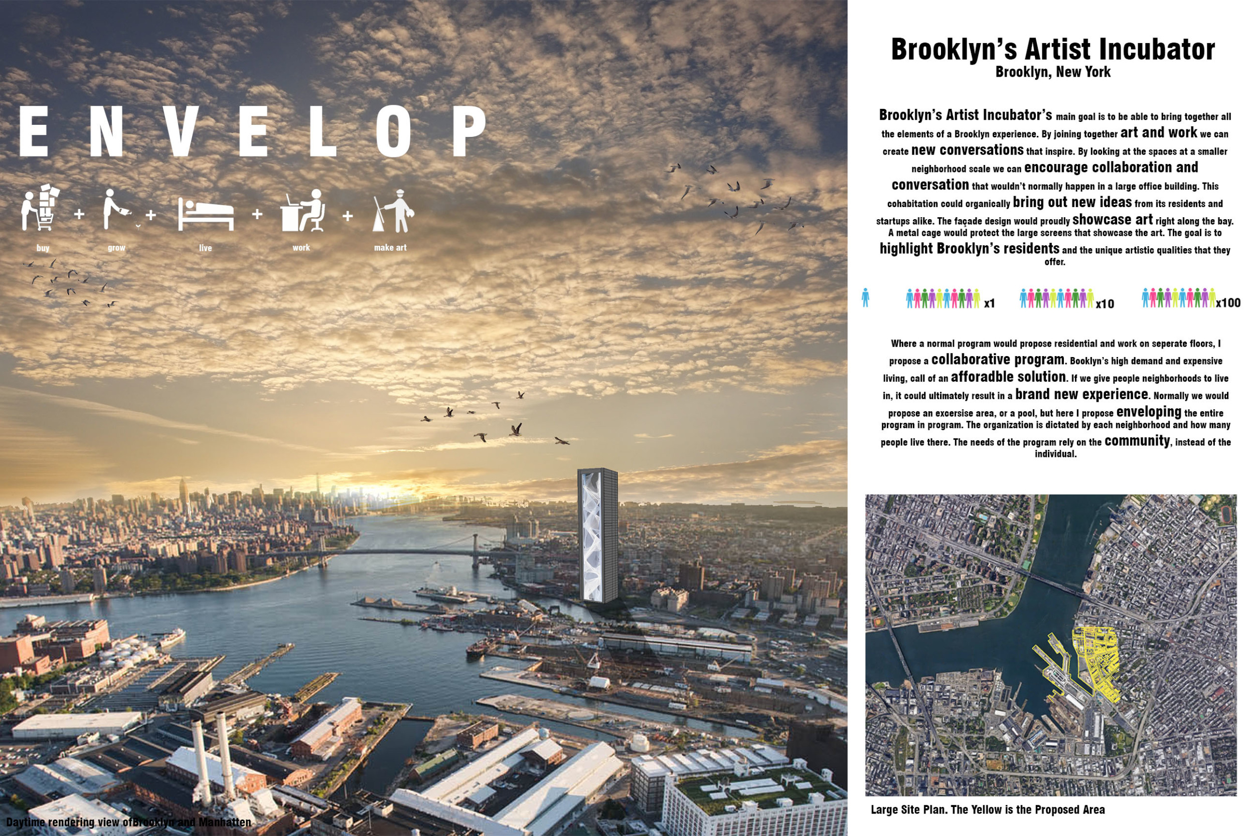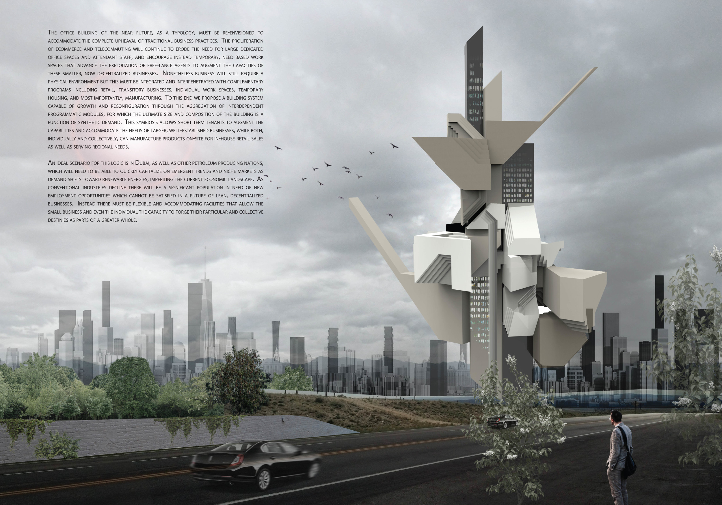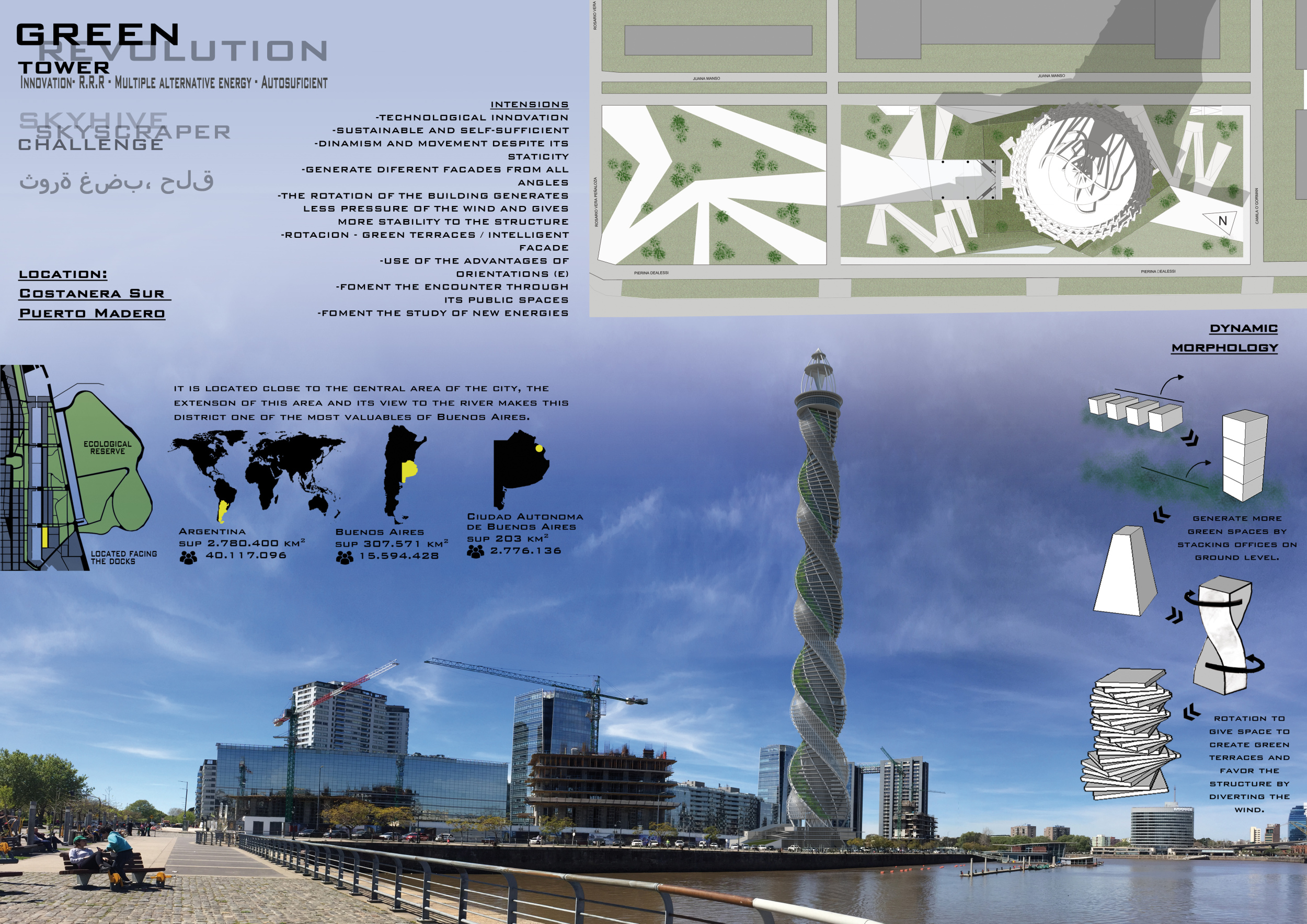 The SKYHIVE is an open architecture ideas competition, with few design restrictions: participants are free to interpret the brief as they choose. Proposals are not constrained by site, program or height. To place emphasis on the need for towers to recognize issues of density, the submitted design is requested to be limited to a site of 130x80m.