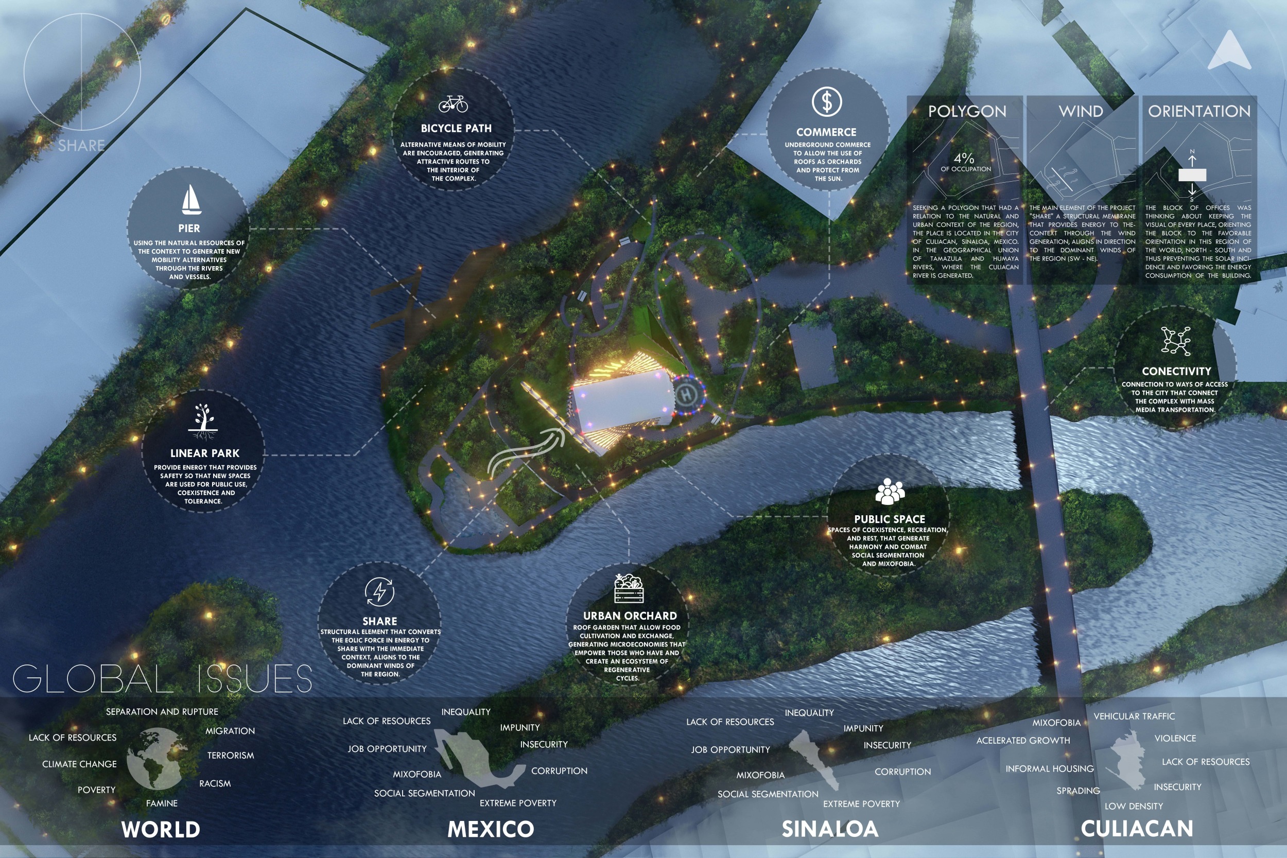 Competitions help spur our creativity and encourage lateral thinking. This is our second international vision competition that we have participated in and find that they give us a unique opportunity to be creative and free with our vision. Also we find ideas valuable in the sense that it help us as a community discuss and debate over various issues. Developing a brief for a competition is a complex task and the overall process can be very demanding both financially and creatively. If we were purely concerned with the business of architecture then very few of us would be in the profession.