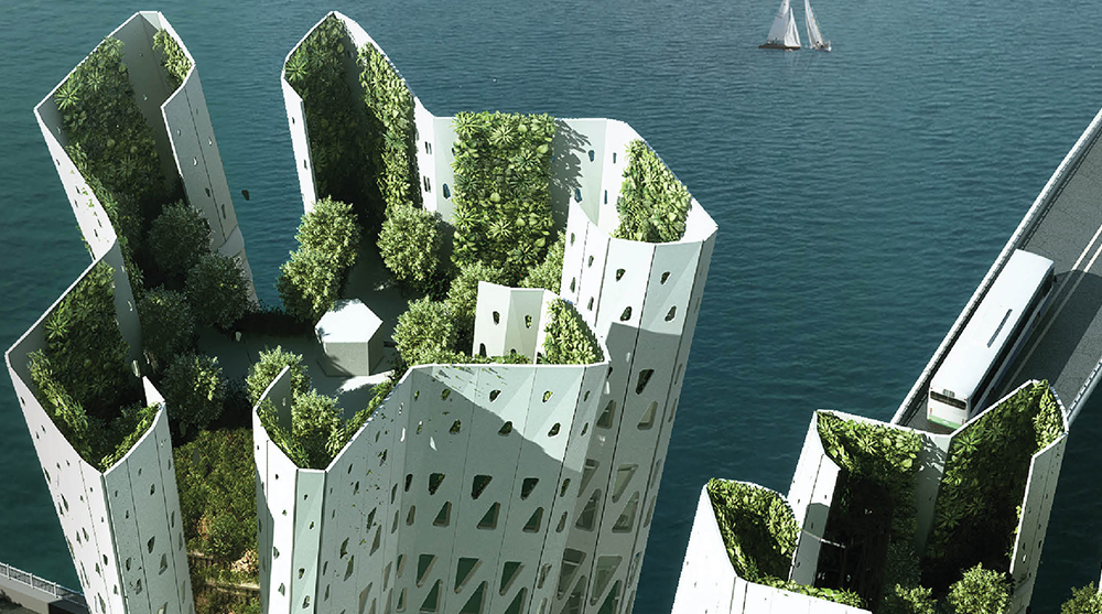 The winning project was submitted by Suraksha Acharya from India. The ‘AERO HIVE’ project reduced the monumentality of the high-rise by dividing the volume into two towers and featuring a porous and organic form.