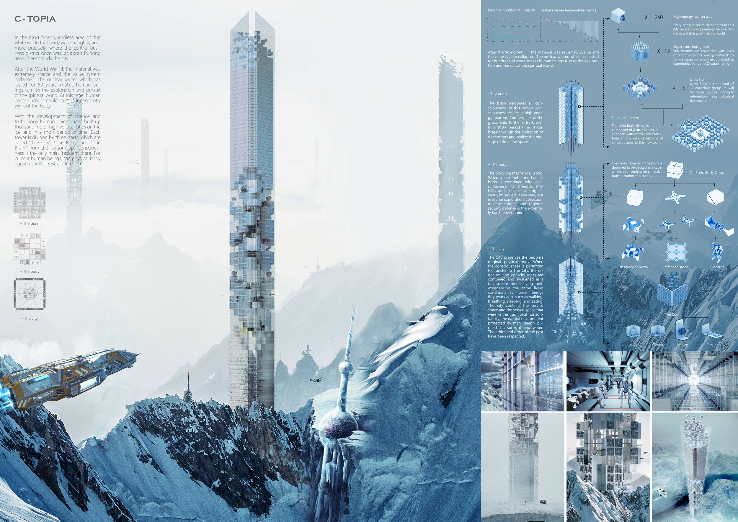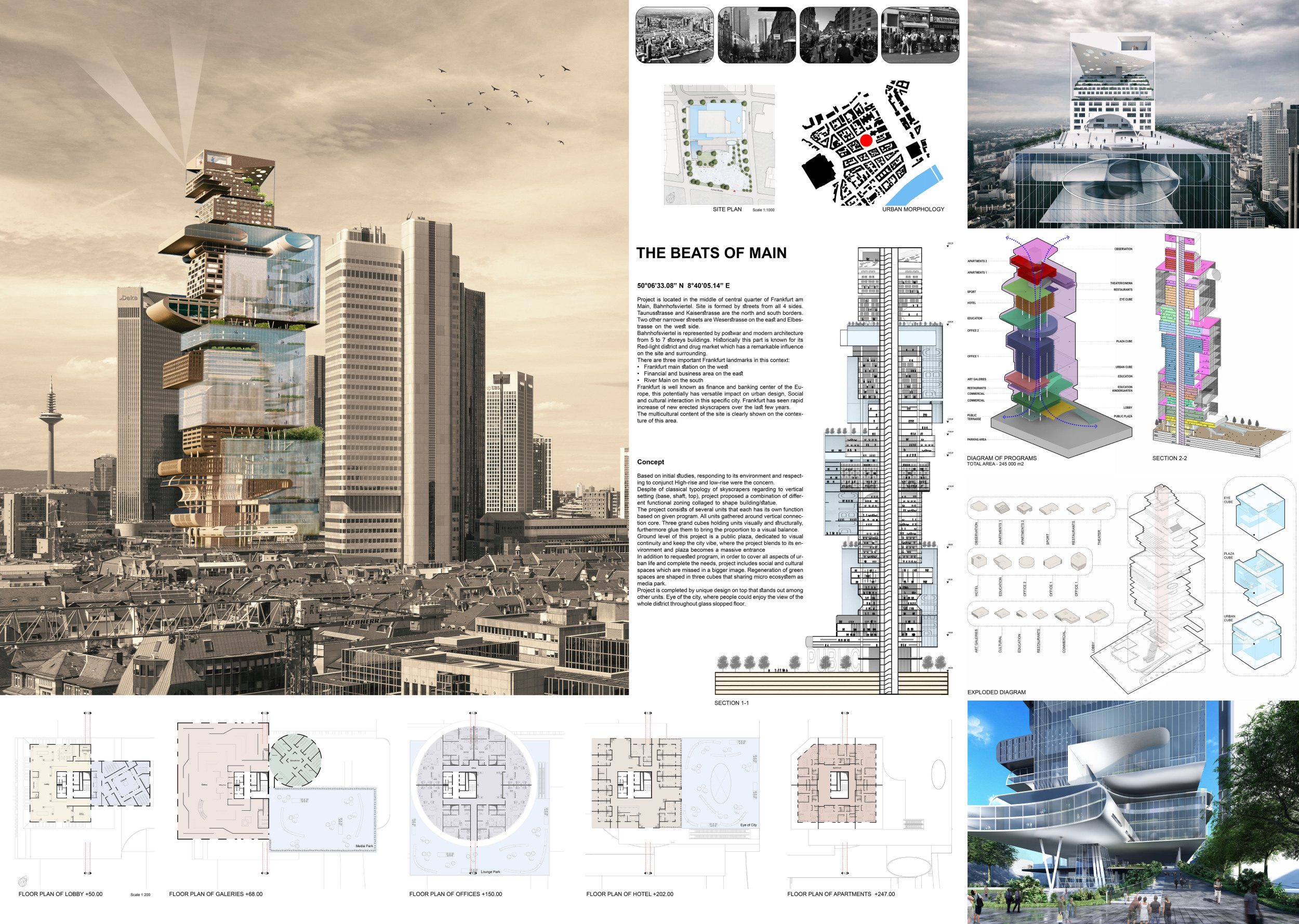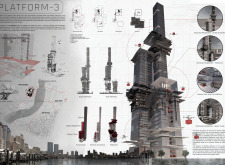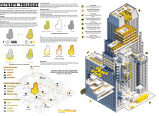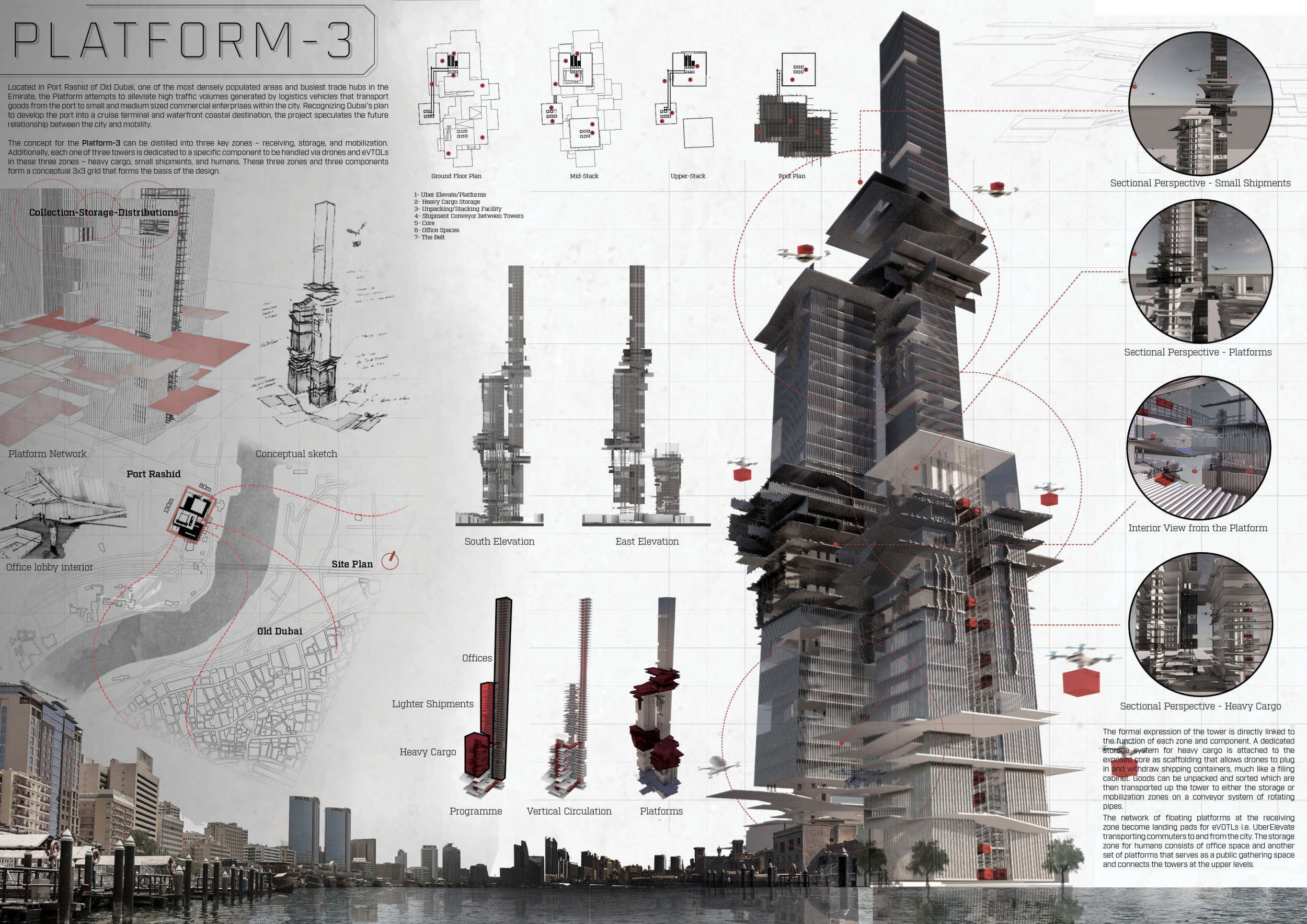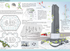State of the Art Plaza is described by one juror as “if not by OMA, then a love letter to them, their diagrammatic clarity, and purity of form. Deserving for this alone and for the unlikely thought of making one nostalgic for a time two decades ago.” The project’s concept of three primary function types supported by a public plaza is clear and successfully examines the notion of vertical singularity. Read more The horizontal tower formation at the top as a public destination offers a variety of uses and alternative purpose to the city. The illustrations are simple yet concise and strong.