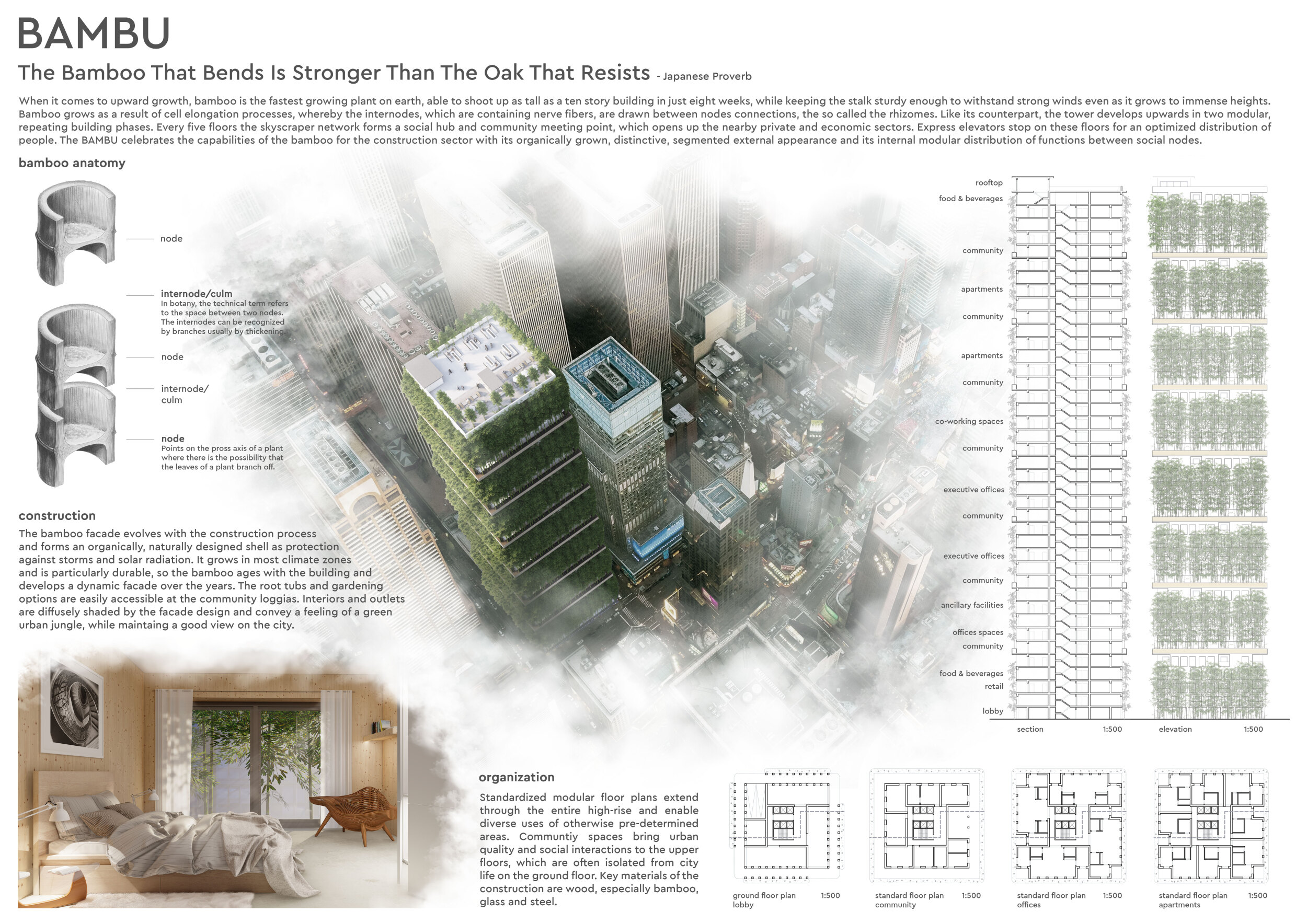 The Blossom Building draws our attention to an uneasy challenge between the growth of cities and the fragility of the natural environment: the dialectics between preservation of nature and land exploitation. According to the jury, “It’s a bold and ambitious concept, proposed with clarity and vision; the closest among submissions to attempting and satisfactorily completing a synthesis of climate change agenda and the resulting architectural form. Read more ” The proposal targeted an important environmental issue with an innovative and sensitive approach, creating an alternative solution for the deforestation of the Amazon. The project’s graphic representation translates a clear concept and strategy while maintaining the design integrity of the building.